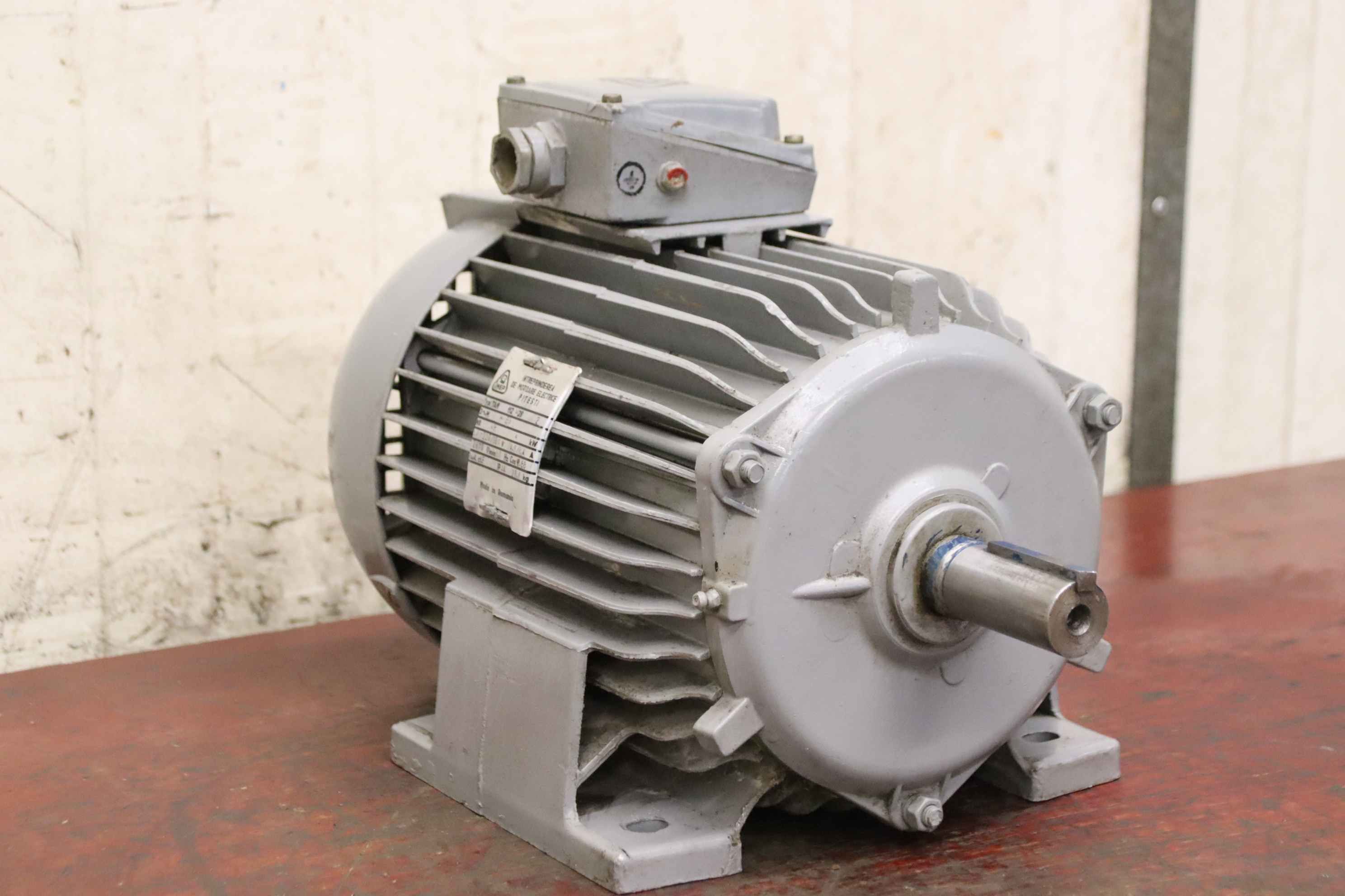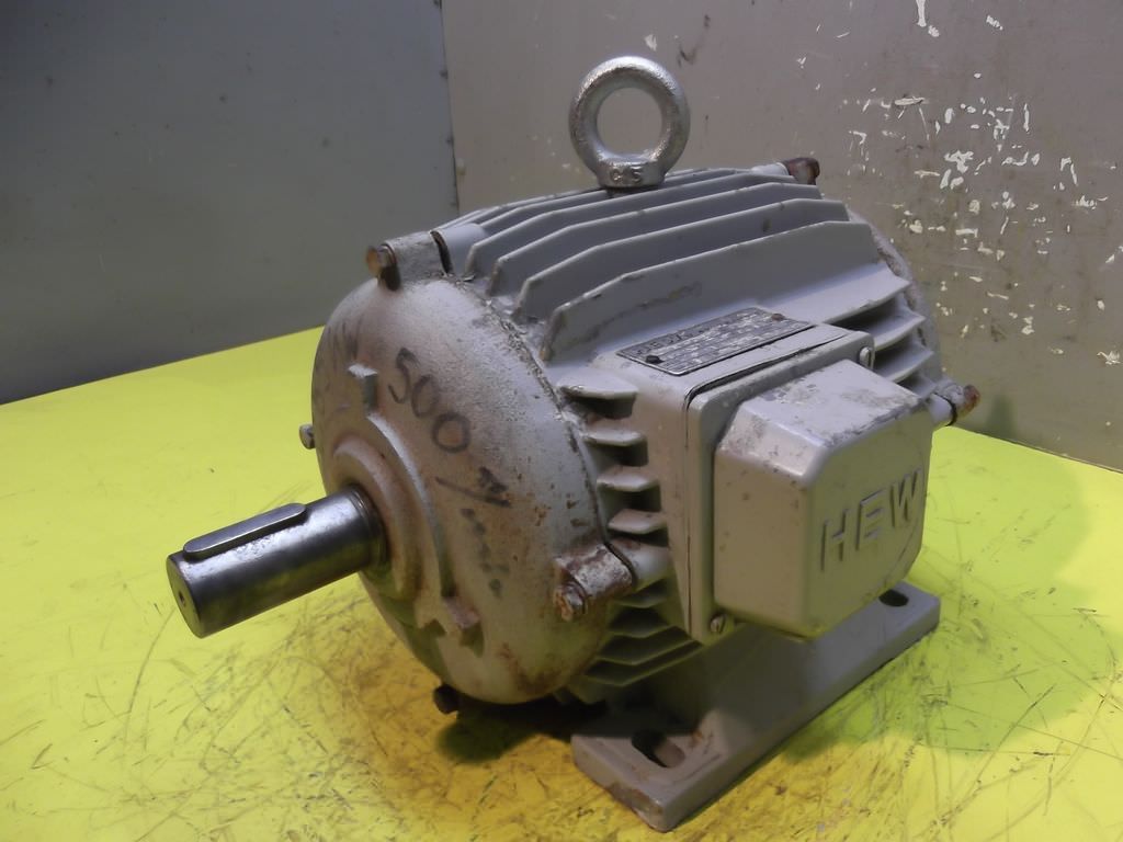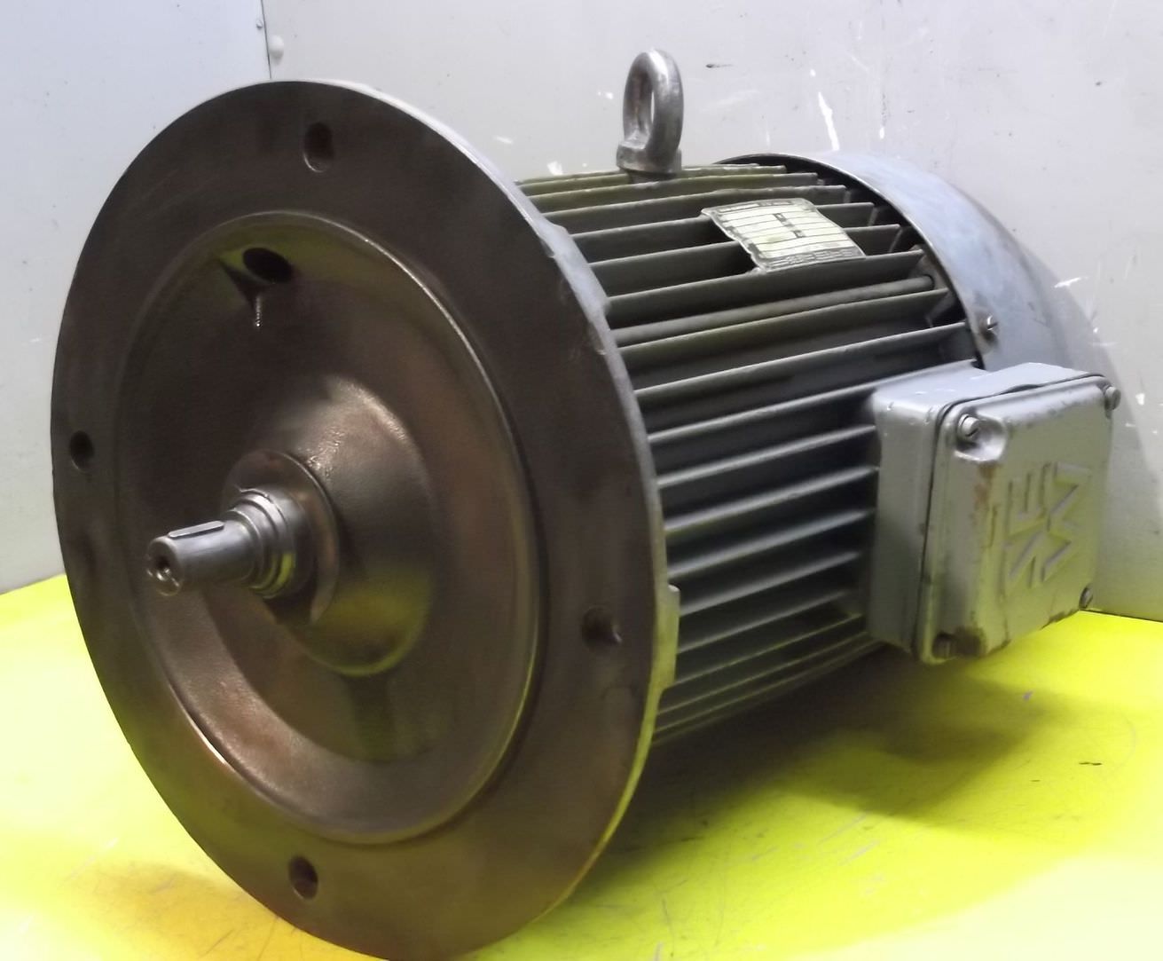 Electric motor, three-phase motor-Power: 2.1/7 kW-Speed: 975/1450 rpm-Shaft: Ø 38 mm-Construction: B5-Protection class: IP 54-Number: 2x available-Price: per piece-Dimensions: 495/297/H340 mm-Weight: 53 kg