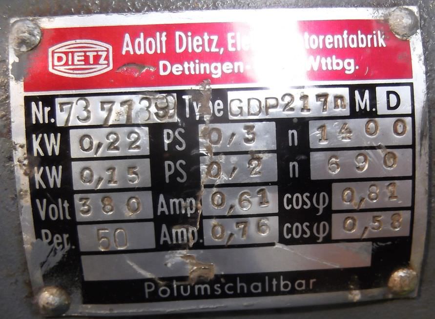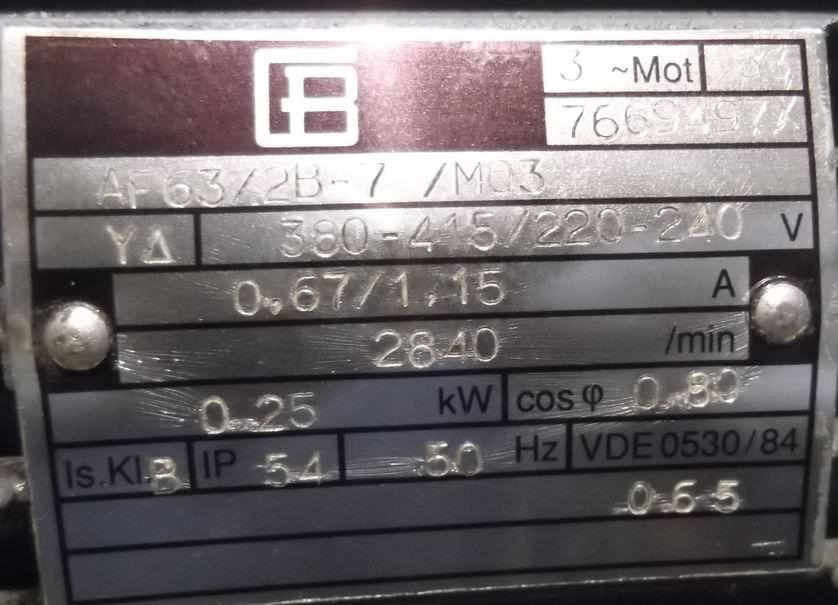 Electric motor, three-phase motor-Power: 0.15/0.22 kW-Speed: 690/1400 rpm-Shaft: Ø 18 mm-Wave length: 50 mm-Construction: B3-Protection class: --Dimensions: 295/225/H180 mm-Weight: 17 kg