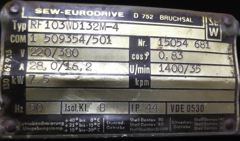 Gear motor, electric motor, three-phase motor, electric gear motor-Speed: 161 rpm-Power: 1.5 kW-Construction: B3 angle-Diameter shaft: 35 mm-Protection class: IP 55-Number: 3x engines available-Price: per piece-Dimensions: 520/270/H300 mm-Weight: 45 kg