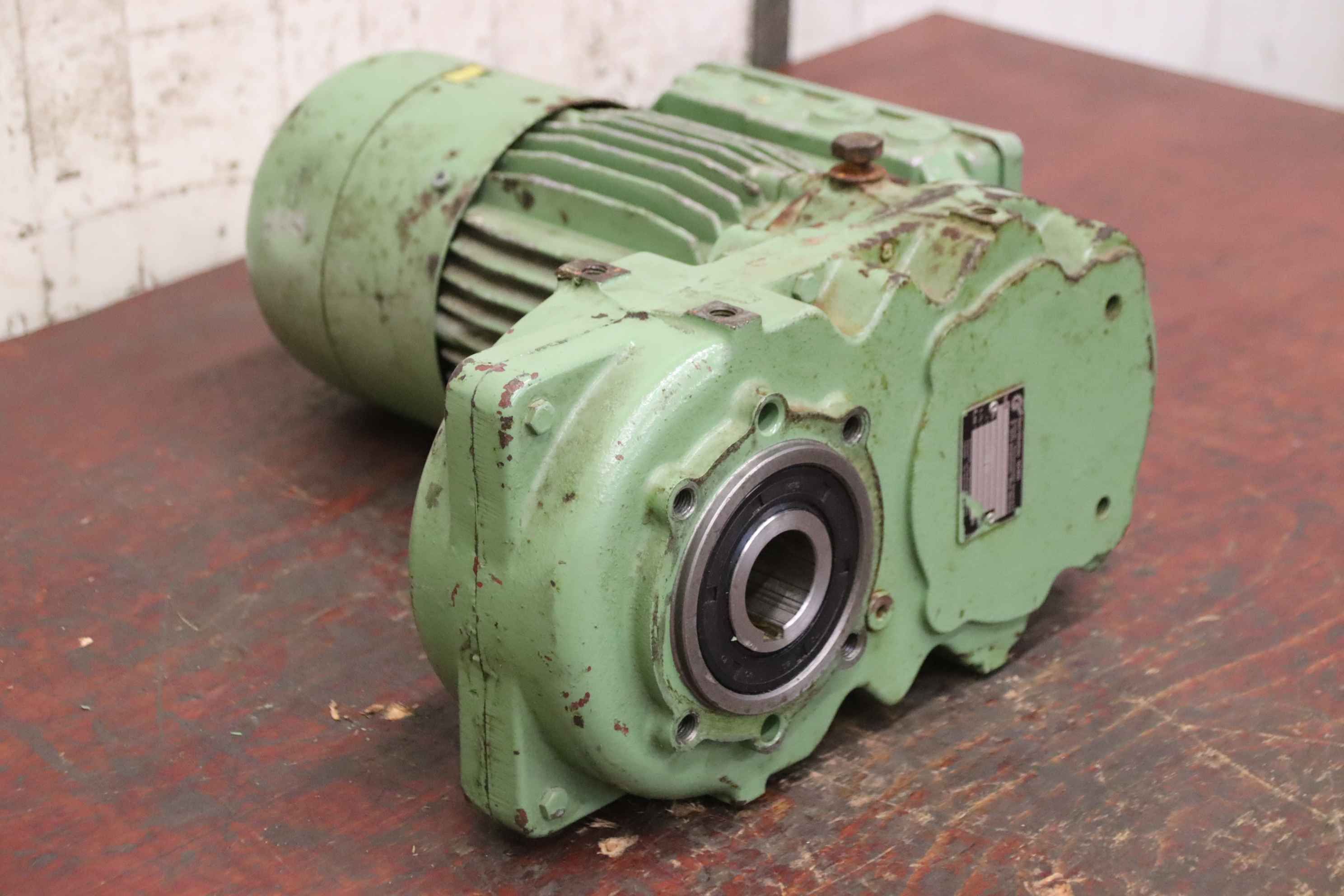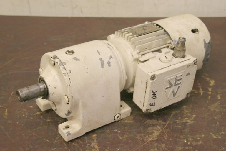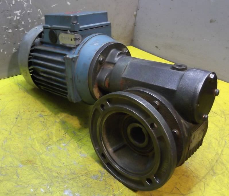 Gear motor, electric motor, three-phase motor, electric gear motor-Gearbox manufacturer Bonfiglioli type: MVF44/F-Manufacturer engine AEG type: AD63NZ4-Speeds: rpm-Power: 0.18 kW-Construction: B5 angle-Diameter shaft: Ø 22 mm-Protection class: IP 44-Number: 4x engines available-Price: per piece-Dimensions:-Weight: 7.2 kg/piece