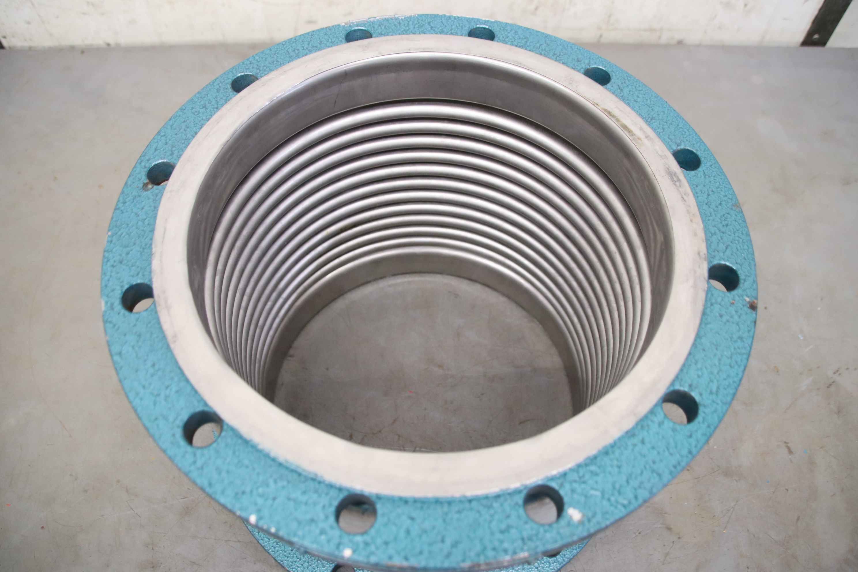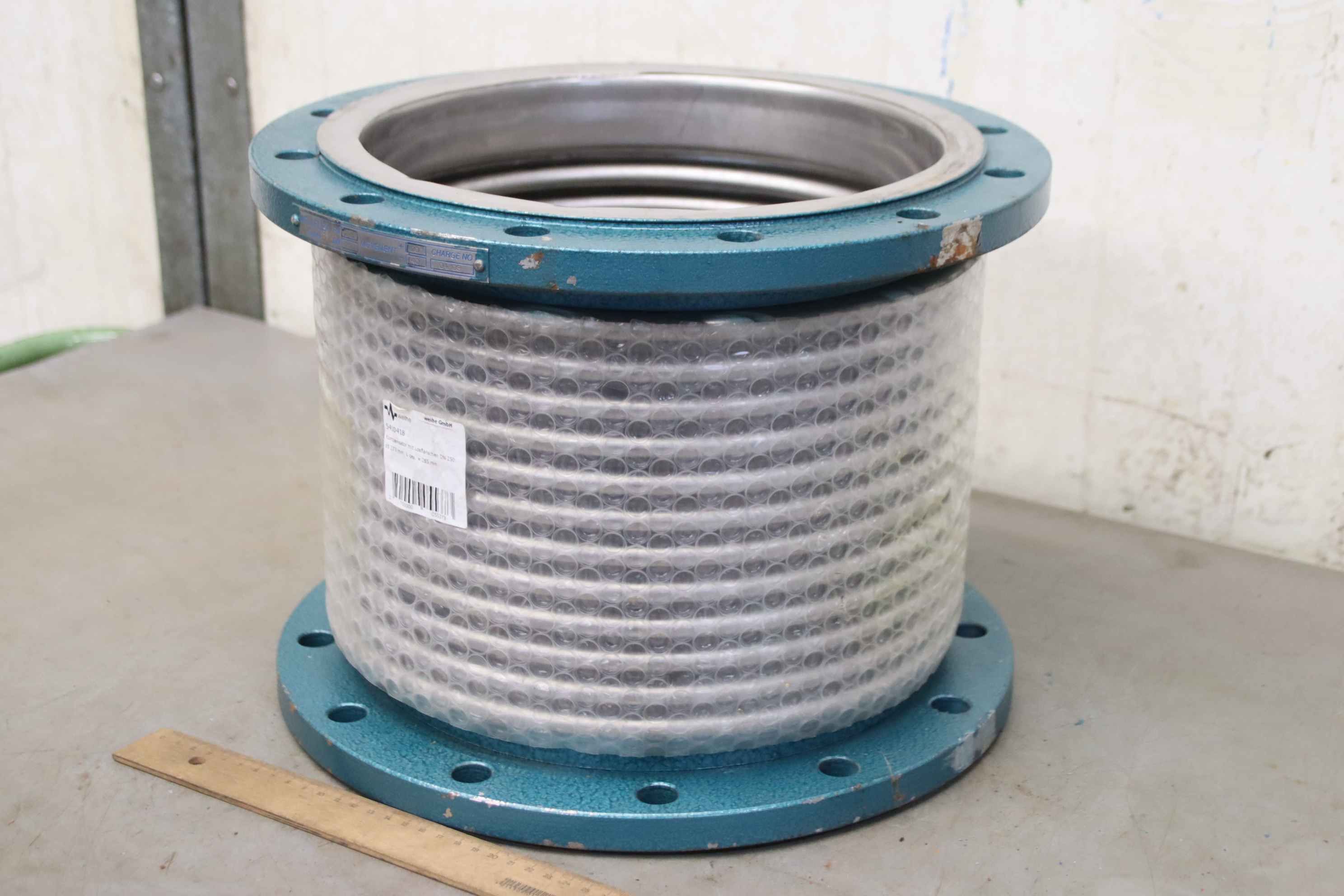 Vibration damper, compensator, damper, expansion compensator, expansion piece, axial compensators, stainless steel compensator, steel expansion compensator, steel expansion joint -Manufacturer: Witzenmann, Hydra axial compensator unused -Type: ABG 01.0450.196.0 -Nominal diameter: DN 450 / Length 406 -Material: Bellows stainless steel -Bolt circle: Ø 575 / 22 mm -Number: 2x dampers available -Price: per piece -Dimensions: Ø 600 x 415 mm -Weight: 40 kg/piece