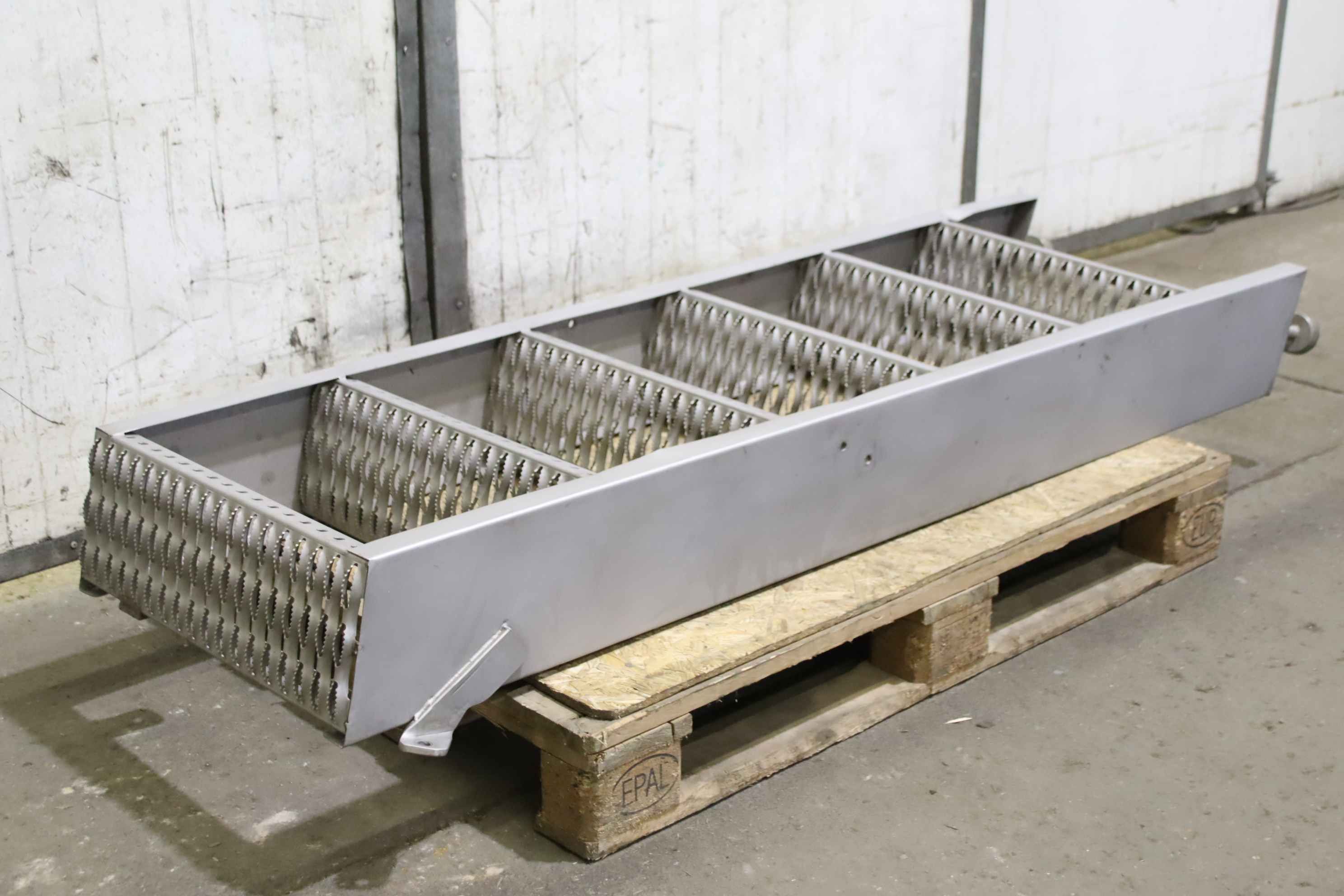 Gratings, gratings, light grilles, insert grilles, insert grilles, stair steps, safety steps, grating steps, steps-Grid step: 1200 x 270 mm-Total height: 70 mm-Struts: wall thickness 2 mm-Bridge height: 41/10 mm-Gratings: Hot-dip galvanized-Quantity: 2x grids available-Price per piece-Weight: 9,3 kg/piece