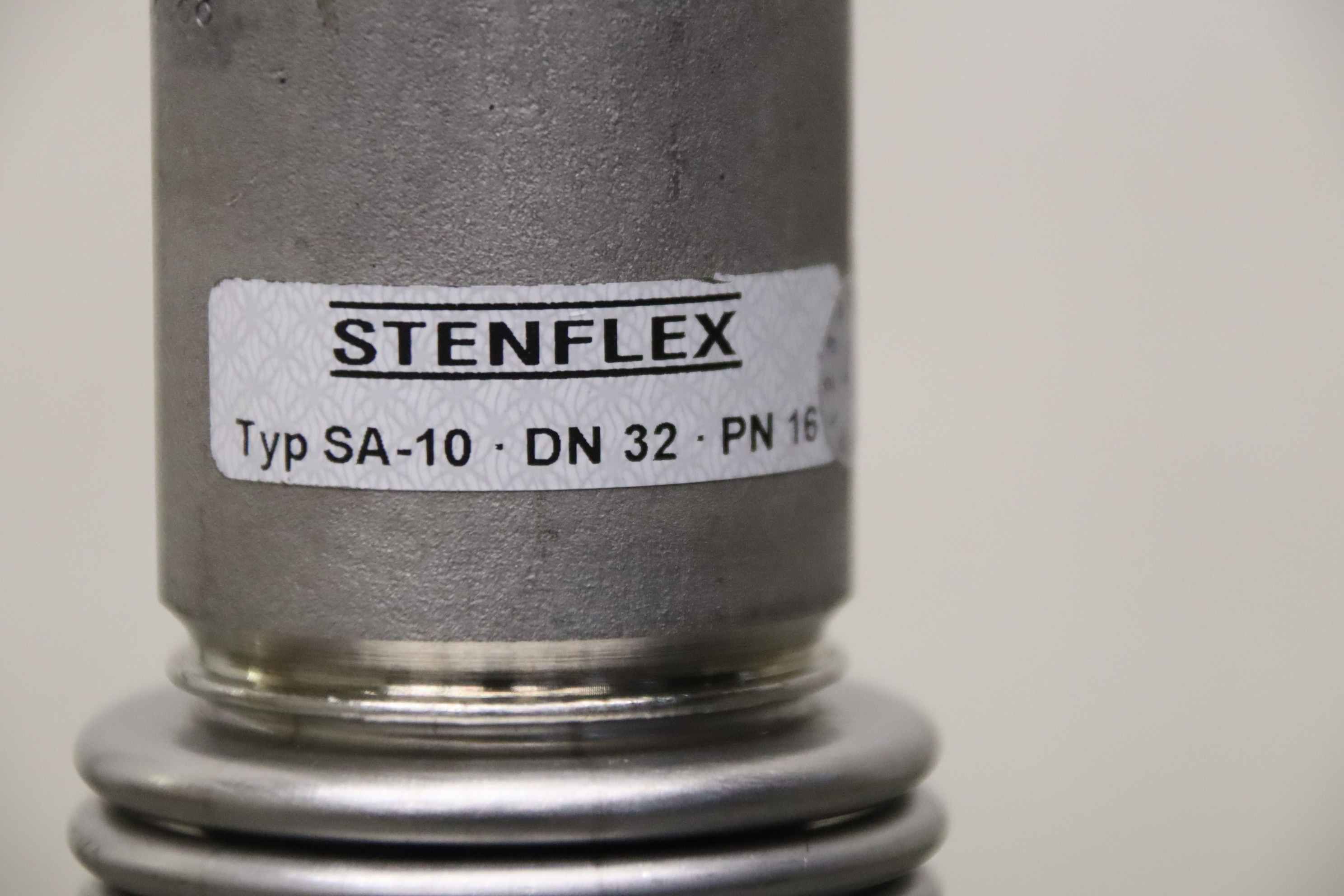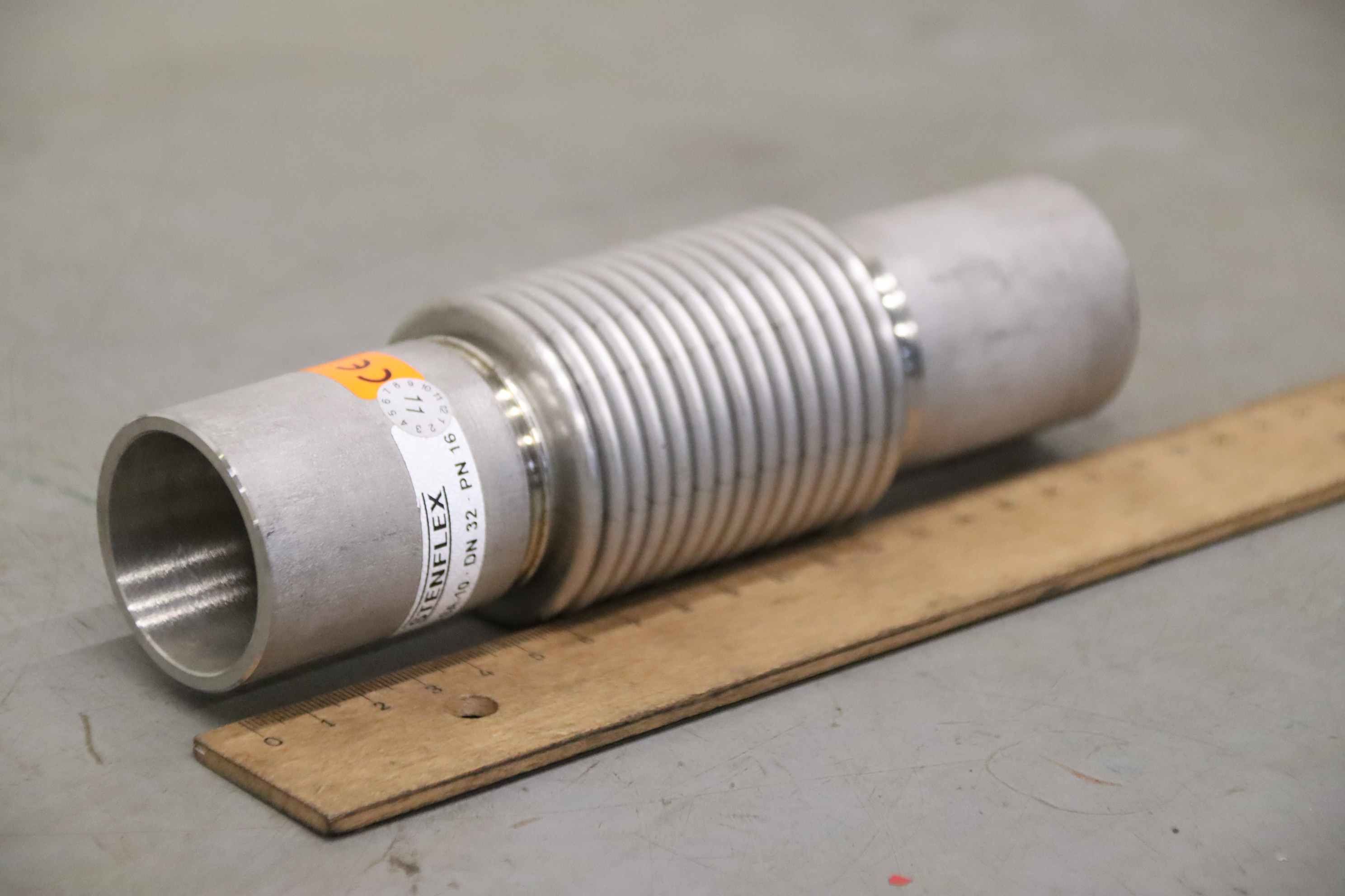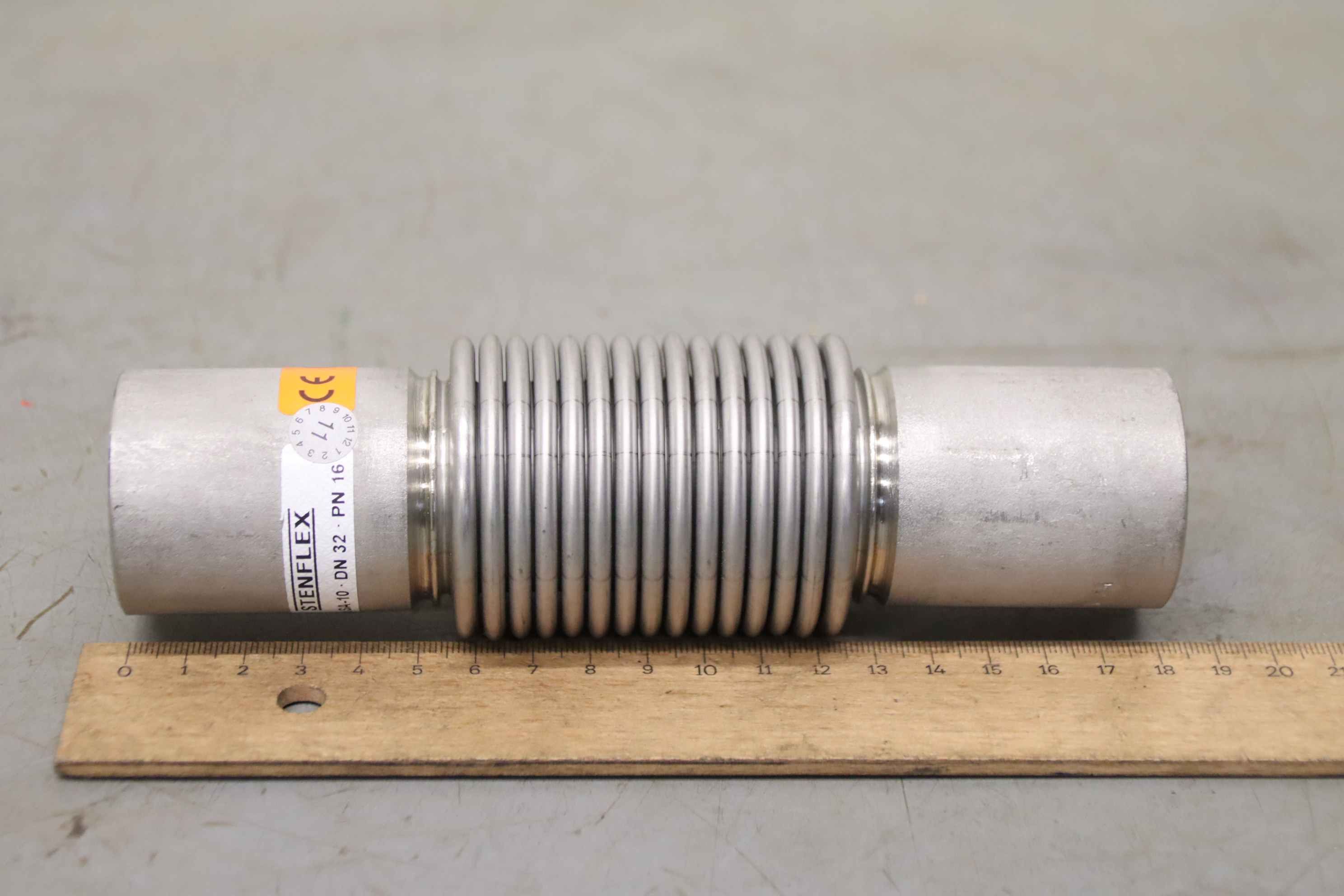 Vibration damper, compensator, damper, expansion compensator, expansion piece -Manufacturer: Sternflex, steel expansion compensator type SA-10 unused -Size: DN 32 PN 16 -Machines: for noise dampening and absorption of small vibrations -Material: stainless steel 1.4541 -Number: 13x dampers available -Price: per piece -Dimensions: Ø 53 x186 mm -Weight: 0.5 kg/piece