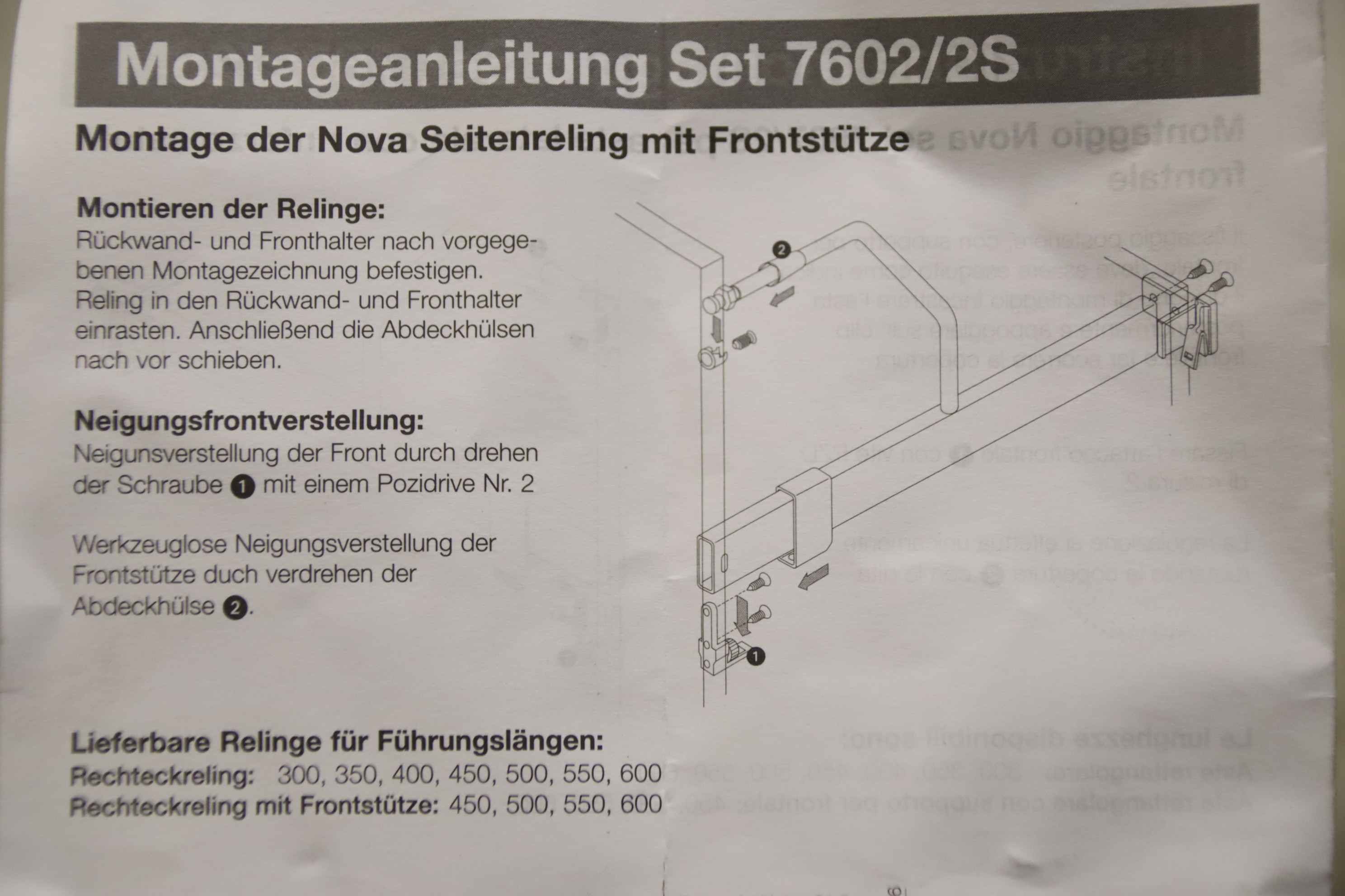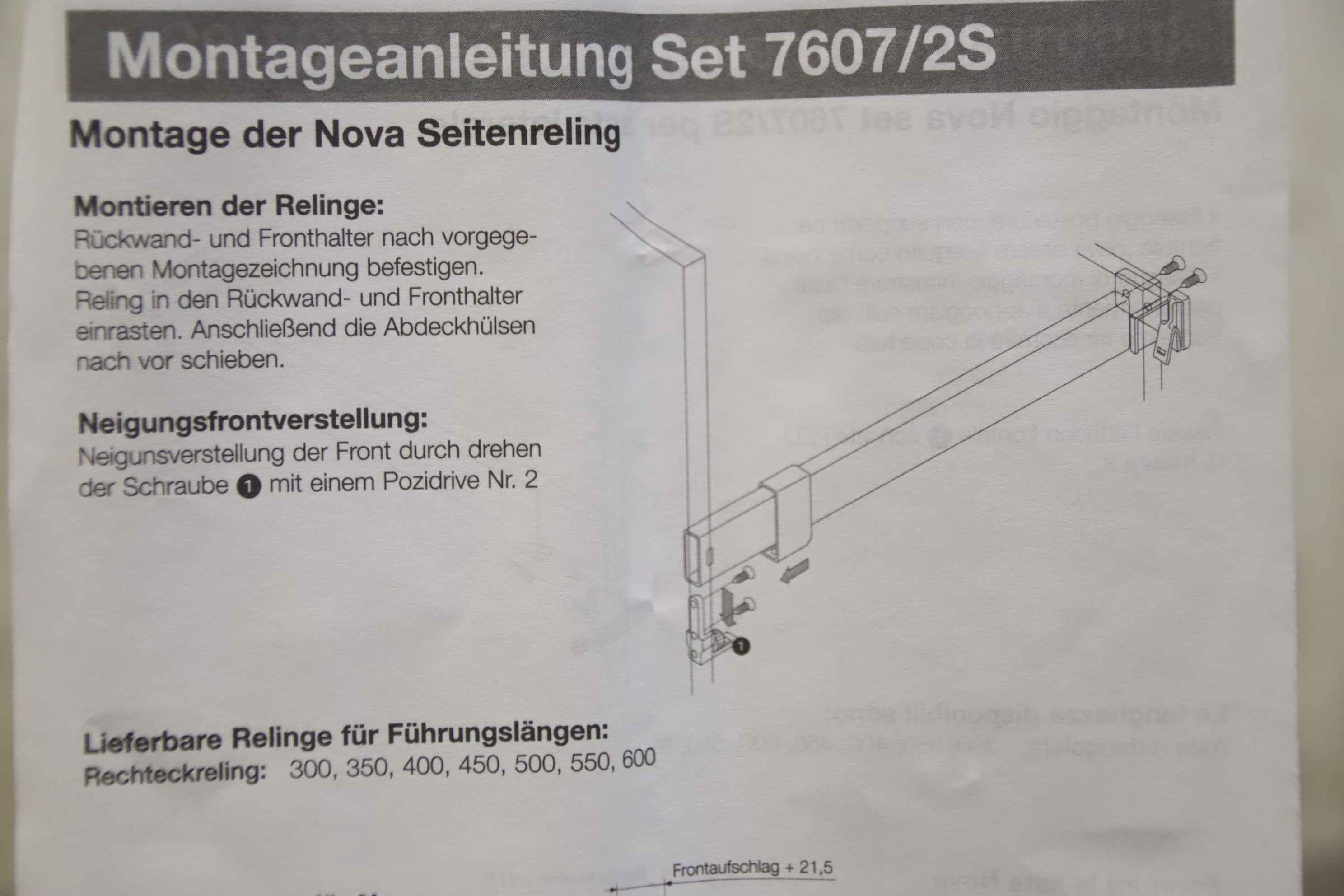 drawer runner, telescopic runner, drawer pull-out, drawer runners, drawer pull-out, Telescopic rails, pull-out rails, heavy-duty pull-out, side rails, front pull-out, drawer side rails-Manufacturer: Grass, Nova side railing set in original packaging-Type: 7607/450/2S-RER-SET/9006/1-Item no.: 45861-01-Length 450 mm-Quantity: 4x set available-Price: per set / minimum order 2 sets-Transport dimensions: 450/100/H40 mm-Weight: 0.4kg/set