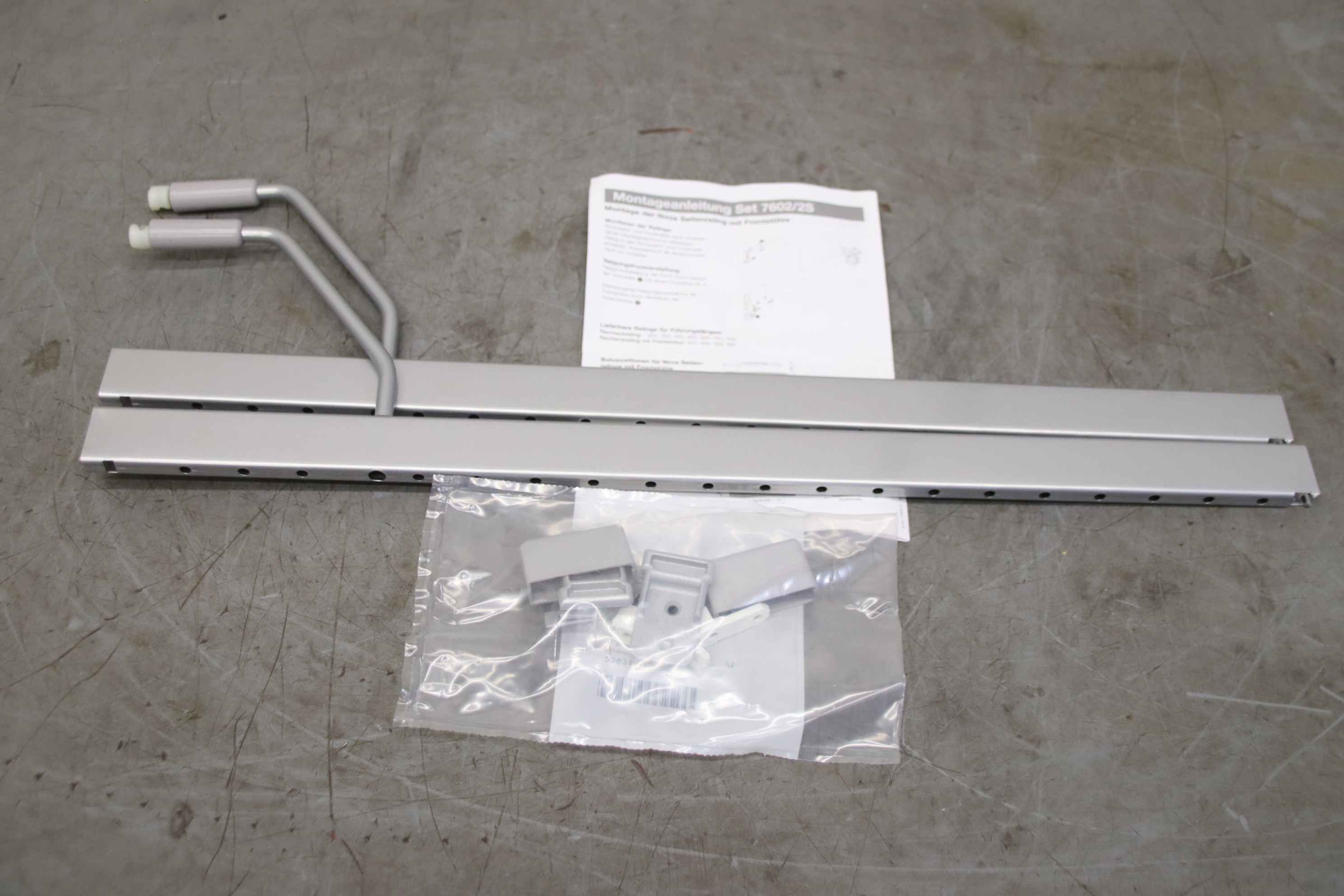 Drawer slide, telescopic slide, drawer extension, drawer rails, drawer extension, Telescopic slides, extension slides, heavy-duty extension slides, side rails, front extension slides, drawer side rails, 2-sided rectangular rails, front support -Manufacturer: Grass, NP 2-S-RER Front Support Set Original Packaging -Type: 7607/550/2S RF SET/9006/1 -Item No.: F102048036101 -Length 550 mm -Quantity: 5 sets available -Price: per set -Dimensions: 550/150/H40 mm -Weight: 0.5 kg/set