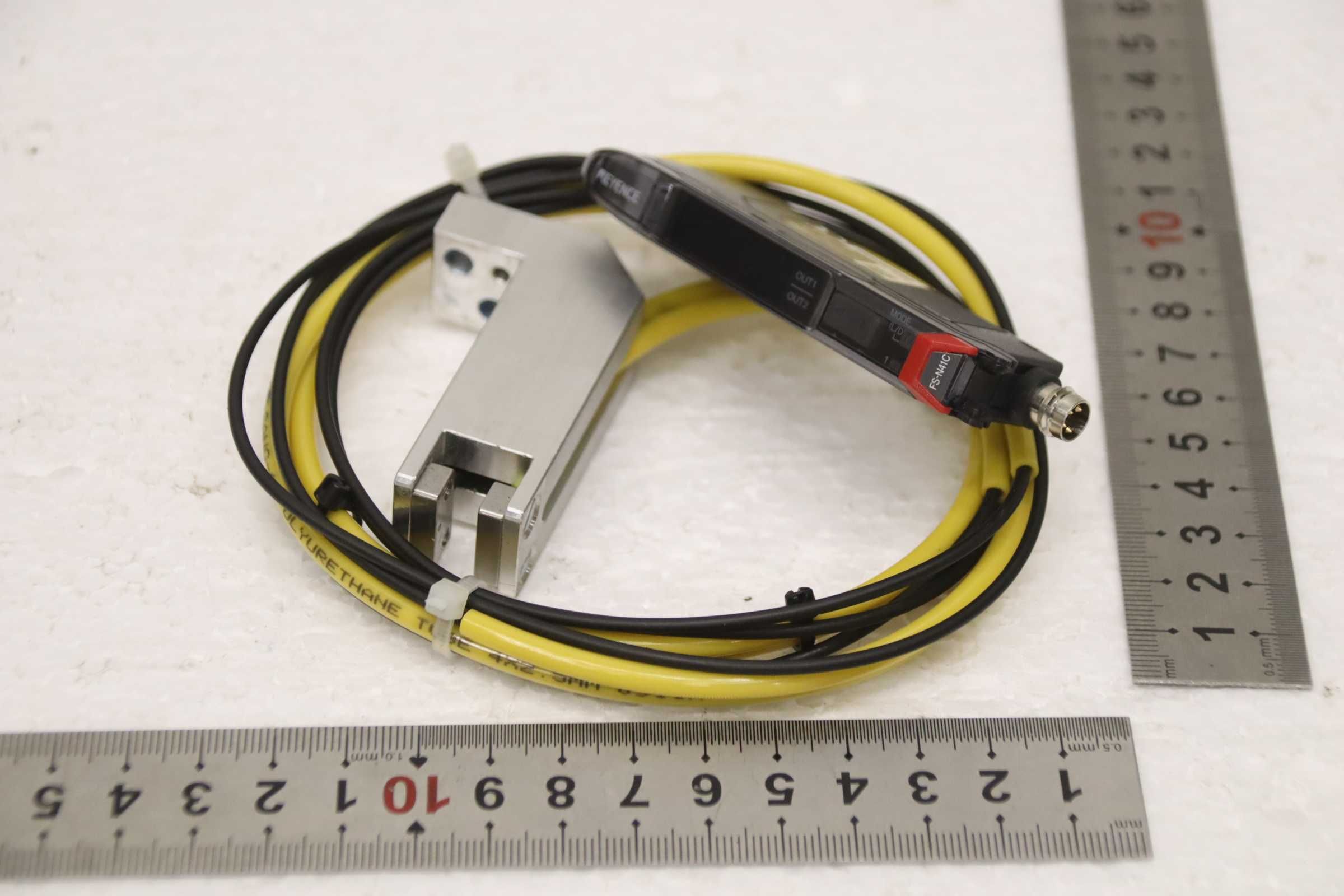 Fiber optic measuring amplifier, fiber optic sensor, fiber optic amplifier -Manufacturer: Keyence, fiber optic amplifier with accessories -Type: FS-N41C -Voltage: 10...30 V DC -Transport dimensions: 120/120/H30 mm -Weight: 0.1 kg
