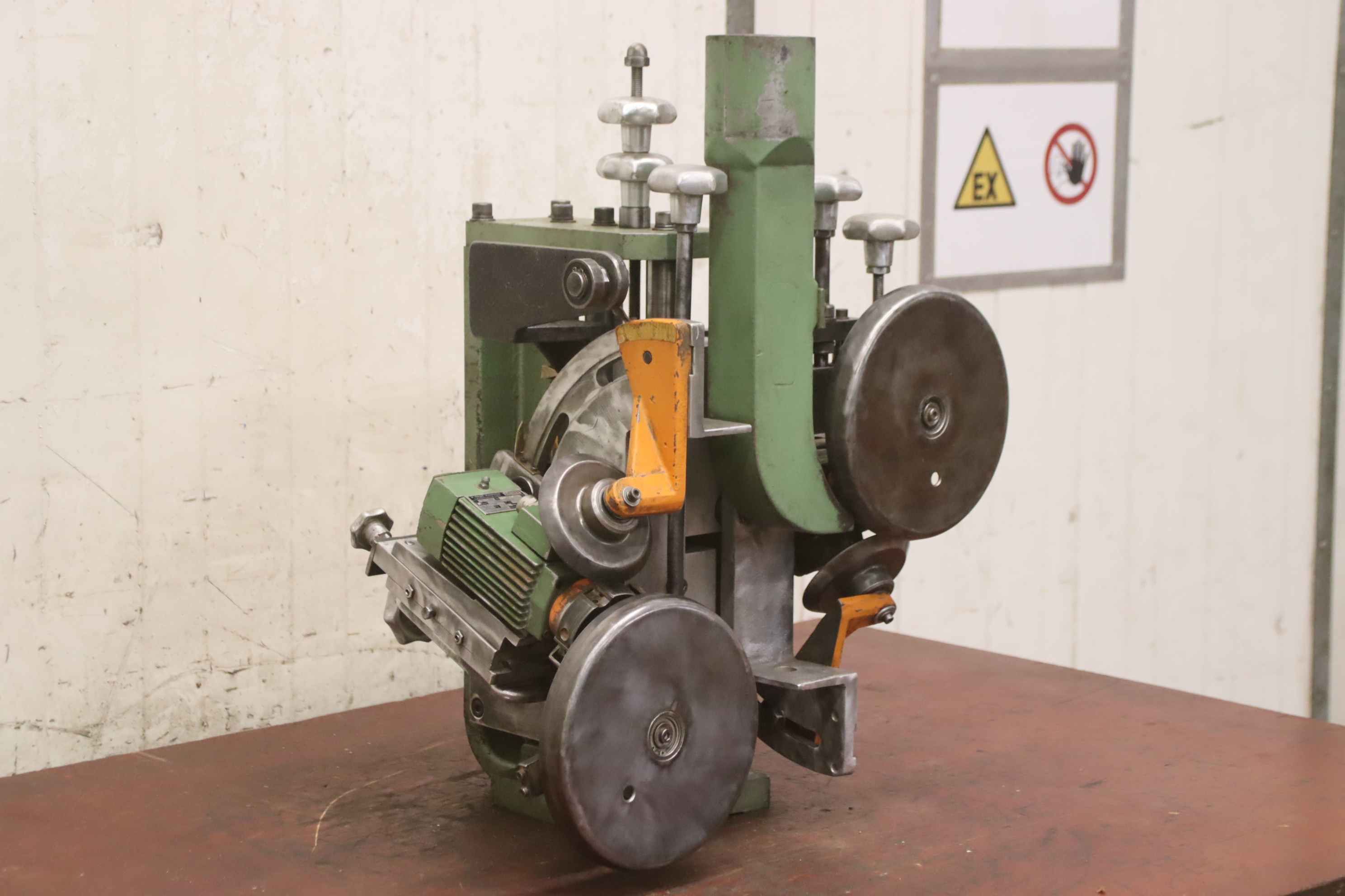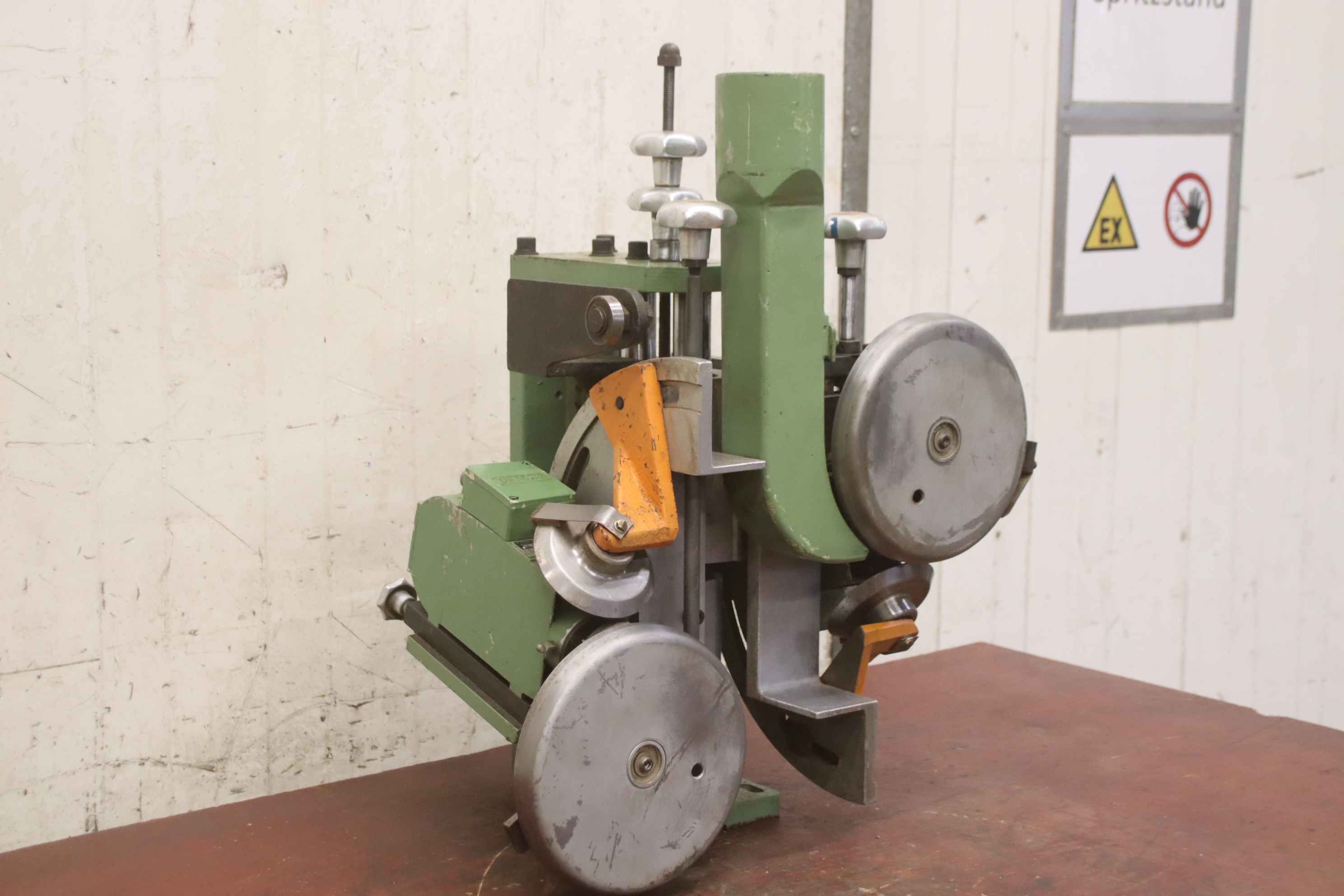 Kuper FW 1150 шпонный склеиватель Рабочая ширина 1150 мм Толщина шпона 0,4–3 мм Скорость подачи 10-30 м/мин Зигзагообразная строчка Год производства: 1997 Марка CE Вес 520 кг Чистая цена