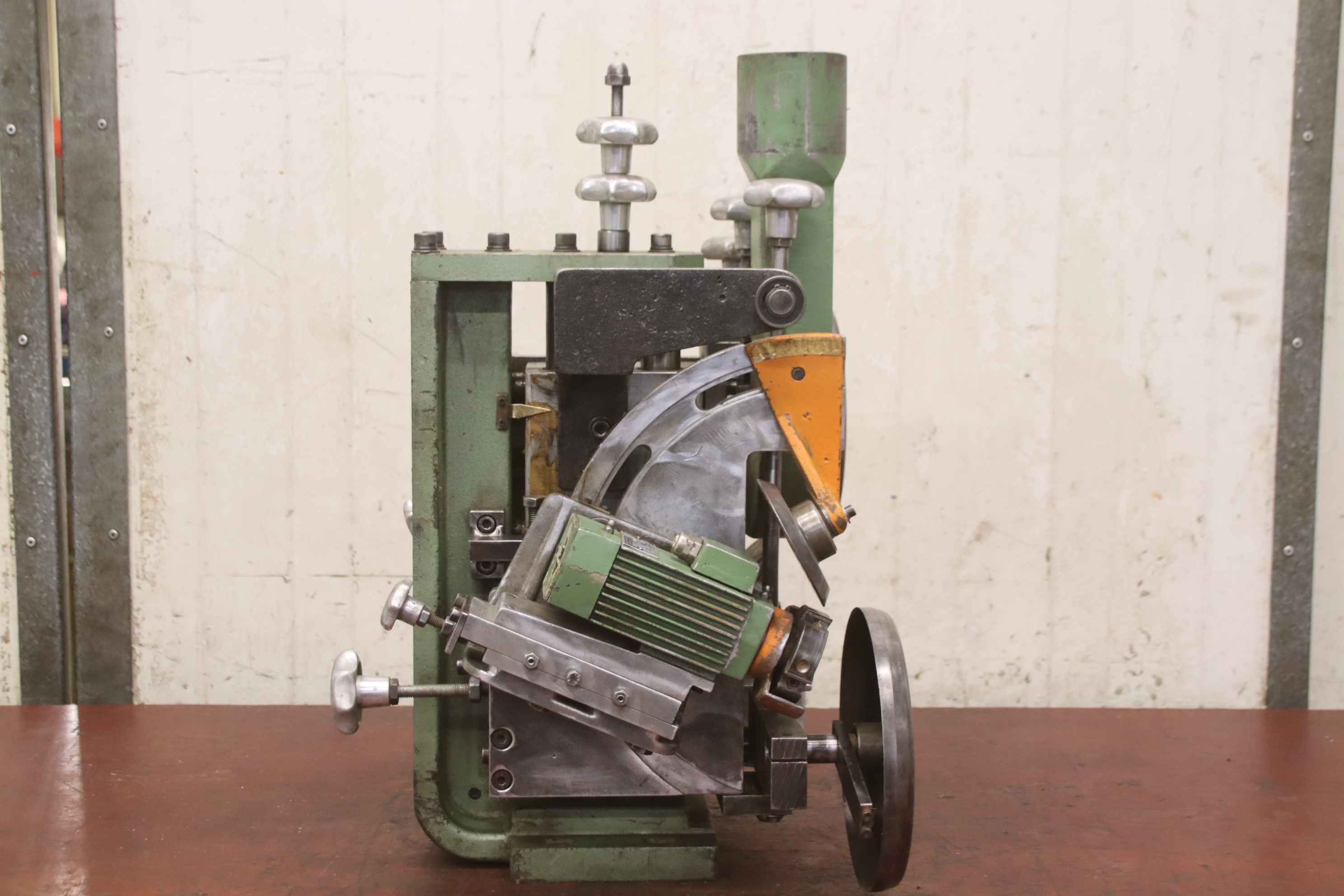 Aggregate kit, format processing unit, chipping unit, milling unit, form milling unit, jointing milling unit, trimming unit, double-end tenoner, edge processing machine, scoring motor, chipping motor, milling motor for edge processing machine-Manufacturer: Homag, milling unit for edge processing machines with Perske motor-Milling units: pivoting-Engine: Perske DKNS 502/2-Power: 0.15 kW-Frequency: 200 Hz-Speed: 10400 rpm-Dimensions: 480/360/H595 mm-Weight: 60 kg