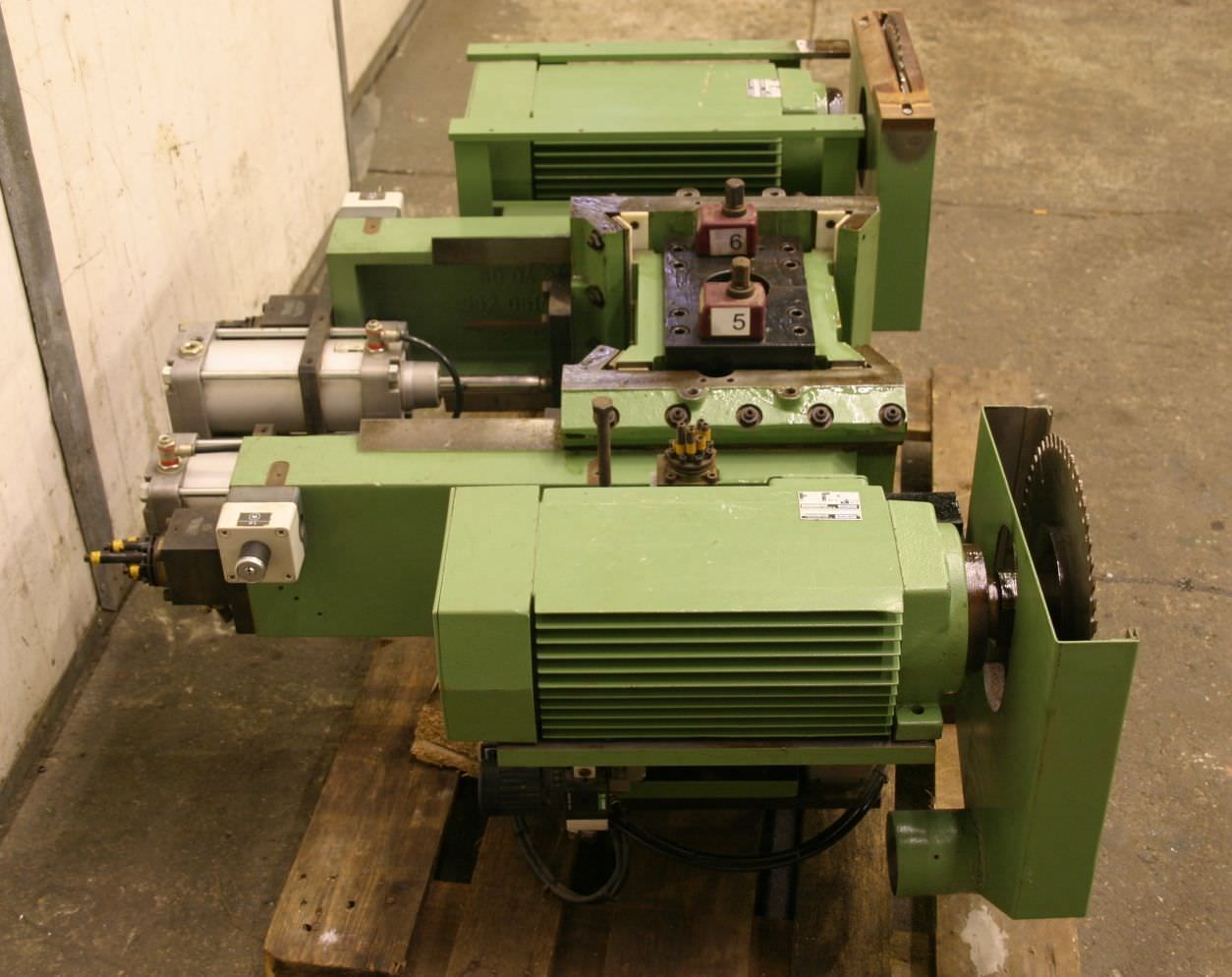 Pressure zone turret, softforming interchangeable profiles for softforming machines, double-end tenoners, edging machines, scoring motor, chipper motor, milling motor for edging machines -HOMAG softforming interchangeable profiles for softforming profiles can be quickly converted to straight edges -with heavy leadership -laterally movable -with counter -HOMAG milling unit for joint milling -with heavy dovetail guide -1x engines Perske -Motor type: -Power: 3.0/4.4 kW -Voltage: 220/380/380 volts -Frequency: 50/100 Hz -Speed: 2860/5860 rpm -Other engines with other services in stock for an additional charge -Dimensions: 1800/1400/H1300 mm -Weight: 712 kg