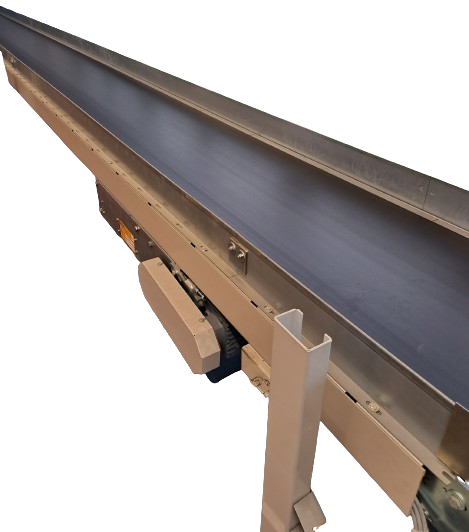 Lippert rising falling Incline belt conveyor GF 640+7300+850-750-600RA2264Technical data:Conveyor length (NL): 8790 mm ( 850 mm forerun + 7300 mm ascending belt + 640 mm top bend )frame width (NB): 750 mm, 800 mm with motorbelt width (GuB): 600 mmOverall height (BH): 105 mm, 430 mm with motor Angle: 15°Supporting feet: optionally availableConveying speed (v m/s): contact usDrive: SEW gear motorElectrical data: 50Hz V380-500, kW 0,75 S1Drive drum: Ø = 81 mmBelt return roller: Ø = 81 mmOptionally available:SupportsSide guide on one side and on both sidesFrequency converter for stepless speed changeAdjust length (longer/shorter)Prices net plus VAT ex central warehouse Dr. Sonntag GmbH & Co KG, 97076 Würzburg, GermanyFeatures: Construction year: 1992condition: good (used)Conveying length in mm: 8790 ( 850 + 7300 + 640 )Nominal / outside width in mm: 750Belt width in mm: 600Driven: YESEng ...
