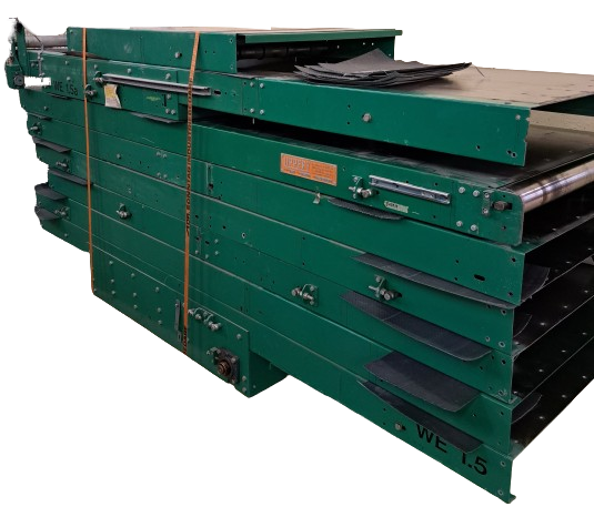 Lippert belt conveyor GF 12730-750-600RA2259Technical data:Conveyor length (NL): 12730 mmFrame width (NB): approx. 750 mmBelt width (GuB): 600 mmOverall height (BH): 105 mmSupport feet optionally availableConveyor speed (v m/s): please contact usDrive: SEW geared motor, R37 DRE80M4/TH/ZElectrical data: 50Hz V380-500, kW 0.75 / S1Return pulley (UR): Ø = 81 mmDrive drum (AT): Ø = 81 mmOptionally available:SupportsSide guidesFrequency converter for stepless speed controlPrices net plus VAT ex central warehouse Dr. Sonntag GmbH & Co KG, 97076 WürzburgFeatures: condition: good (used)Conveying length in mm: 12730Nominal / outside width in mm: 750Belt width in mm: 600Driven: YESEngine type: SEW EurodriveKW: 0,75/S1Conveyor speed m / s: bitte Kontaktierenscope of delivery: without supports and side guidesFür eine individuelle, fachmännische Beratung setzten Sie sich einfach mit uns in Verbi ...