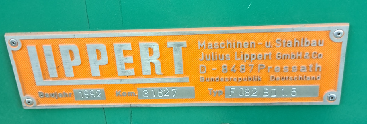 Lippert belt conveyor GF 22300-900-700RA2266Technical data:Conveyor length (NL): 22300 mmframe width (NB): 900 mmbelt width (GuB): 700 mmOverall height (BH): 120 mm, 430 mm with motor Supporting feet: optionally availableConveying speed (v m/s): Contact us and we will try to meet your preferred conveying speed.Drive: SEW gear motorElectrical data: 50Hz V380-500, kW 0,575 S1Drive drum: Ø = 81 mmBelt return roller: Ø = 81 mmOptionally available:SupportsSide guide on one side and on both sidesFrequency converter for stepless speed changeAdjust length (longer/shorter)Prices net plus VAT ex central warehouse Dr. Sonntag GmbH & Co KG, 97076 Würzburg, GermanyFeatures: Construction year: 1992condition: good (used)Conveying length in mm: 22300Nominal / outside width in mm: 900Belt width in mm: 700Driven: YESEngine type: SEW Eurodrive Zentralantrieb mit SpannstationKW: 0,75/S1Conveyor speed m / ...