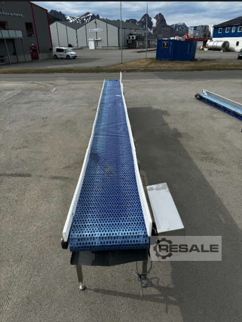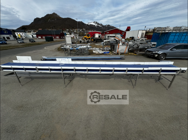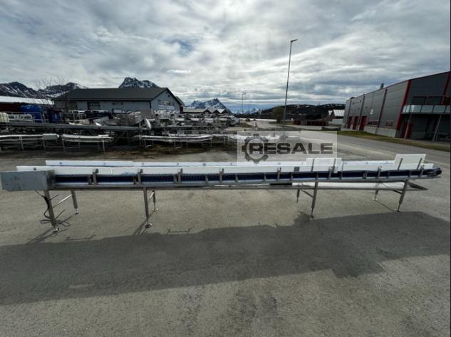 Transnorm conveyor belt GF 22000-900-800RA2186Technical data:Conveyor length (NL): 22000 mm frame width (NB): 900 mm, 1000 mm with motorbelt width (GuB): 800 mmOverall height (BH): 80 mm, 430 mm with motor Supporting feet: optionally availableConveying speed (v m/s): 0,5Drive: SEW gear motor, R27 DRE80M4/MM15/LNElectrical data: 50Hz V380-500, kW 1,1 S1Drive drum: Ø = 81 mmBelt return roller: Ø = 81 mmOptionally available:SupportsSide guide on one side and on both sidesFrequency converter for stepless speed changeAdjust length (longer/shorter)Prices net plus VAT ex central warehouse Dr. Sonntag GmbH & Co KG, 97076 Würzburg, GermanyFeatures: Construction year: 2014condition: good (used)Conveying length in mm: 22000Nominal / outside width in mm: 900Belt width in mm: 800Driven: YESEngine type: SEW Eurodrive Zentralantrieb mit SpannstationKW: 1,1/S1Conveyor speed m / s: 0,5scope of deliver ...