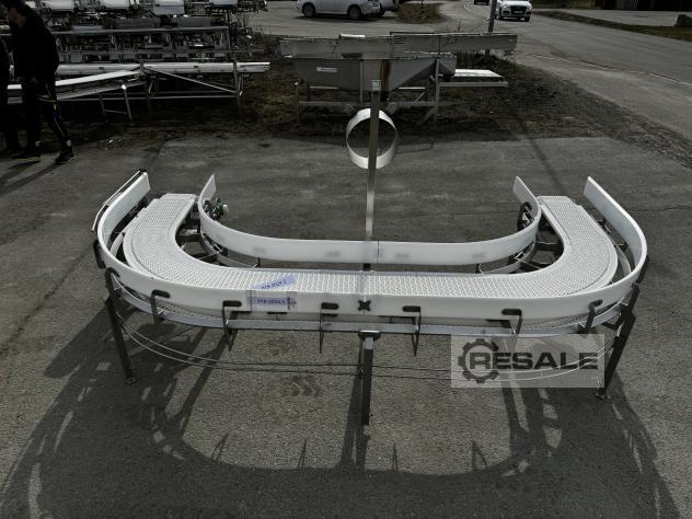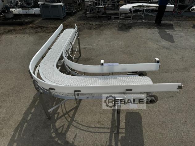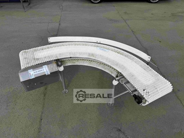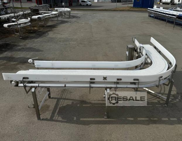 Transnorm belt curve conveyor right GKF 180°-1270-1100-IR1200 RA1946 Technical data:Conveying length middle radius (NL): 5498 mmFrame width (NB): 1270 mmFrame width with Bearing cover: 1390 mmFrame width with Bearing cover and gearbox: 1480 mmbelt width (GuB): 1100 mmheight (BH): 250 mm height motor below: 300 mm height including motor (MH): 550 mm Inner radius (IR): 1200 mmConveying angle: 180° degreesmiddler conveying speed (v m/s): 1,4m/sDrive: SEW motor motor with frequency converterElectrical data: 50Hz V380-500, kW 3 / S1Belt: KT 96Year of construction: 2021Height Sideguides: 194 mm Optionally available:Supports Prices net plus VAT from central warehouse Dr. Sonntag GmbH & Co KG, 97076 WürzburgFeatures: Construction year: 2021condition: good (used)Nominal / inner radius in mm: 1200Nominal / outside width in mm: 1270Belt width in mm: 1100angle: 180°Driven: YESRunning direction: ...