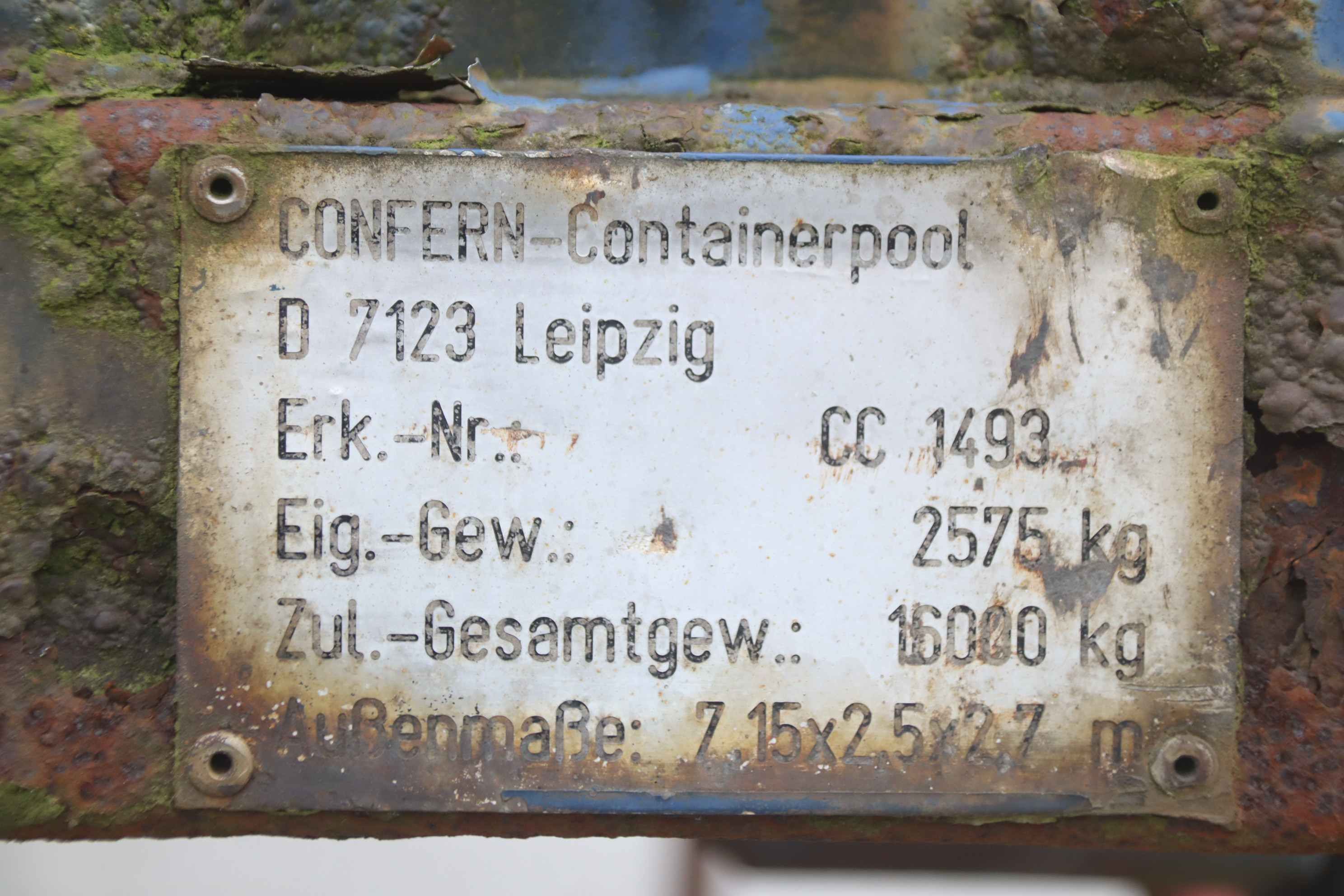 Containers, transport containers, sea containers, steel containers, ISO containers-Container: Steel container with underframe, can be driven under-Container interior dimensions: 6930/2450/H2350 mm-Gross weight: 6000 kg-Transport dimensions: 7200/2500/H2570 mm-Transport weight: 2880 kg