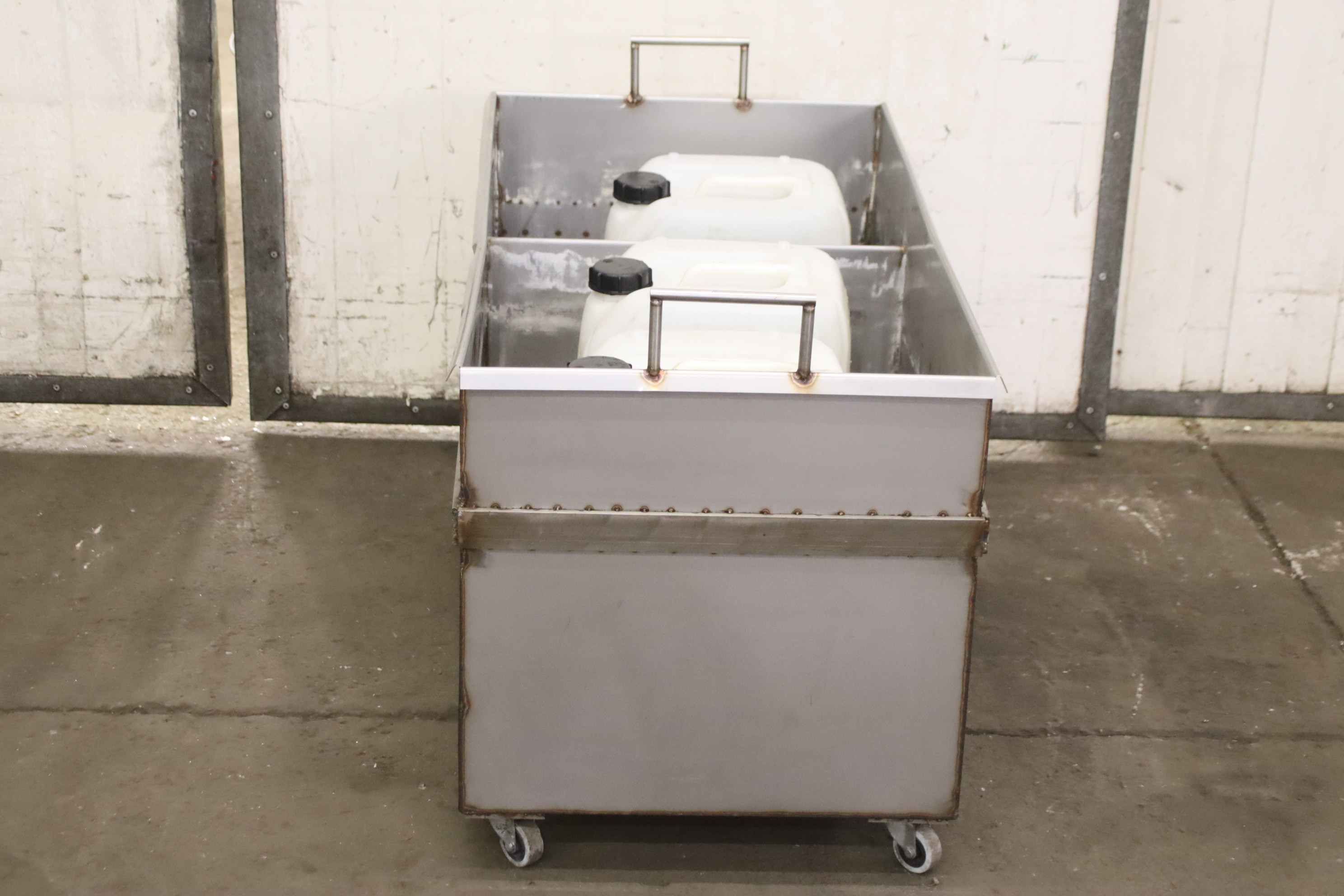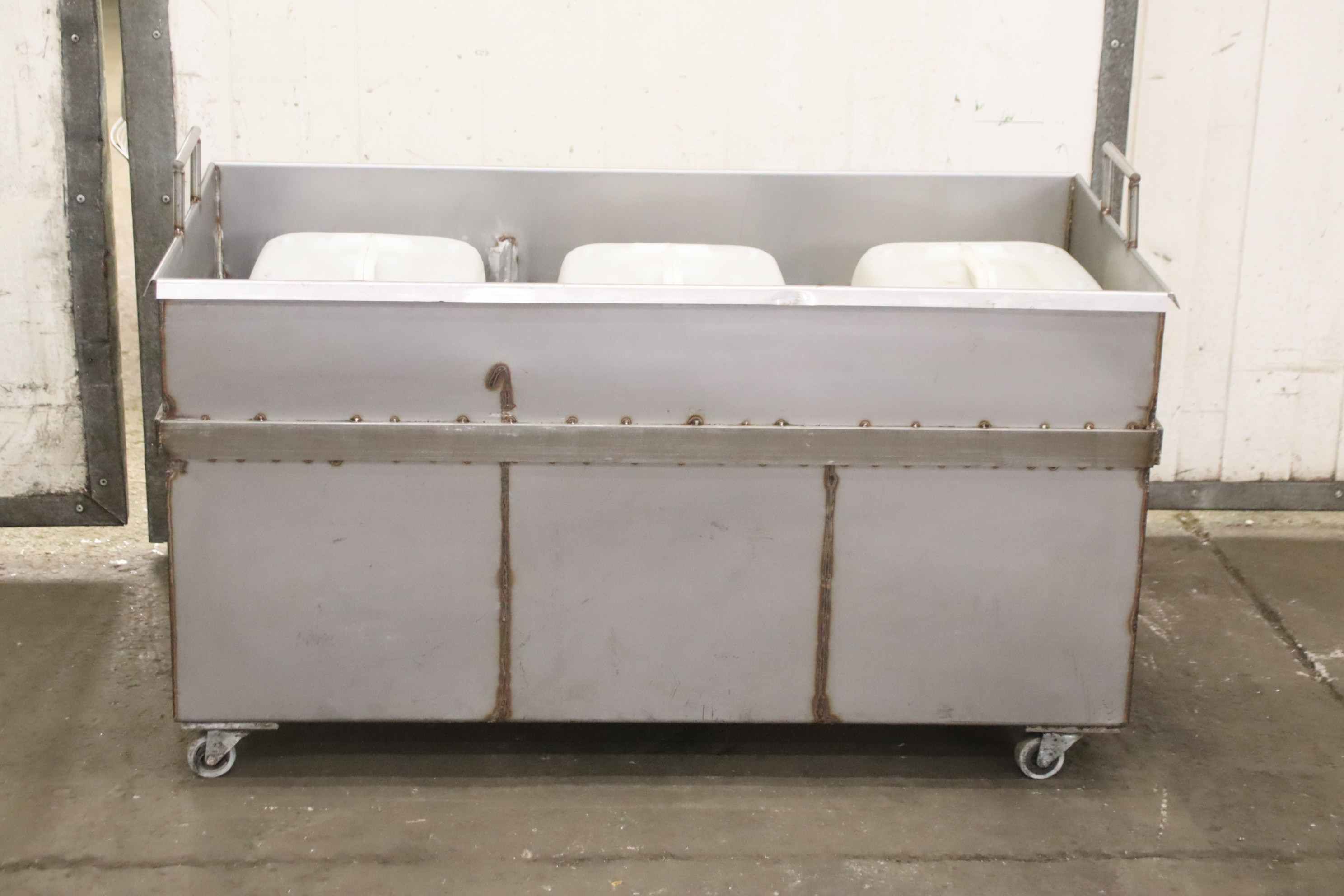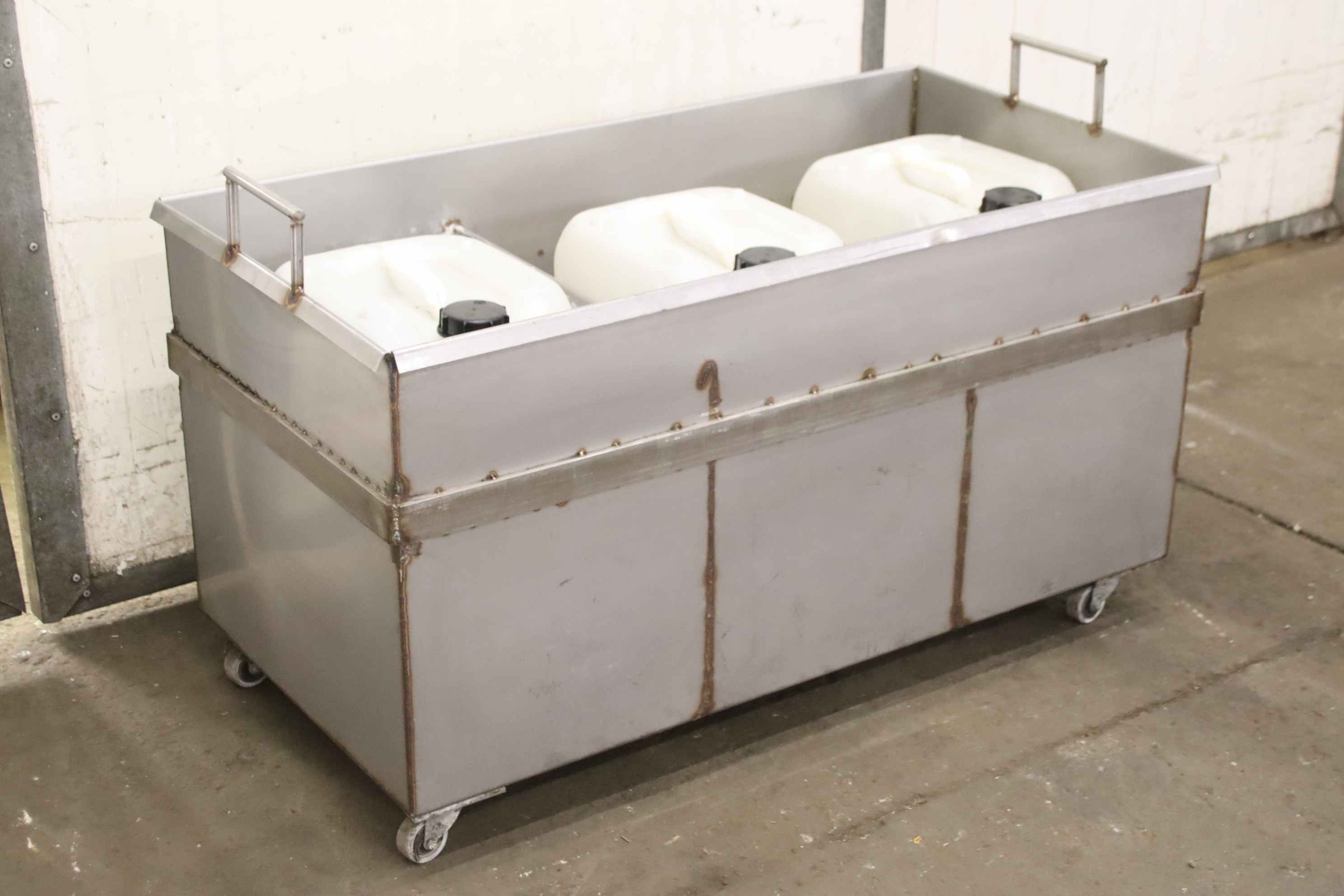 Storage containers, transport storage containers-Storage container: made of stainless steel with 3 compartments, mobile-3 compartments: with container, see photos-Dimensions:1035/520/H640 mm-Weight: 48 kg