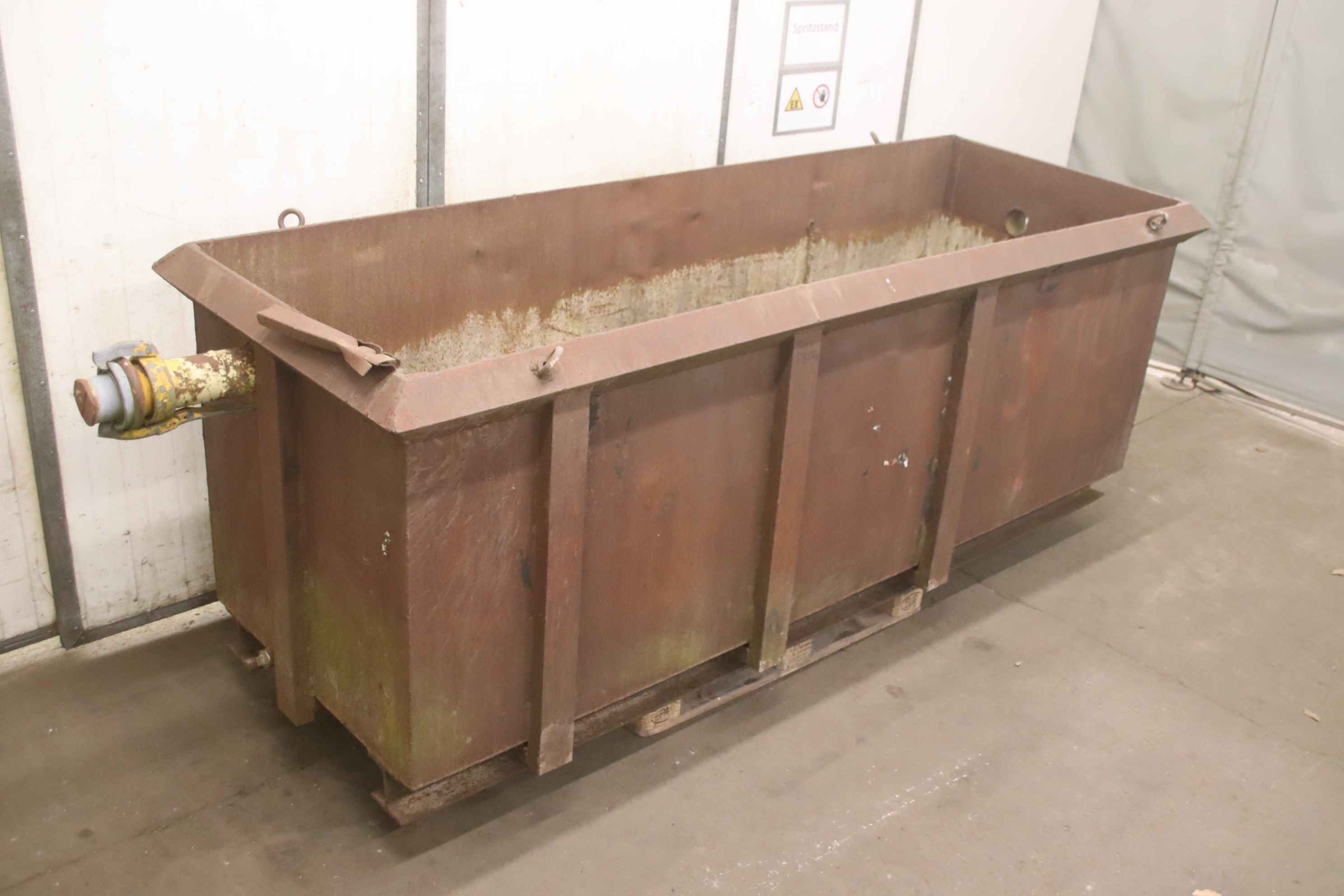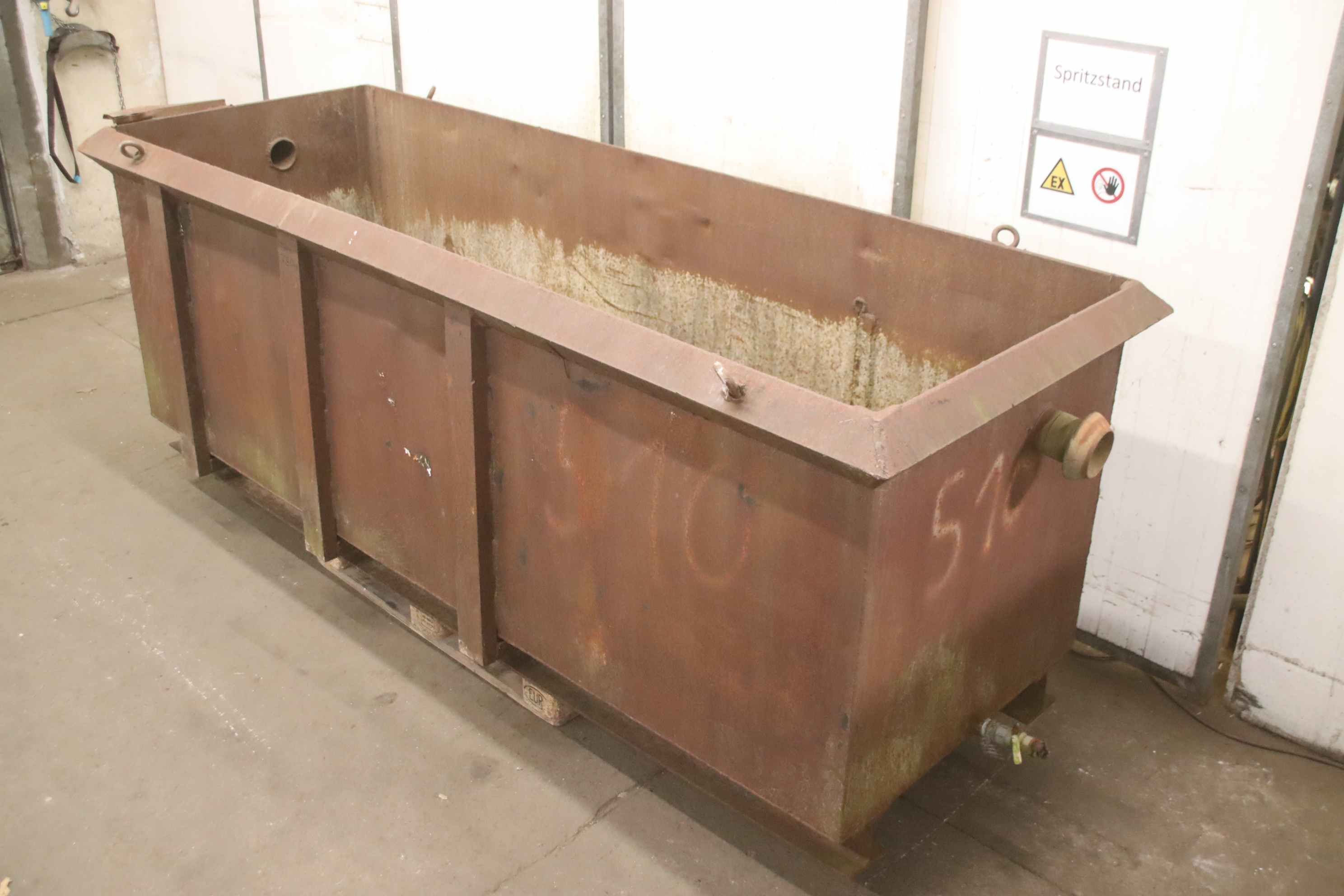 Container, grit trap, storage container, transport storage container, storage tank, transport container, settling tank for groundwater lowering -Container: Transport storage container -Capacity: 4000 liters -Inner dimensions: 2990/990/H1000 mm -Connections: see photos -Dimensions total: 3570/1150/H1150 mm -Weight: 780 kg