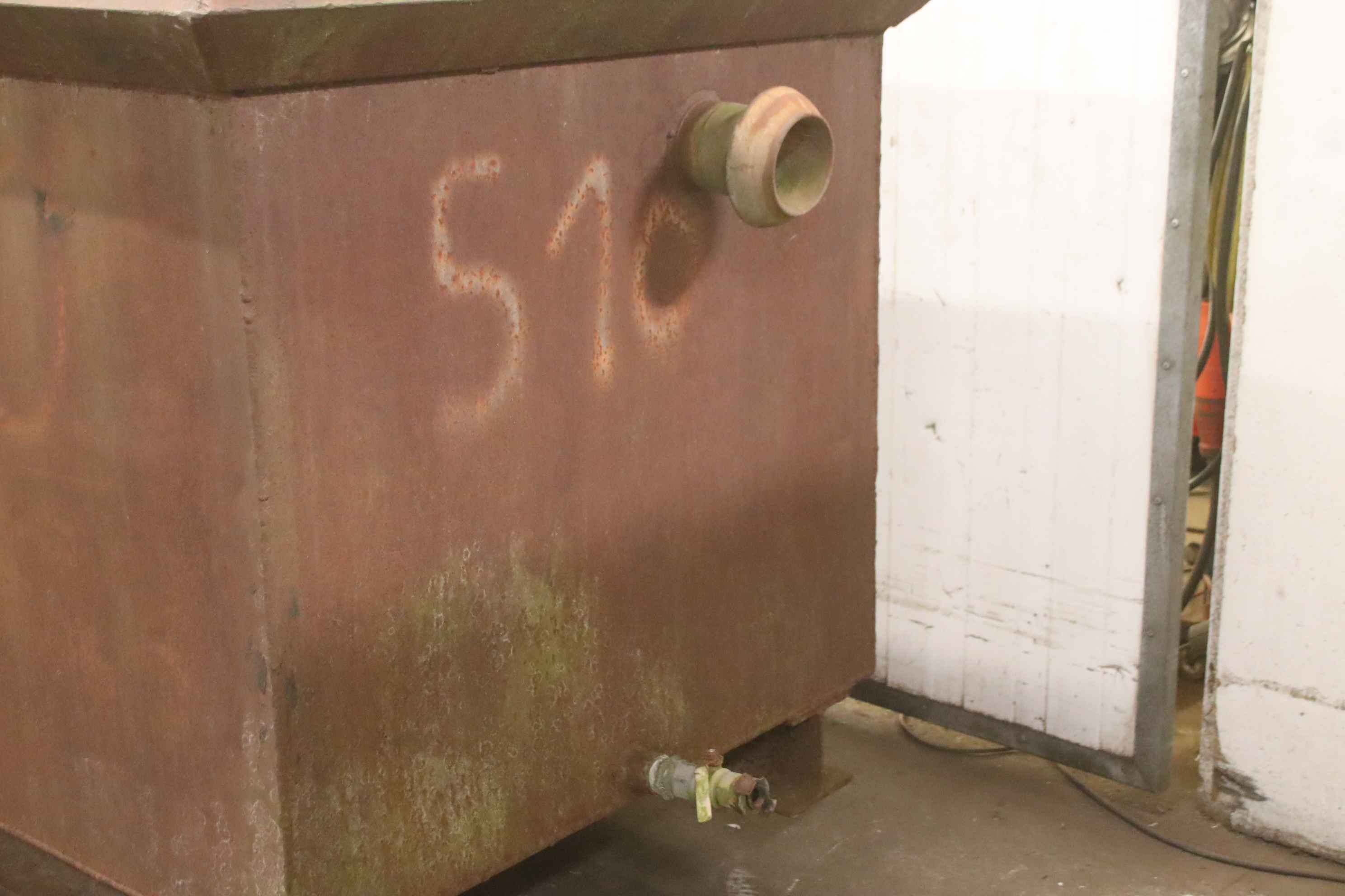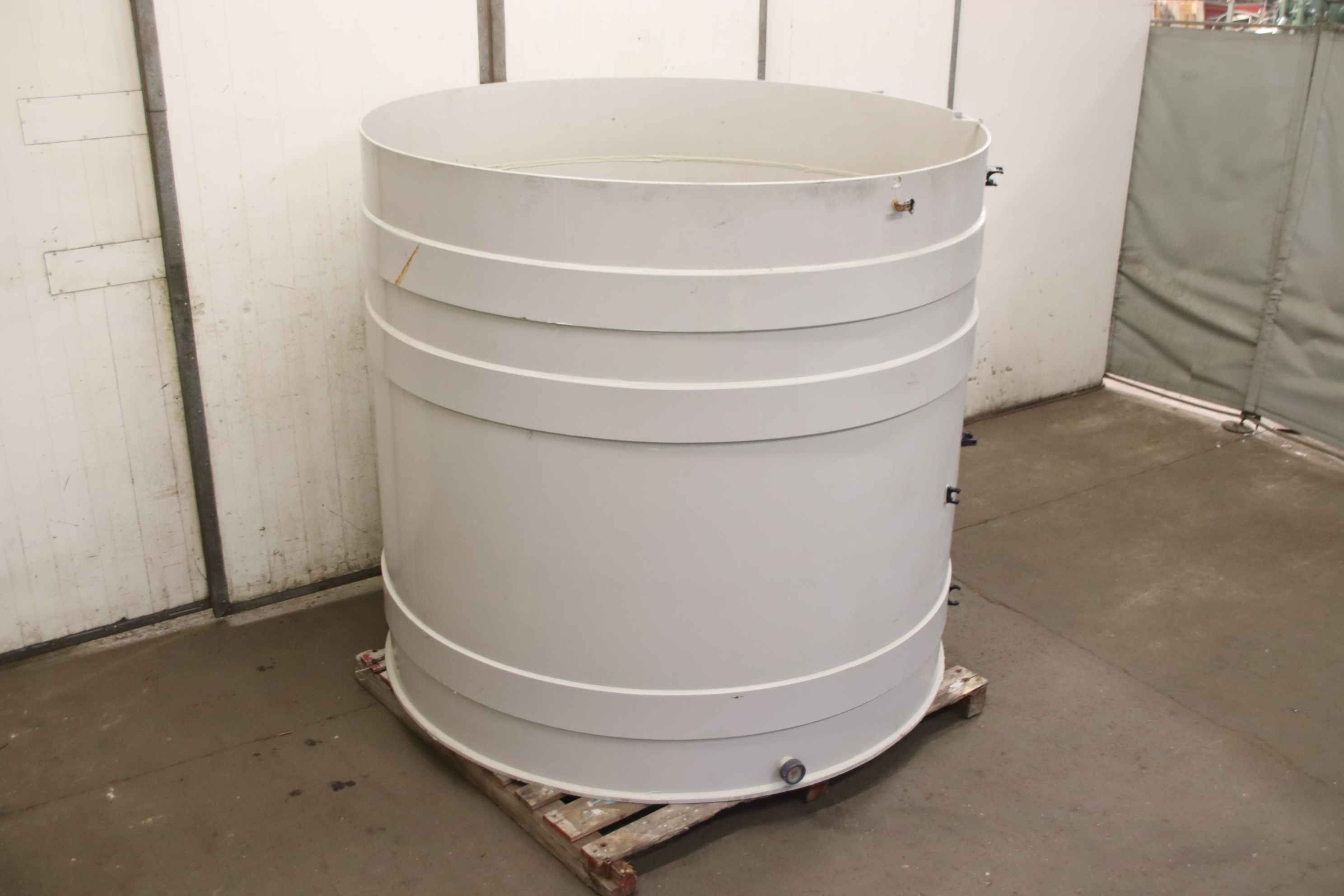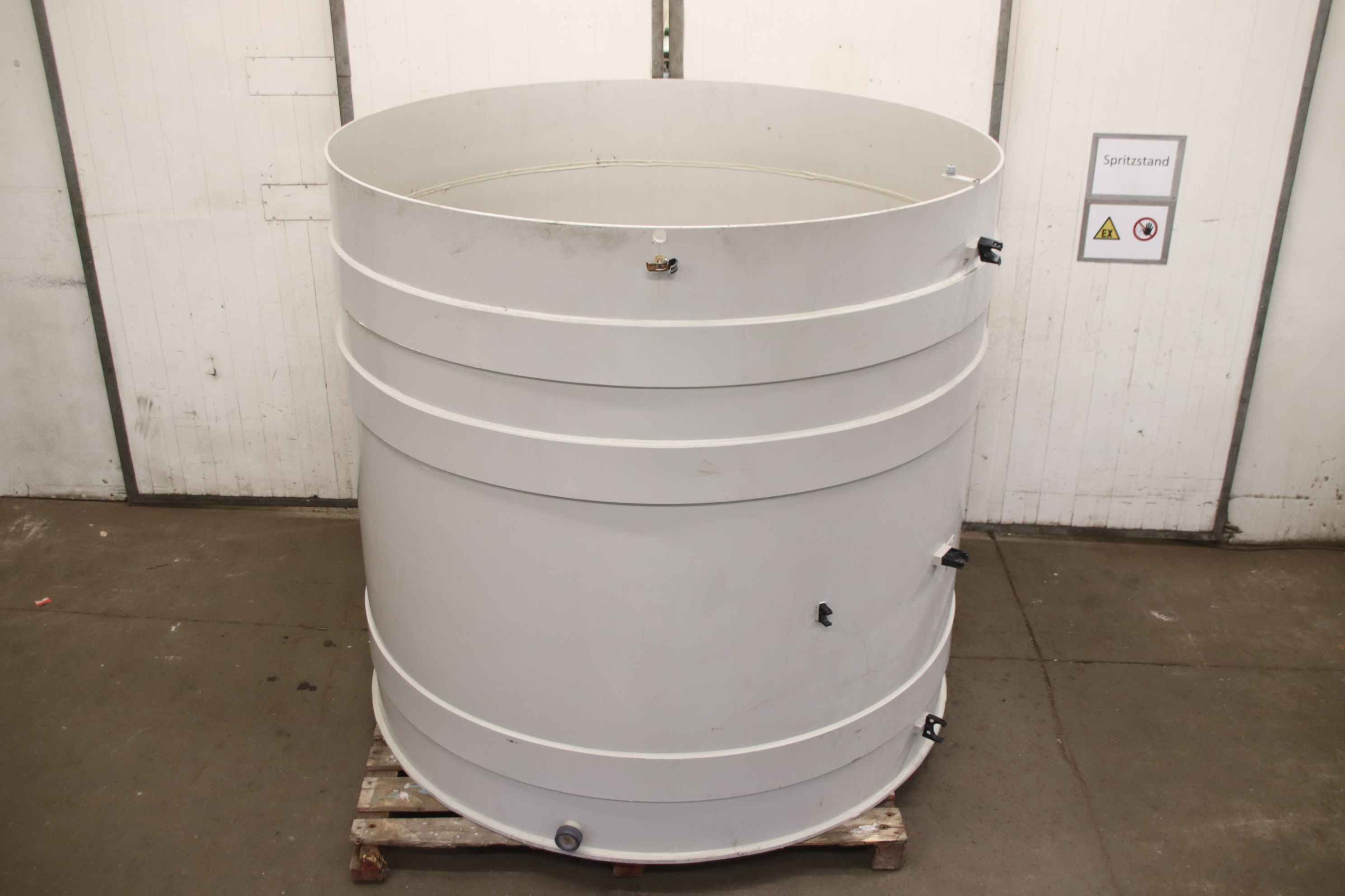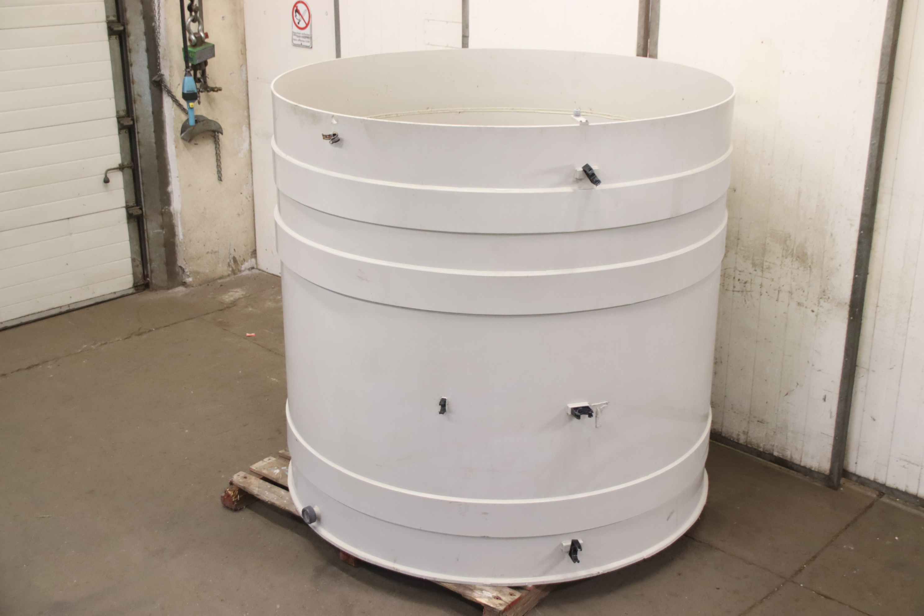 Container, grit trap, storage container, transport storage container, storage tank, transport container-Container: Storage container-Capacity: 5047 liters-Inner dimensions: Ø 1890 x 1800 mm-Connections: see photos-Number: 2x containers available-Price: per piece-Dimensions total:Ø 1930 x 1815 mm-Weight: 211 kg/piece