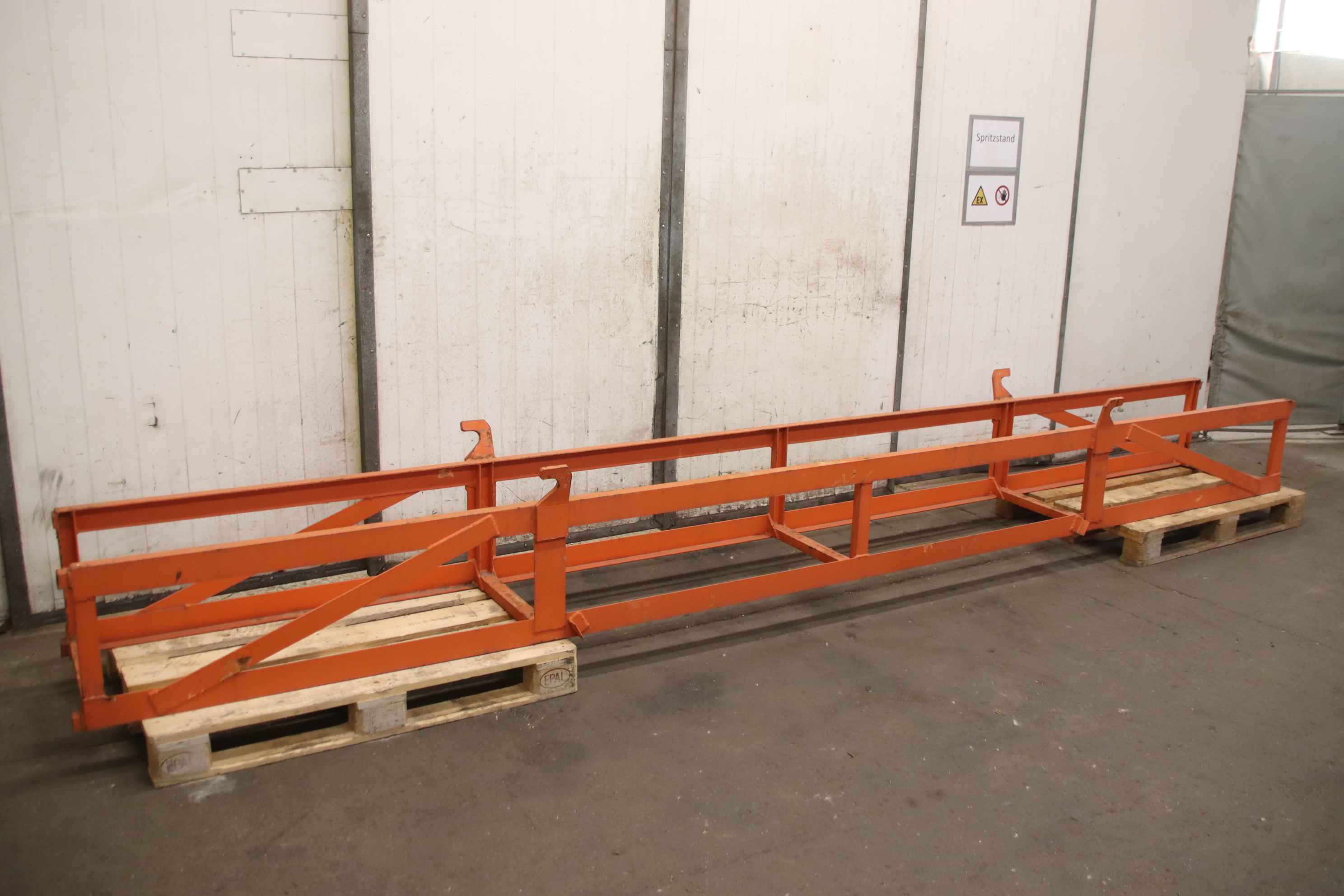 Storage containers, transport storage containers, long goods racks, long goods pallets-Long goods frame: Stackable long goods pallet, length 6280 mm-Crane eyes: 4 pieces-Number: 7x long goods rack available-Price: per piece-Dimensions: 6280/640/H550 mm-Weight: 162 kg/piece