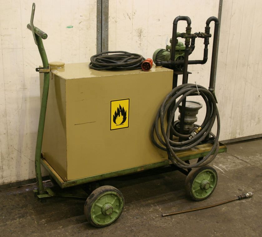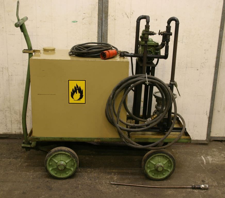 Diesel tank system, diesel tank, gas station, fuel tank system-for: diesel, heating oil-Mobile-with: electric motor pump-Delivery rate: approx. 30 l/min-Liter display clock-Content: 800 liters-Dimensions: 1500/800/H1480 mm-Empty weight: 310 kg