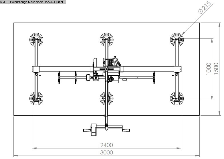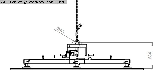 carrying capacity: 500 kg.number of suction cups: 6 Stücksuction cup dia.: 215 mm0: 8,0 m³/htool adaptor: Kranöse 80,0 mmvoltage: 400 Vtotal power requirement: 0,18 kWweight of the machine ca.: 120 kg.dimensions of the machine ca.: 2400 x 1100 x 584 mmFurnishing :- for the horizontal transport of smooth, dry and airtight panels- Robust supporting structure made of steel- Painted in RAL 2000 with low weight- Galvanized longitudinal beam with a length of 2,400 mm- 3x galvanized crossbeams with a length of 1,000 mm- 6x springy, articulated and adjustable suction cup holders- 6x suction cups Ø 215 mm- Low-maintenance, very high-quality, dry-running rotary vane vacuum pump- with a suction capacity of 8 m³/h and a final vacuum of 85% (150 mbar)- 3 phases 230/400 V + PE, 50 Hz, with cable (approx. 0.5 m long)- Operating handle can be extended to 1,000 mm from the center of the traverse- S ...