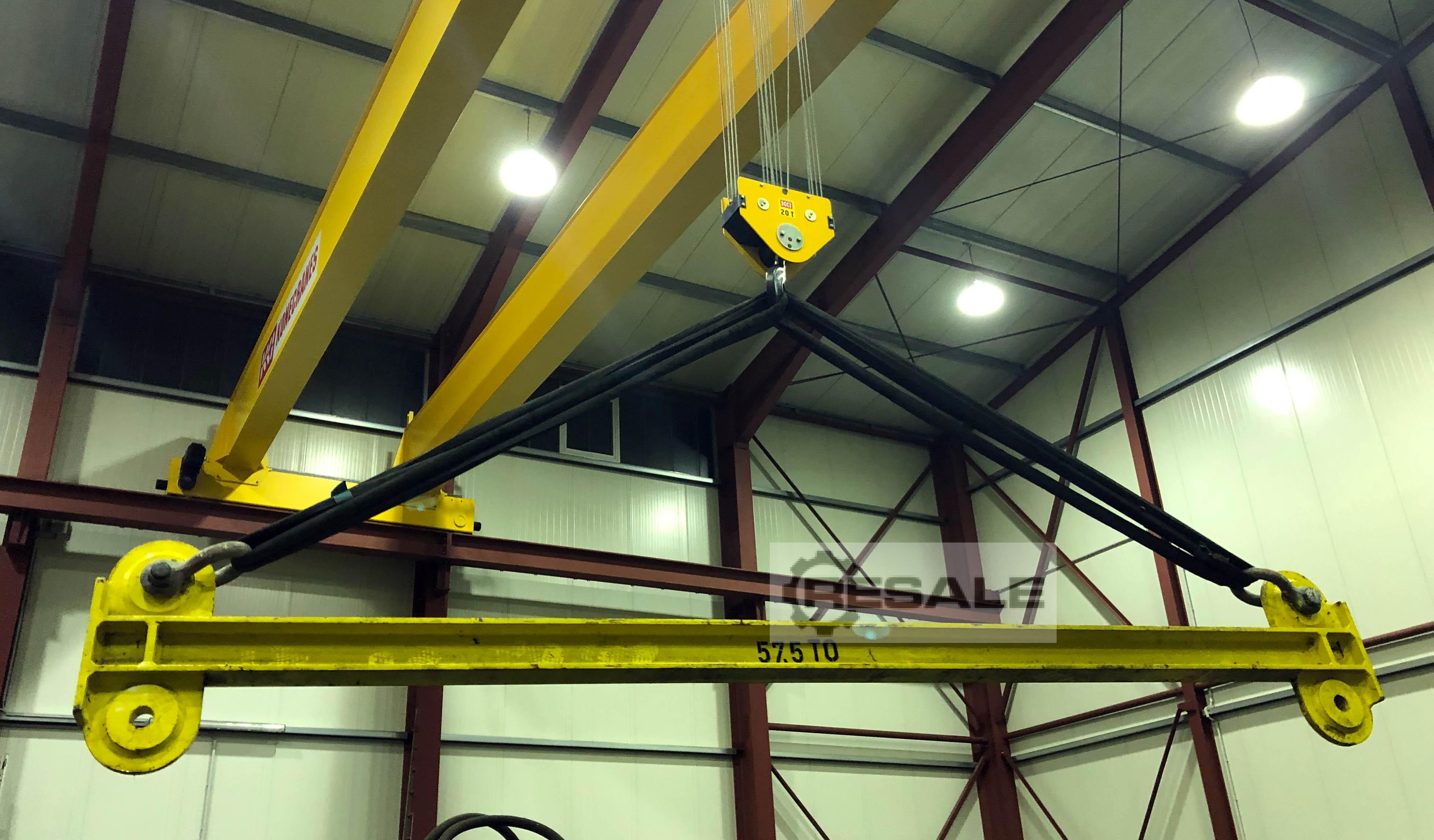 2 шт. Подъемные балки Грузоподъемность 57,5 т каждая. Общая длина по 6000 мм с 4 кандалами каждая
