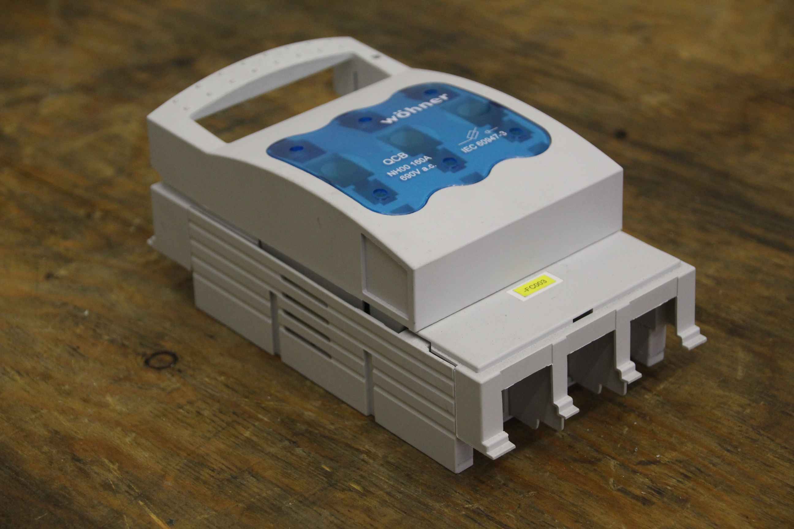 Auxiliary switch, automatic circuit breaker, fuse, line switch, line circuit breaker, switch disconnector, terminal plate-wöhner: QCB NH00 160A switch disconnector-Price: per piece-Number: 2 pieces-Dimensions: 200/110/80 mm-Weight: 1.2 kg/piece