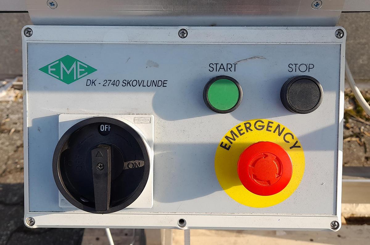 Номер наличия: F1132, Материал: нержавеющая сталь AISI 304, В наличии: Да, Количество в наличии: 1 шт., Товар: Машина для маркировки, Стоящая стойка: На ножках, Размеры: L 2050 x W 700 x H 1600 мм., Размер этикетки: Max H 120 мм, Размещение этикетки: верхняя часть, Конвейер: лента, Размеры конвейера: L 2000 x W 40 мм, Производитель: EME, Модель: 1120, Тип: 1000, другое: 2 штуки. боковой ремень — горячий печат