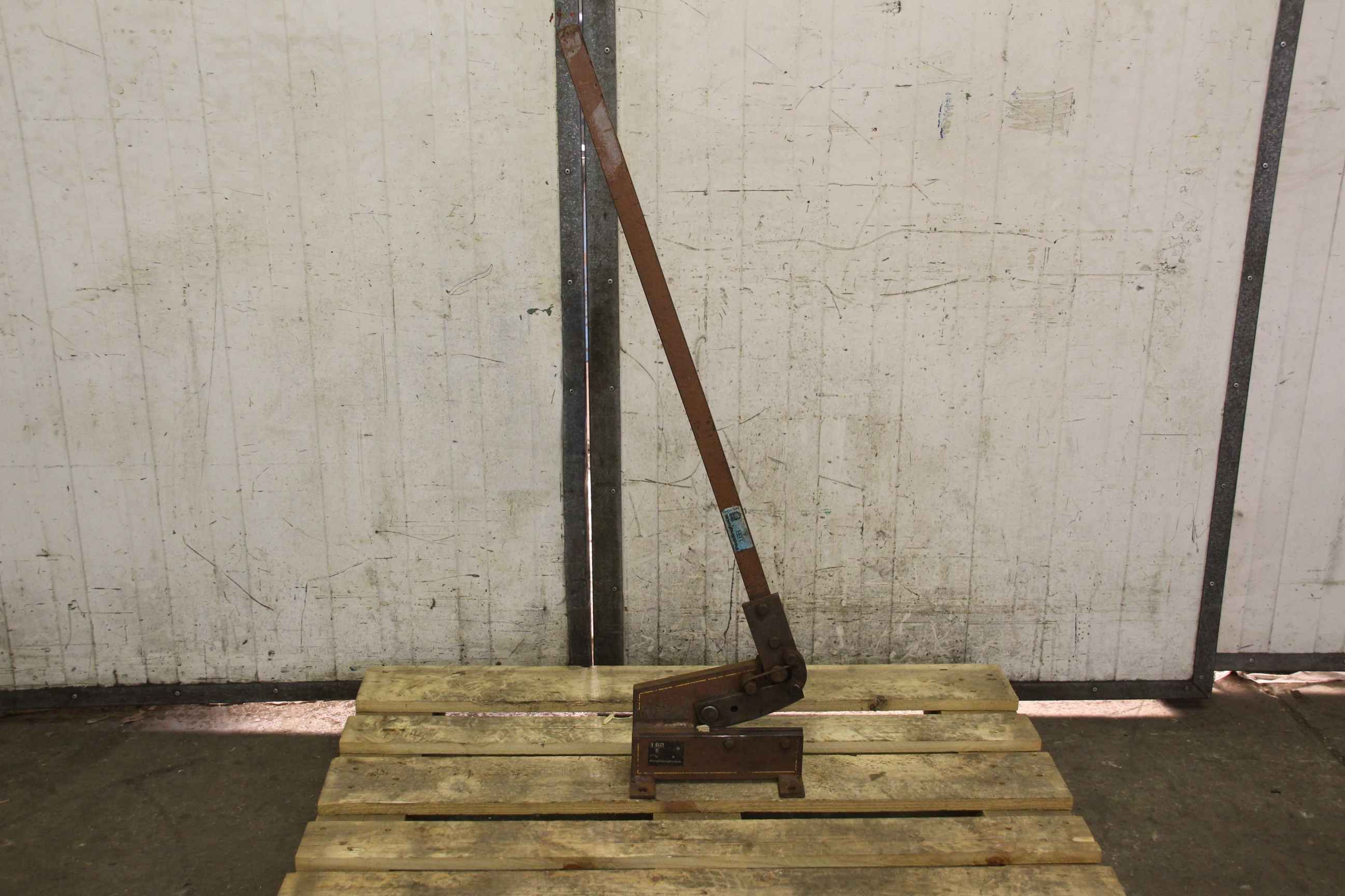 Hand lever shears, lever shears, long-blade sheet metal and round steel shears, sheet metal shears, profile steel shears-Manufacturer: Thälmann, lever shears, profile steel shears type ScDH8-Steel sheet: up to 8 mm-Round steel: up to 16 mm-Cutting performance: see photo type plate-Holder: continuously adjustable-Number: 2x lever scissors available-Price: per piece-Dimensions: 700/230/H1435 mm / 720/230/H1370 mm-Weight: 88 kg / 90 kg