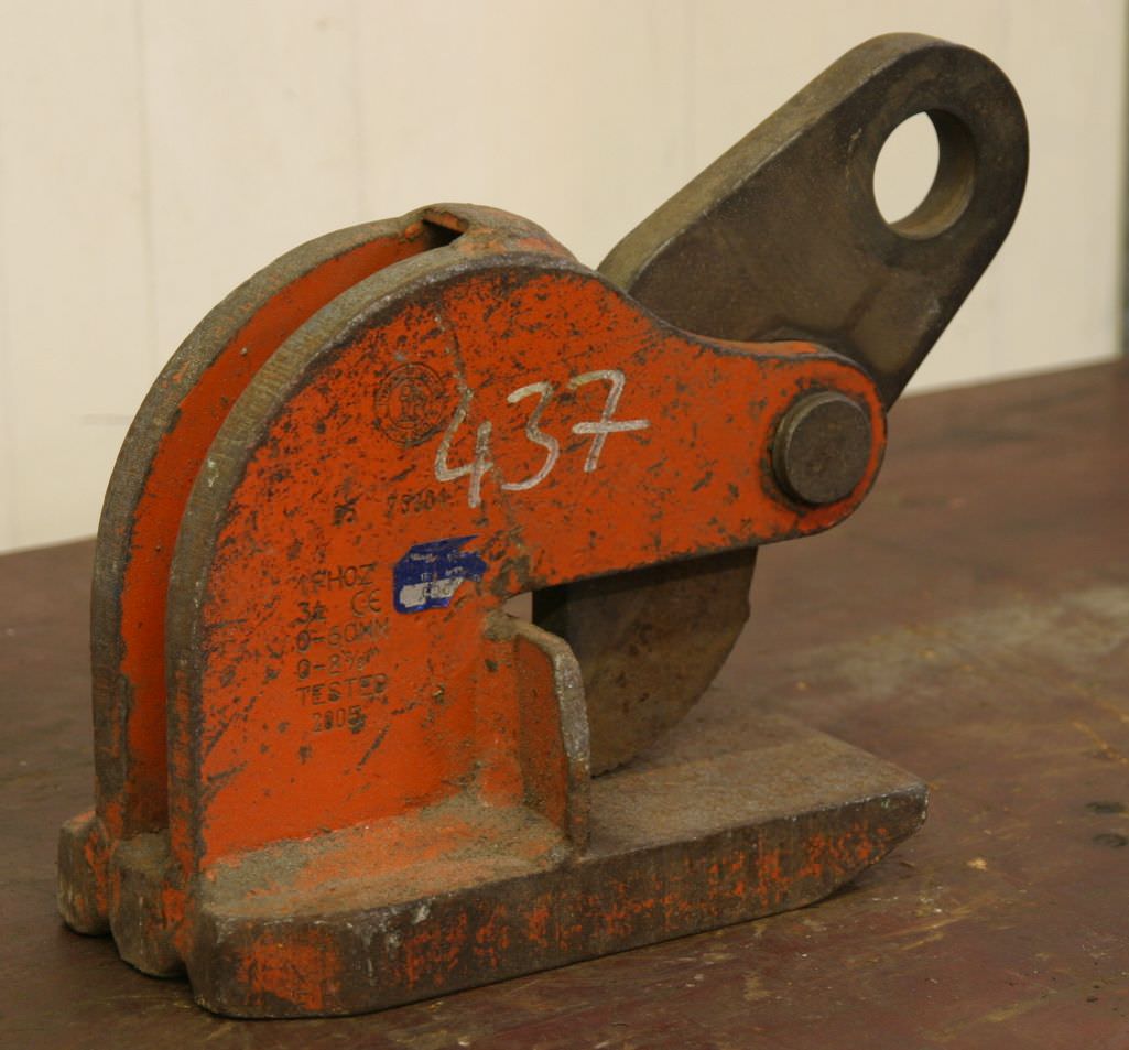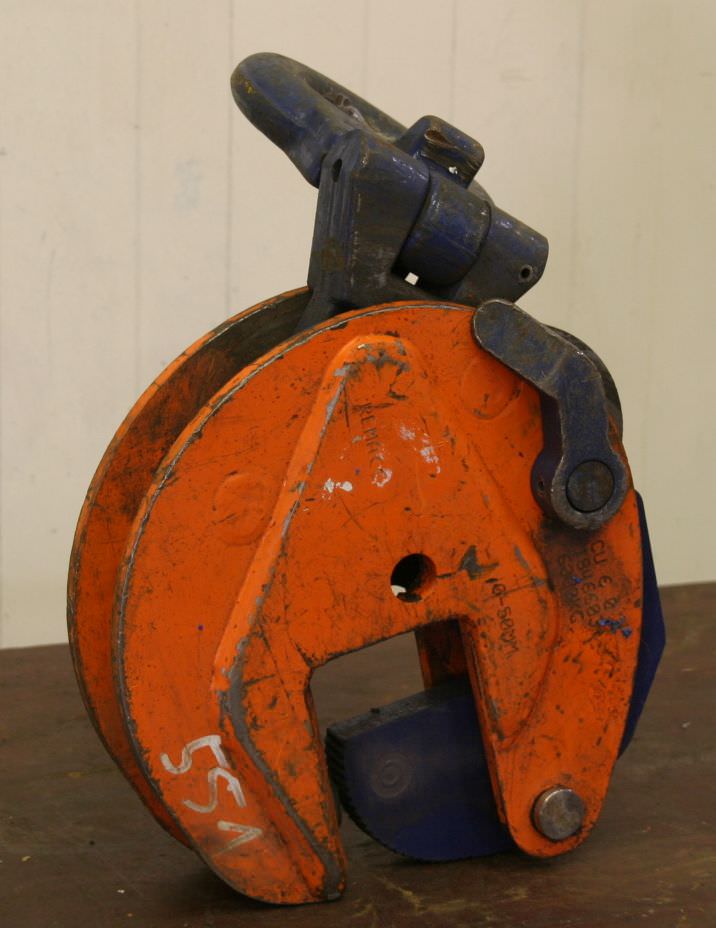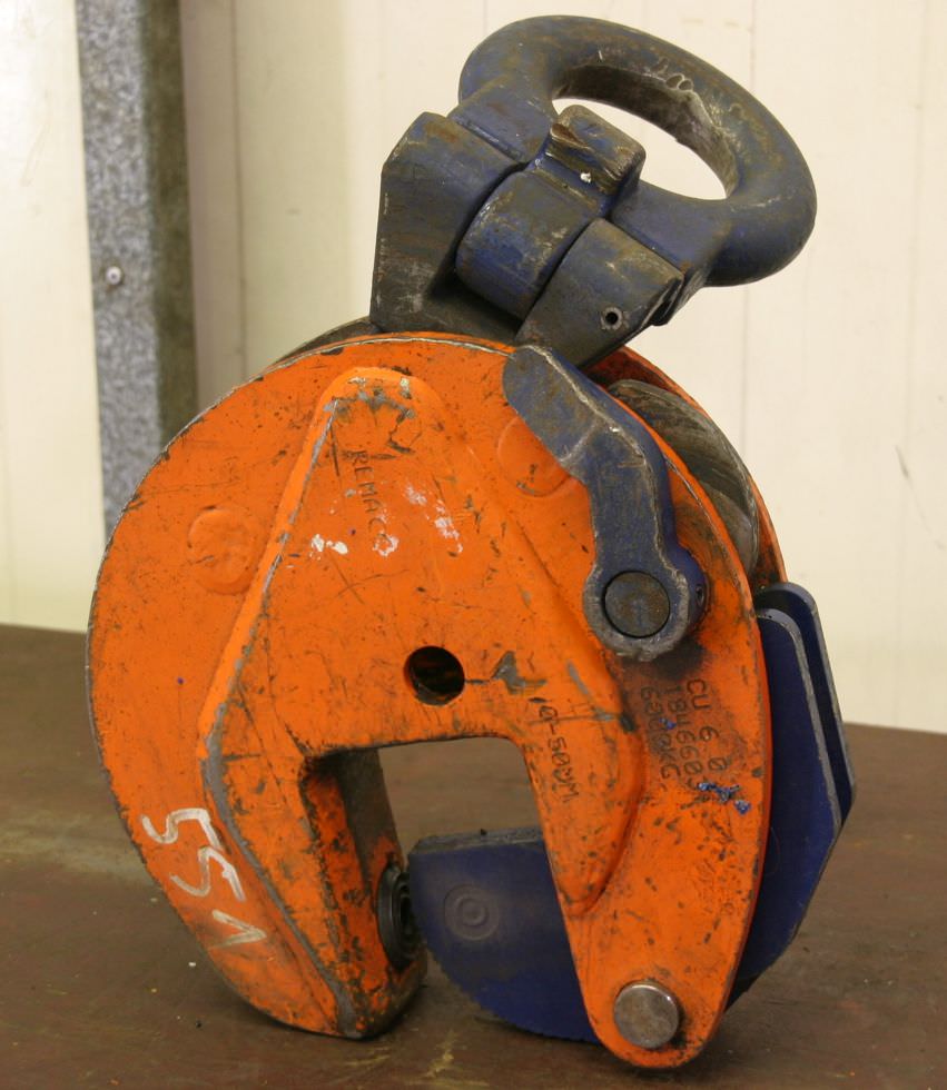 Sheet metal clamp, sheet metal claw, beam clamp, beam claw, sheet metal gripper, material gripper, material gripper -Sheet metal claws -Span: 0 to 50 mm -Load capacity: 6000 kg -Number: 1x terminal available -Price: per piece -Weight: 28 kg/piece