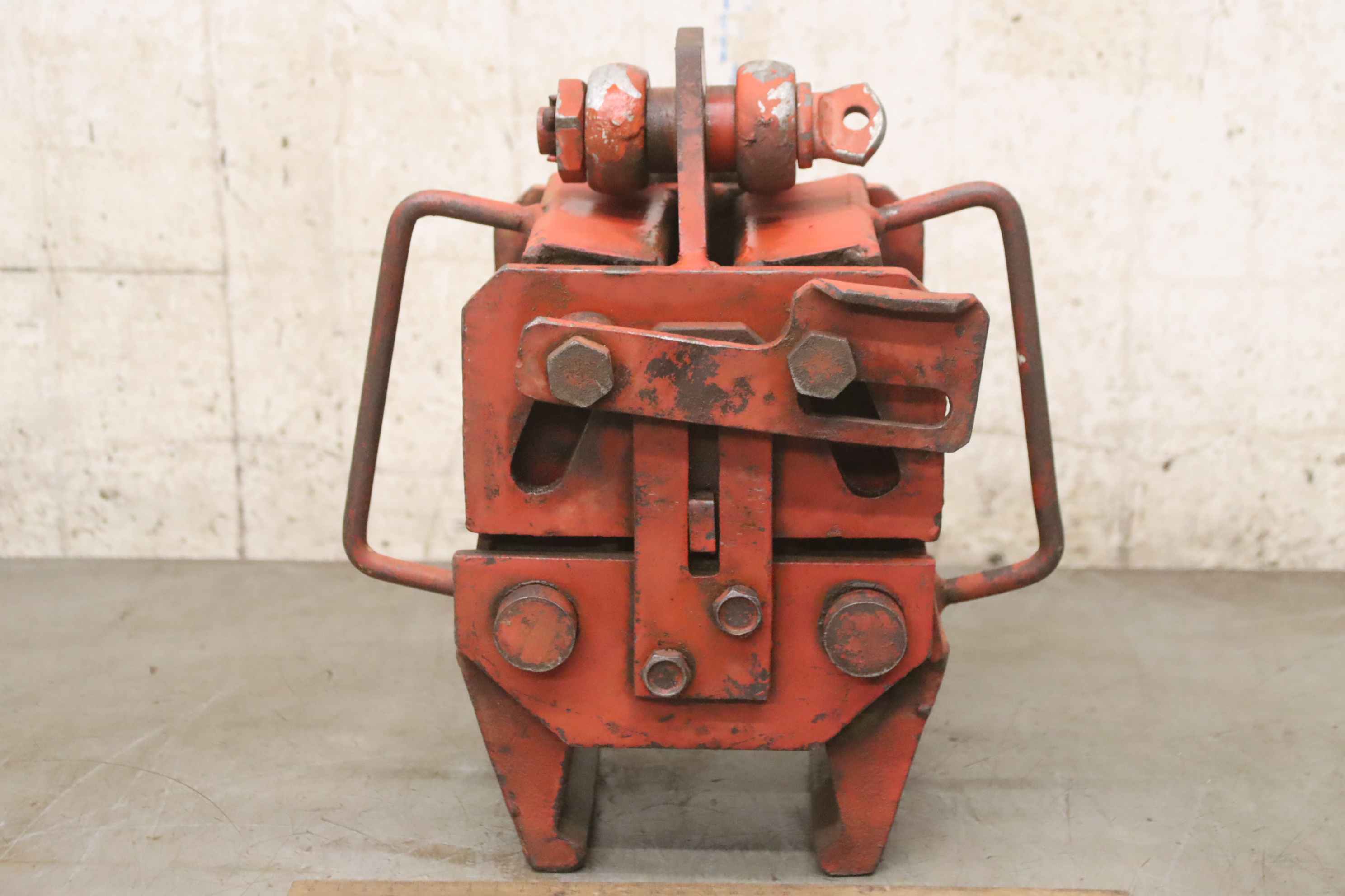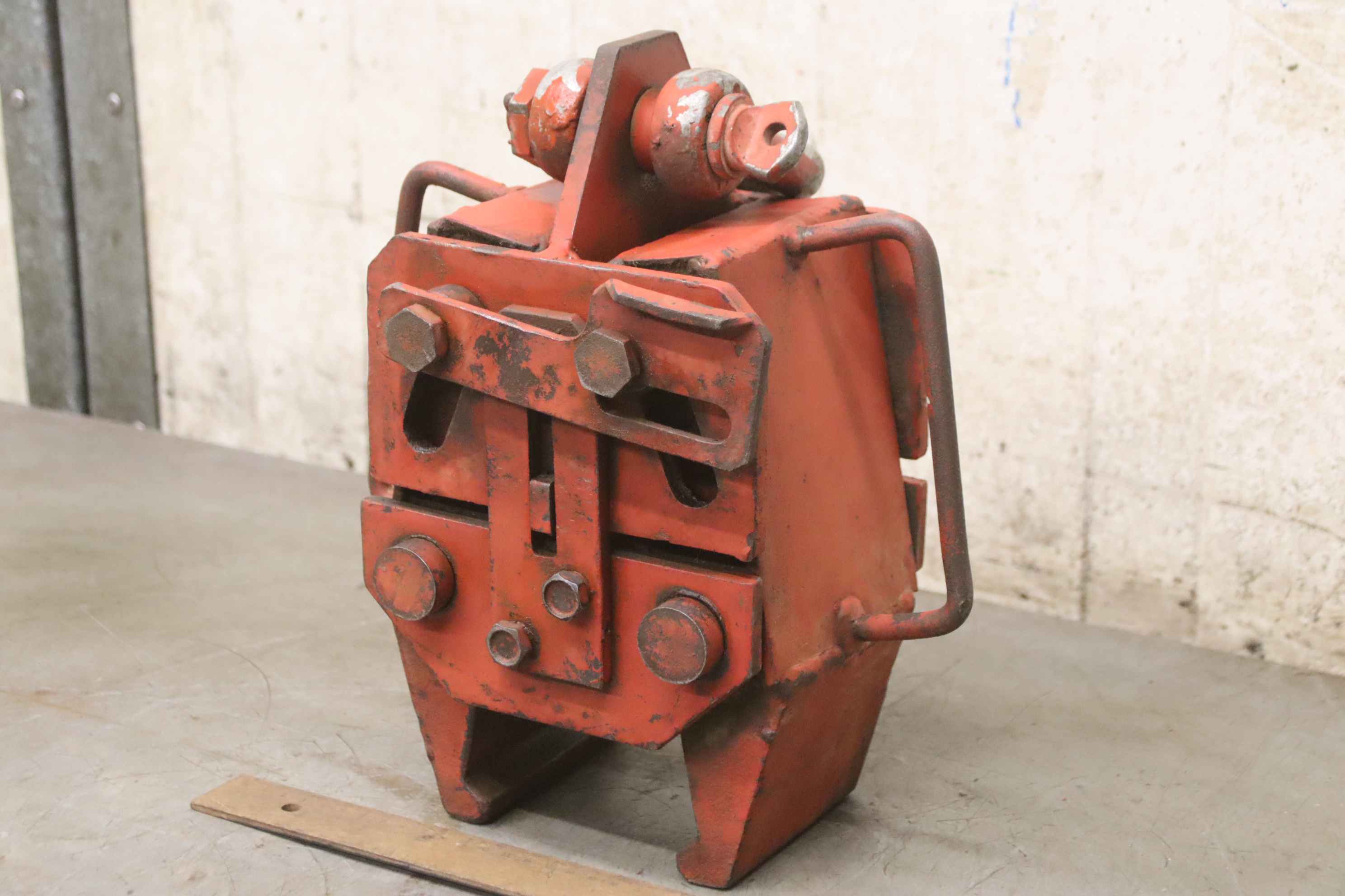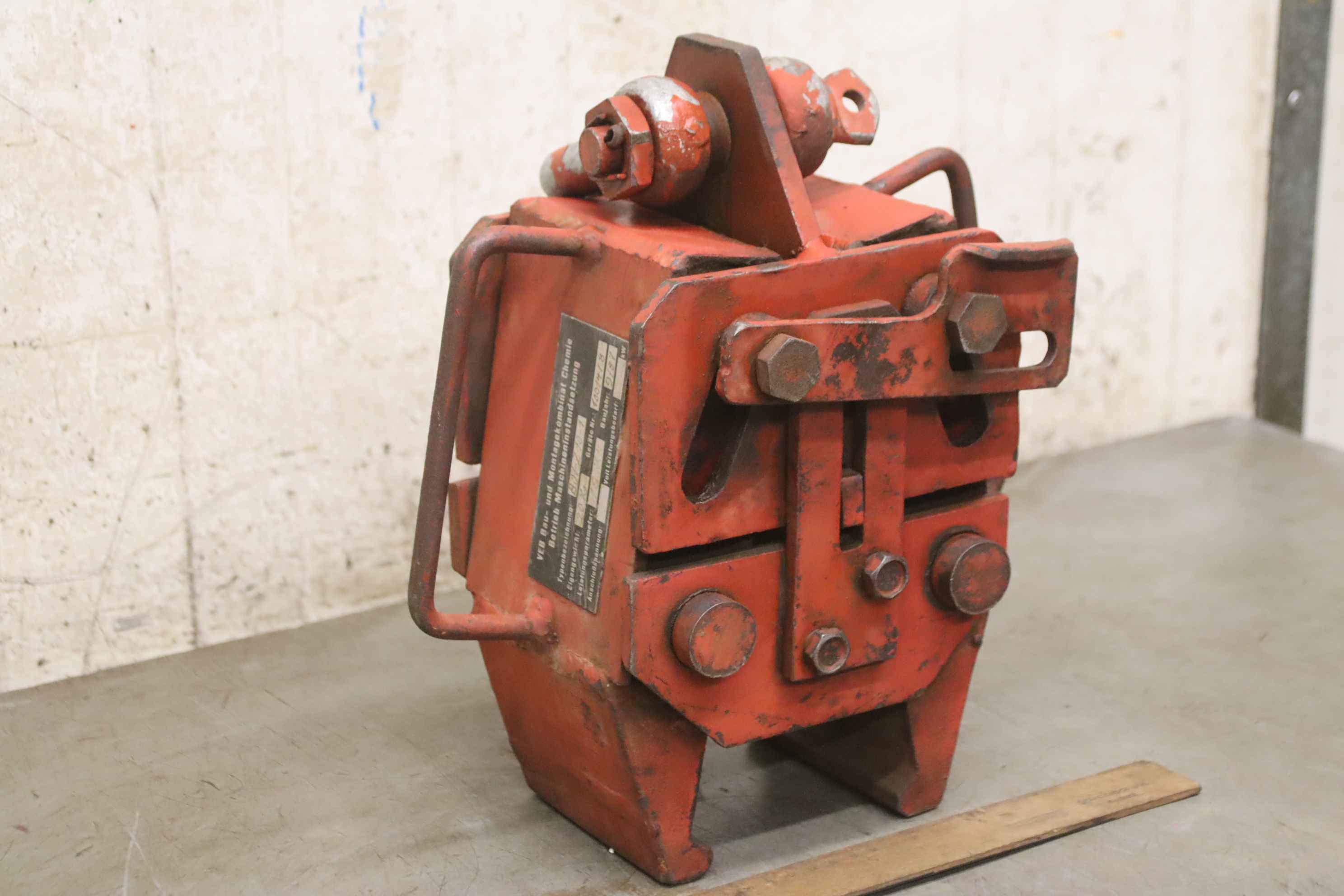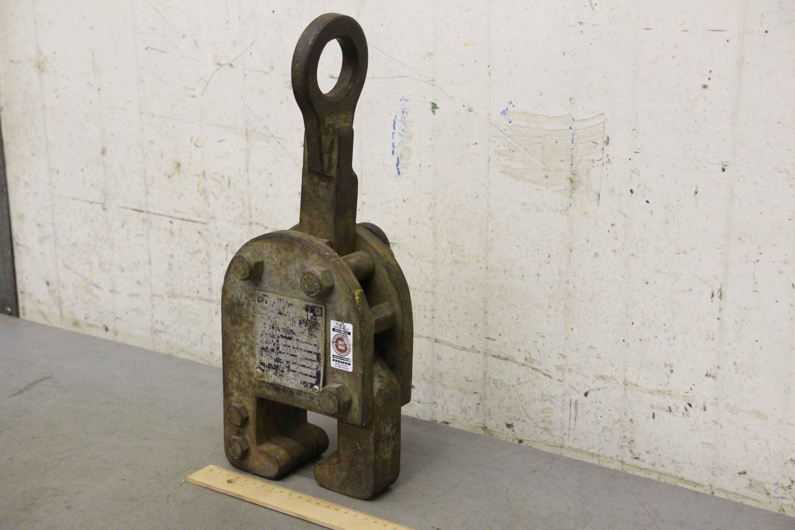 Forged gripper, manipulator forged gripper, sheet metal clamp, sheet metal claw, beam clamp, beam claw, sheet metal gripper, material gripper, material gripper -Manufacturer: VEB, Material gripper type B04-Z10-1 -Load capacity: 1,000 kg -Wingspan: see photos -Dimensions: 280/190/H320 mm -Weight: 21 kg