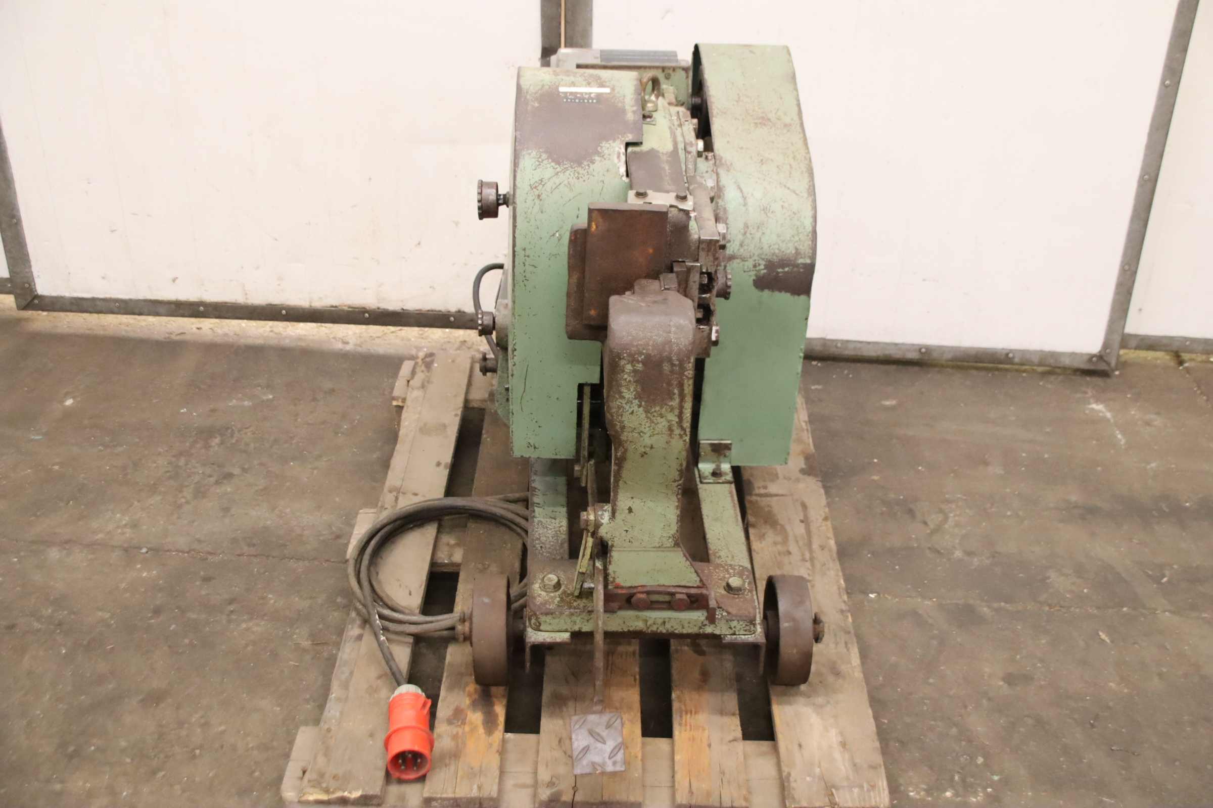 Punch, punching machine, punching device, hole punching machine, hole punch, copy punch, stop punch, hole punch, eccentric punch, serial hole punch, punching machine, punching press -Box tube punch: 50 x 30 mm -2x quick-change tool holders (for round tubes and rectangular tubes) -with tools round tube punch and rectangular tube punch -Coordinate stop -Protrusion: 155 mm -Quick-change system punching -Side and depth stops -Max. punching capacity: 36 t -Weight: approx. 2000 kg