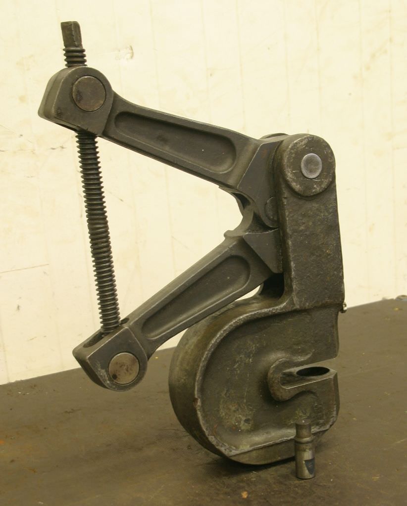 Hand punch, hand punch, eccentric punch, hand lever punch, spindle punch -Stamp holder: Ø 22 mm -Die holder: Ø 40 mm -Dimensions: 310/400/H50 mm -Weight: 26 kg