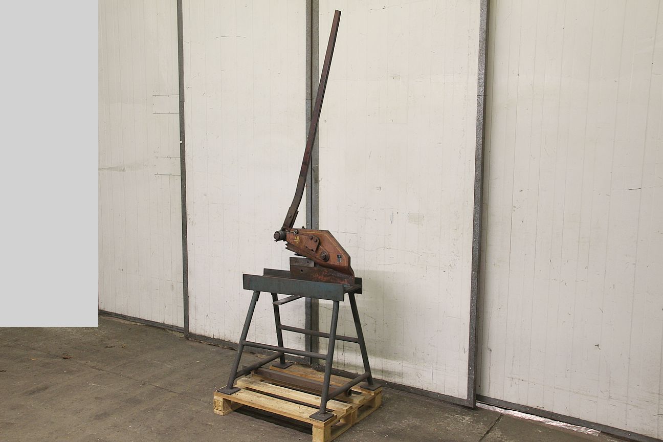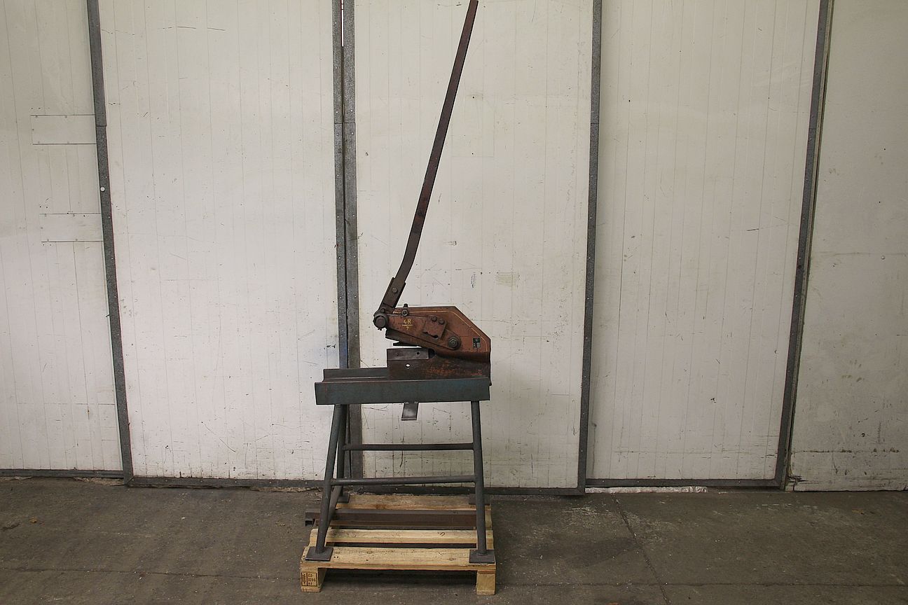 Hand lever shears, long-blade sheet metal and round steel shears, lever shears -Manufacturer: Mubea, sheet metal and round steel shears -Cutting insert length: 200 mm -Round steel: up to approx. 20 mm -Rectangular profile: up to approx. 19x19 mm -Lever arm: with rack and pinion transmission -Overall dimensions: 455/170/H1540 mm -Transport dimensions: 1230/170/H440 mm -Weight: 49 kg