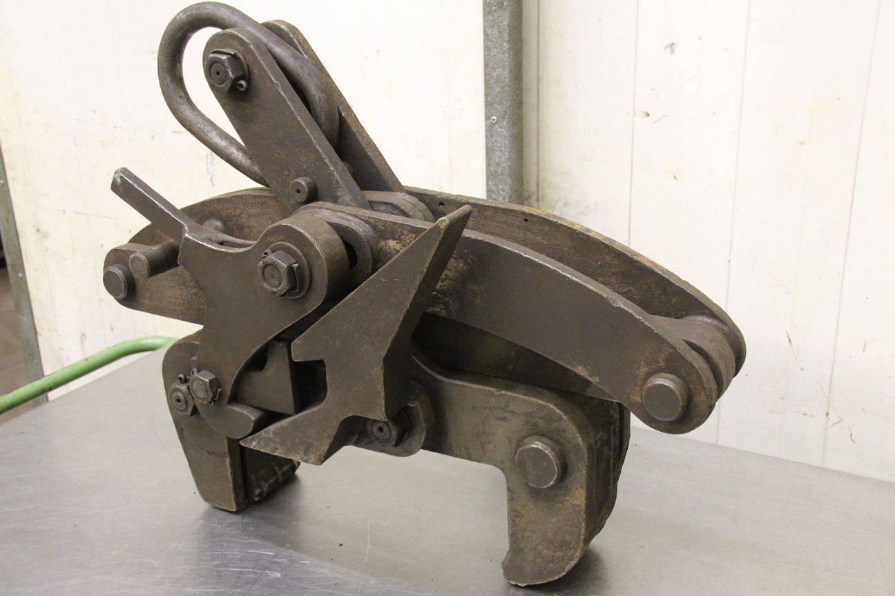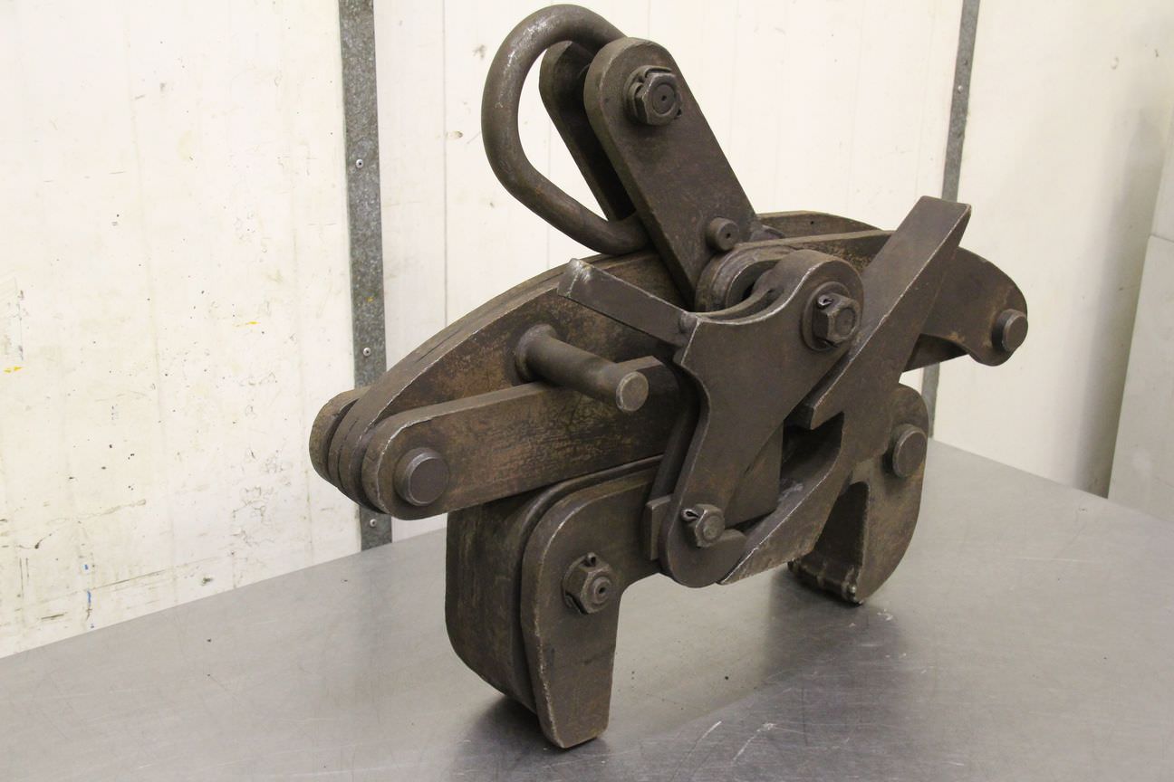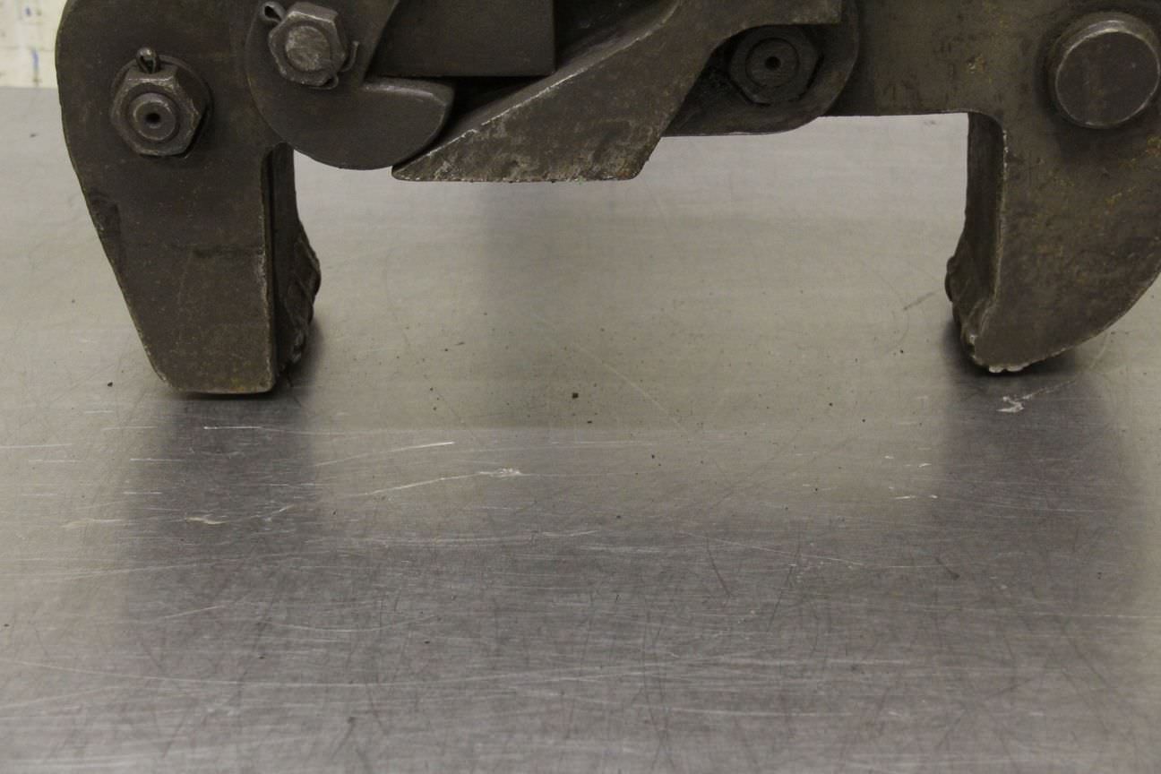 Forged gripper, manipulator forged gripper, sheet metal clamp, sheet metal claw, beam clamp, beam claw, sheet metal gripper, material gripper, material gripper -Sheet metal claws -Span: 0 to 250 mm -Load capacity: 1,000 kg -Quantity: 1 piece available -Dimensions: 730/240/H860 mm -Weight: 118 kg