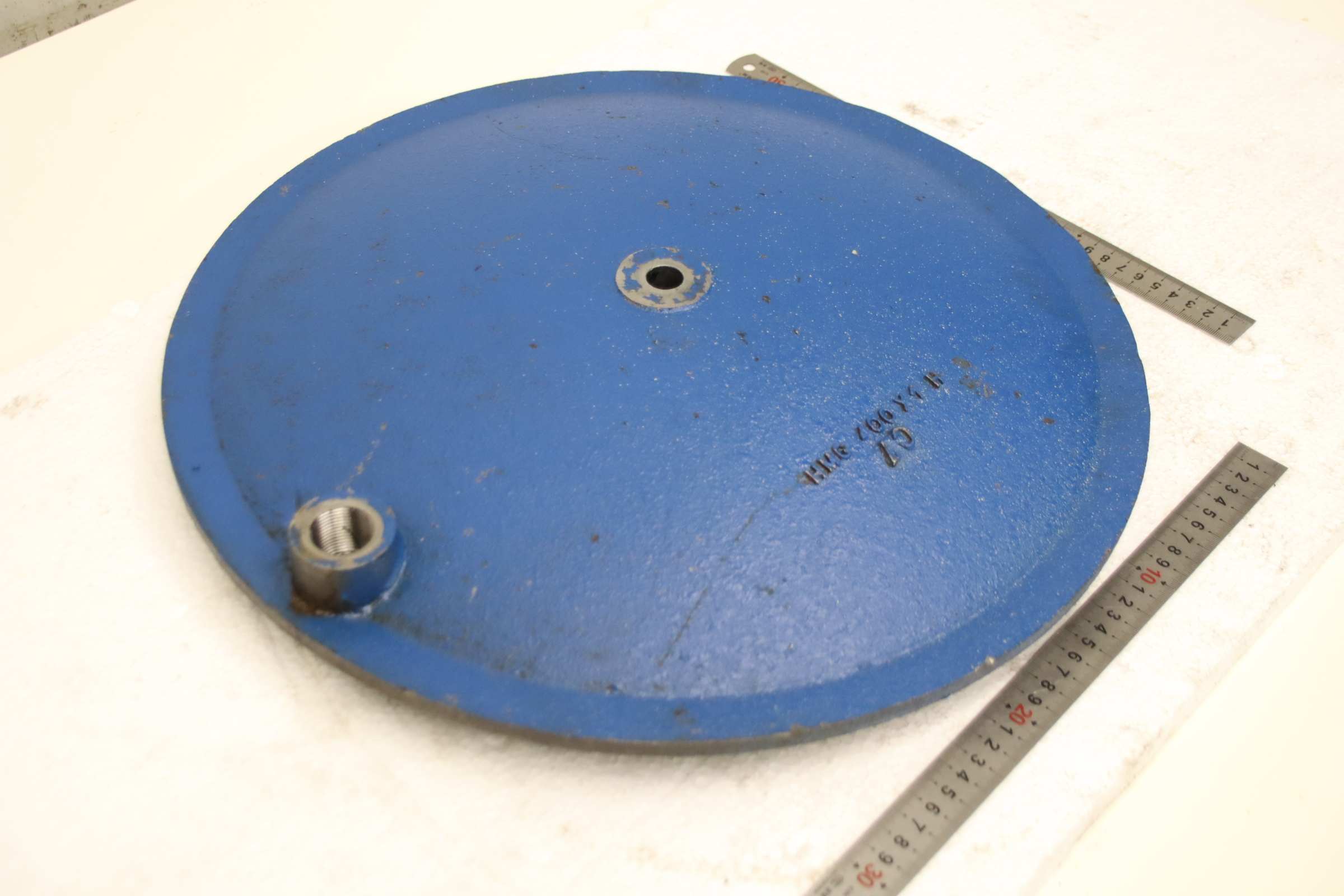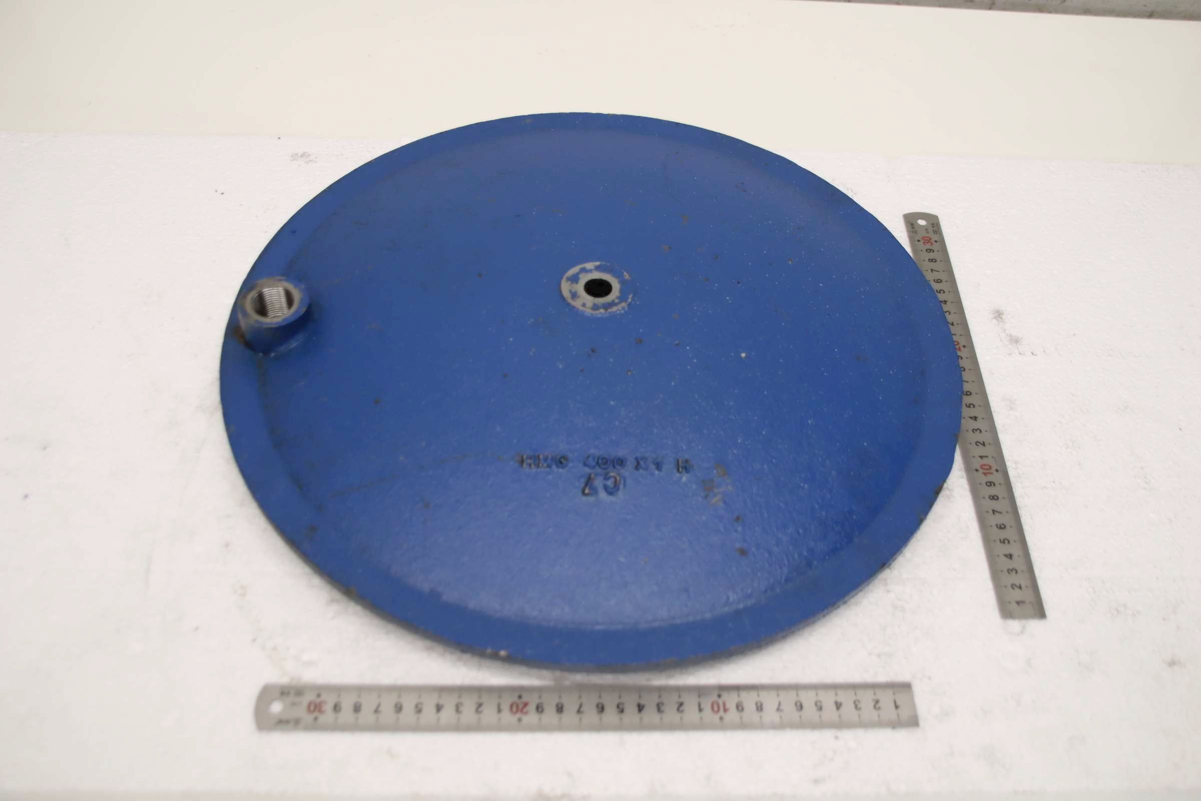 Hydraulic tank cap, tank cap -Hydraulic tank cover: from Atlantic ATS 3006 plate shear -Item No.: HMG 400 x 1 H -Dimensions: Ø 440 x 70 mm -Weight 14.5 kg
