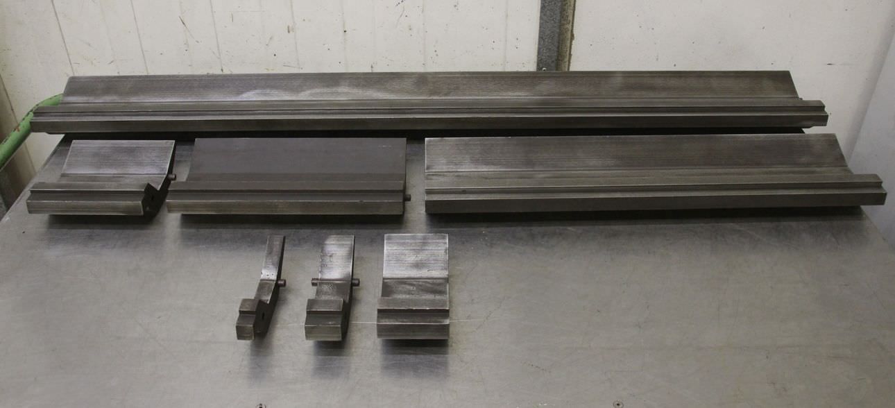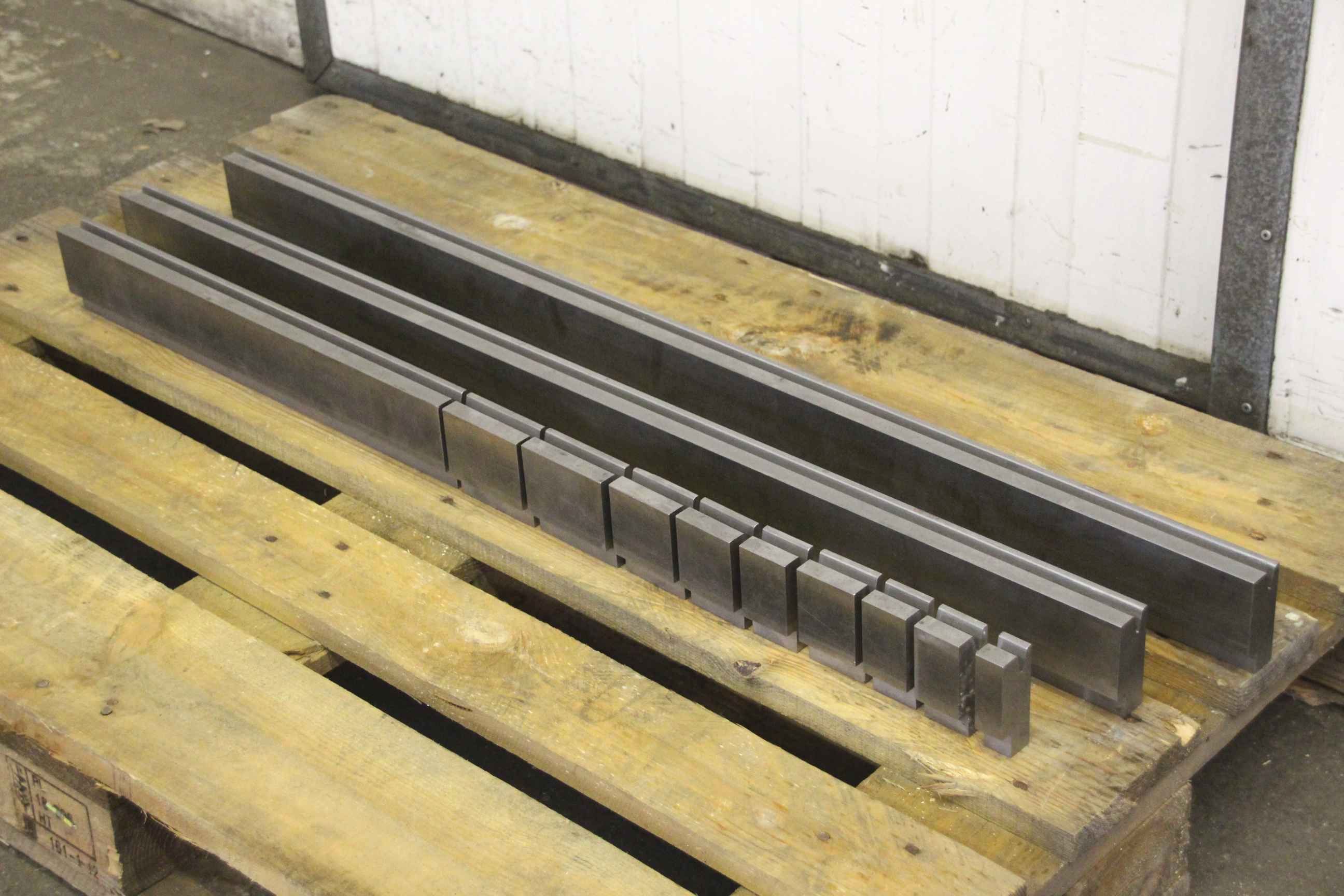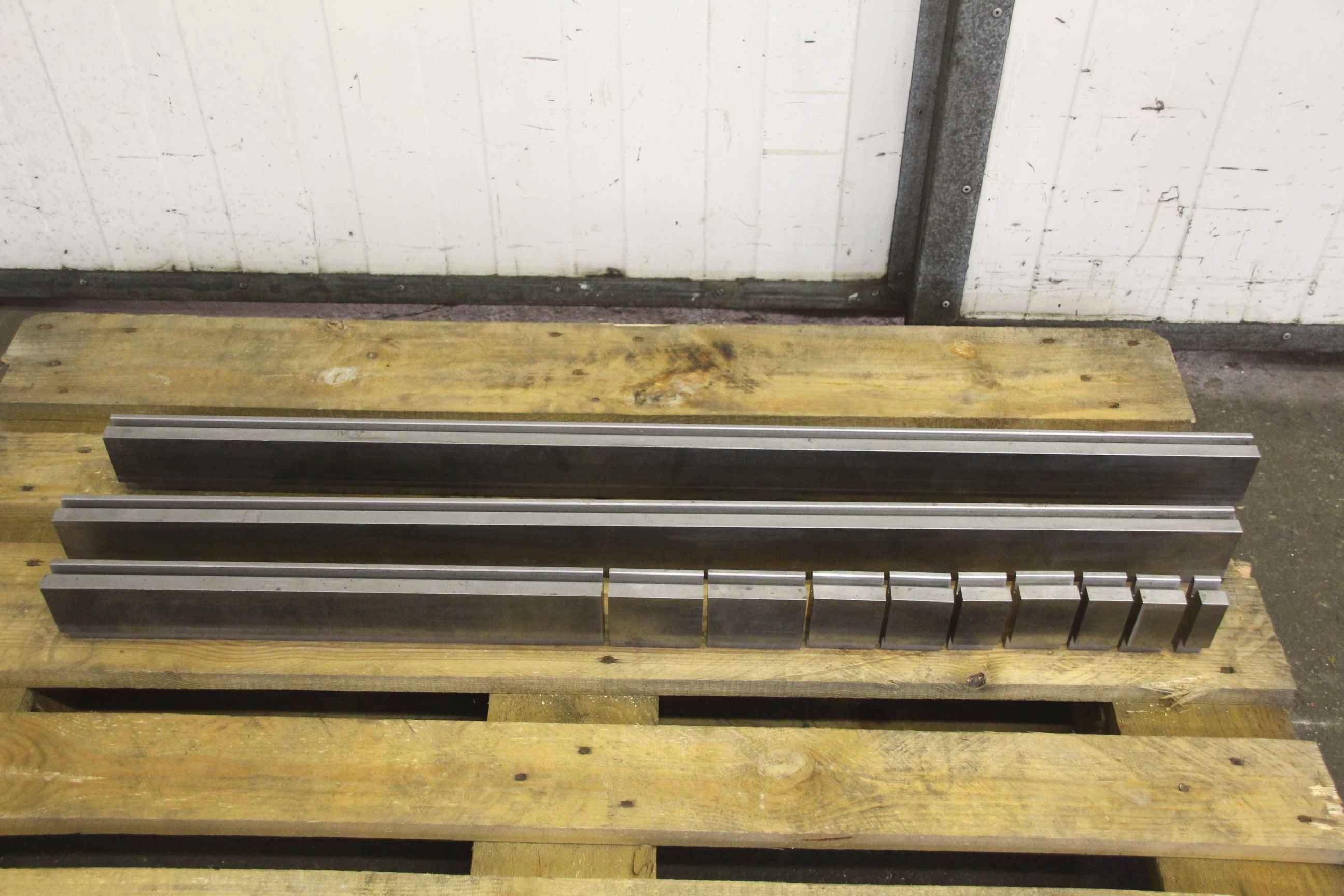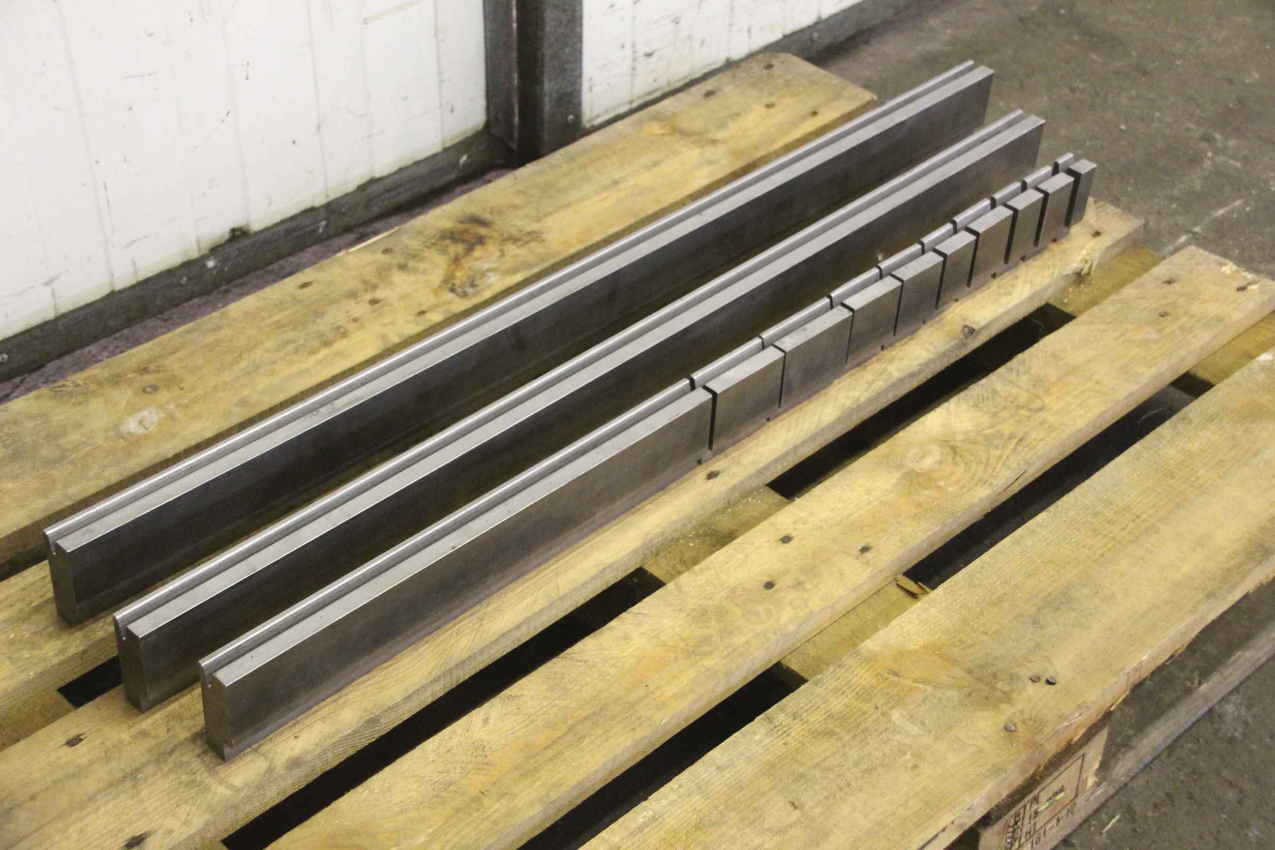 Bending tool, die, lower knife, lower tool, prism tool, reversible prism, 1-part die block for die bending machine-Tool: for press brake, 12 pieces-Prisms: 25 ° x 10 mm-Drawing: in the photos-Lengths: see parts list in the photos-Dimensions total: 30/79/2917 mm-Weight: 47 kg