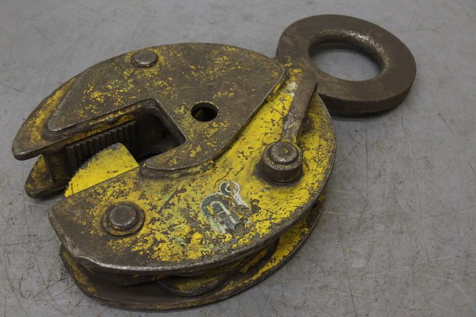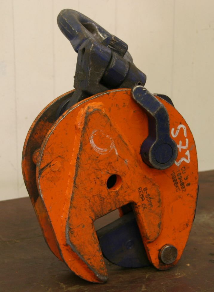 Sheet metal clamp, sheet metal claw, beam clamp, beam claw, sheet metal gripper, material gripper, material gripper -Sheet metal claws -Span: 0 to 55 mm -Load capacity: 9000 kg -Number: 2x terminals available Price: per piece -Weight: 28 kg/piece