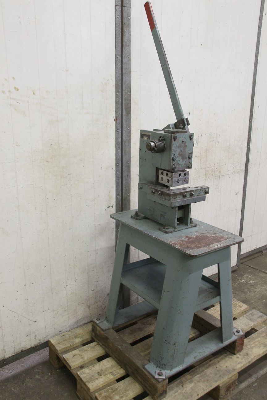 Notching machine, sheet metal notcher, notching shear, corner notching machine, corner shear, corner shear -Max. cutting capacity: approx. 2 mm -Blade length: 102 mm -Dimensions: 620/590/H1790 mm -Weight: 150 kg