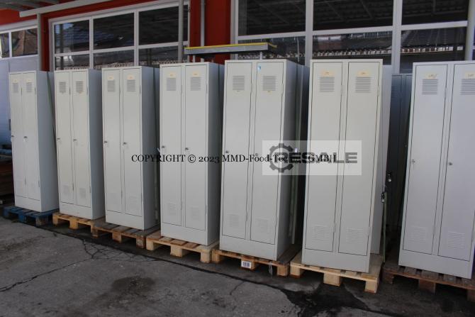 Двойной шкафчик из металла Спецификации: Материал: металл, лакированный Внешние размеры: В185 x Ш60 x Г50 см 2 запираемые двери с подходящим ключом Отделения с верхней полкой для посылок и крючками для одежды с вентиляционными отверстиями на каждой двери сверху и снизу Прочная, сварная конструкция никаких дешевых импортных товаров, Сделано в Германии! Оборудование в наличии, уже в наличии! Шкафчики хранятся сухими, в здании! Цена указана за штуку. Состояние смотр ...