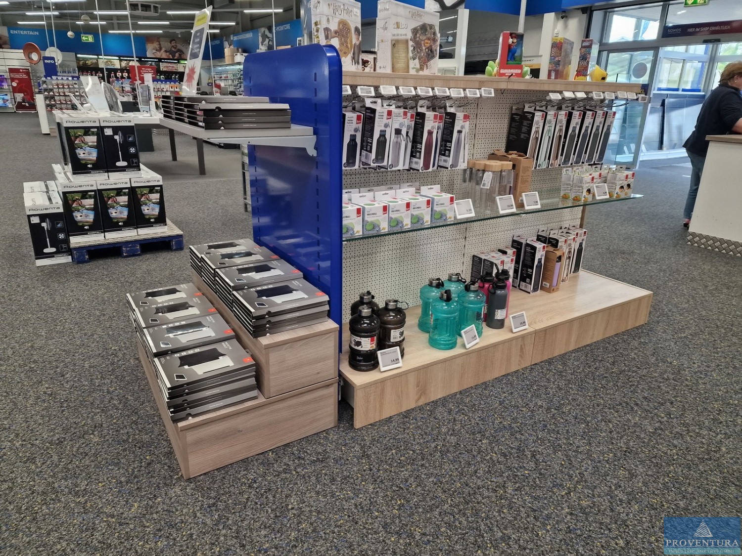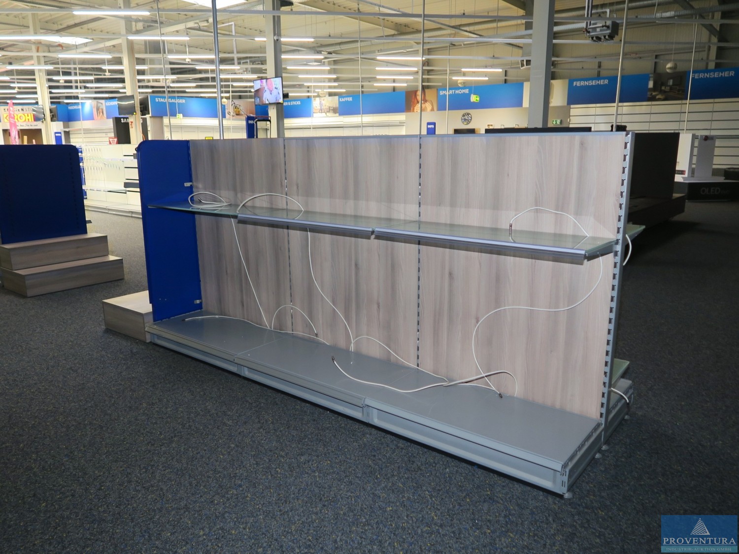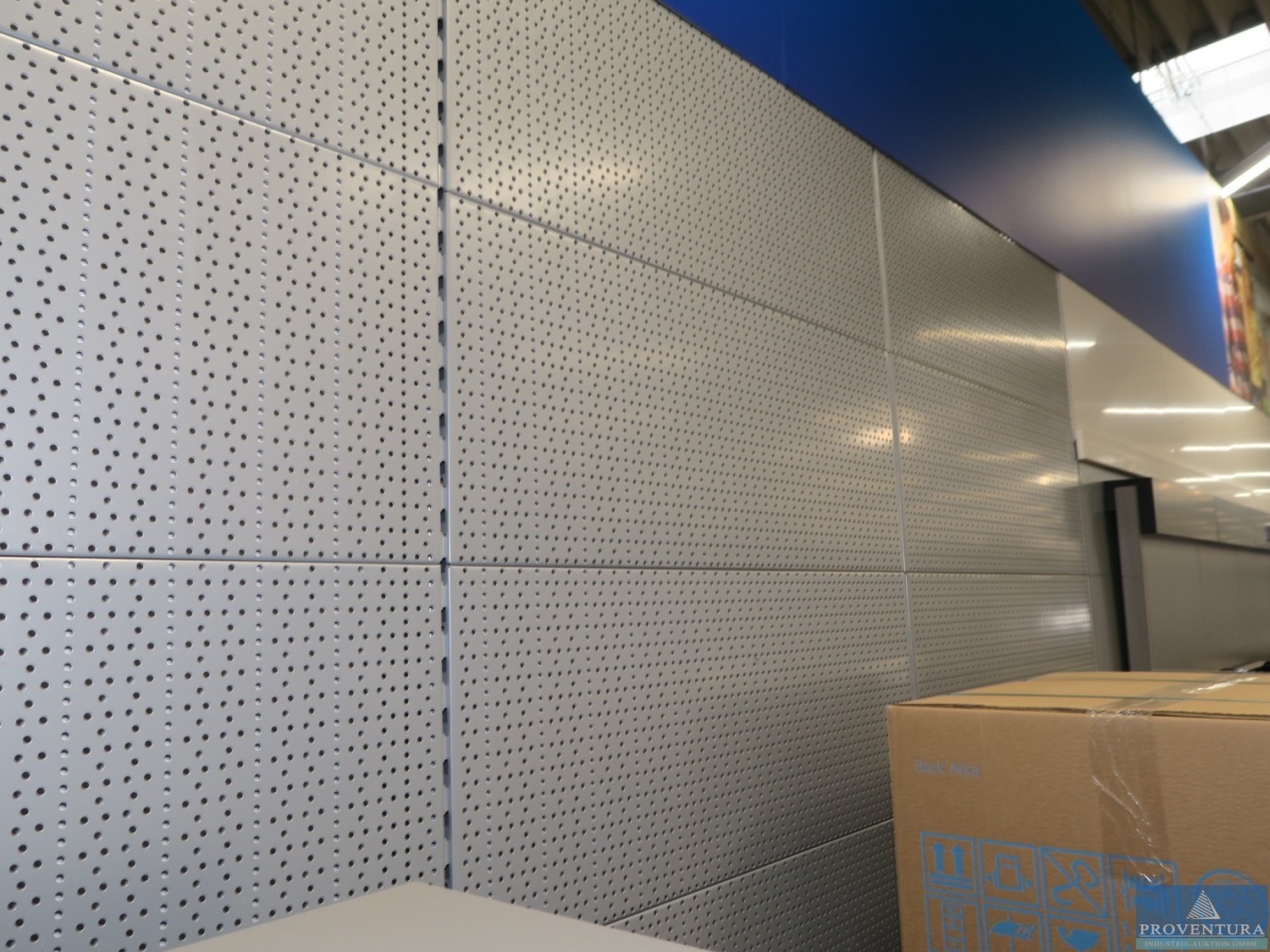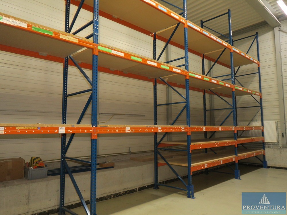Высокие поддонные стойки стального синего цвета примерно 18 стоек, каждая примерно 600x120 см, вертикальные стойки частично соединёны, примерно 84 фермы каждая, примерно 270 см каждая, примерно 12 ферм каждая, примерно 180 млрд см, деревянные вставки, ВНИМАНИЕ: Удаление возможна только через окно — рекомендуется инспекция для снятия, на территории нет воздушных и воздушных платформ! Расположение 1-й эта