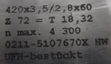 Saw blade, wood saw blade, circular saw blade -Ø 420x3.5/2.8x60 -Z72 = T 18.32 -n max. 4300 -0211-5107670x HW -UFN- equipped -Price: per piece -Number: 3x available -Weight: 3.2 kg/piece