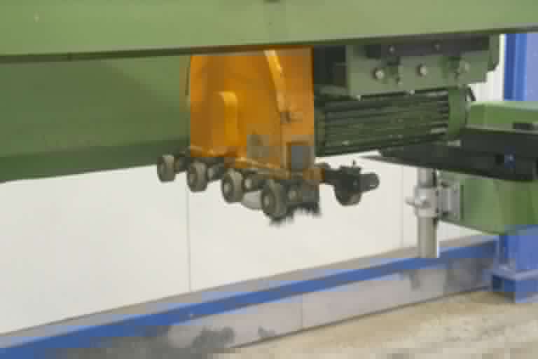 Panel saw, panel dividing saw, horizontal panel circular saw, dividing saw -Motor power: 6 kW -Speed: 2880 rpm -Diameter max. Saw blade: 340 mm -Cutting height: 100 mm -Saw motor laterally adjustable on dovetail guide: approx. 1000 mm -Saw motor pneumatically adjustable in height -with cleaning brush: 1000 mm wide -Max. Intermediate width: 1700 mm -Dimensions: 2200/1500/H2100 mm -Weight: 1220 kg