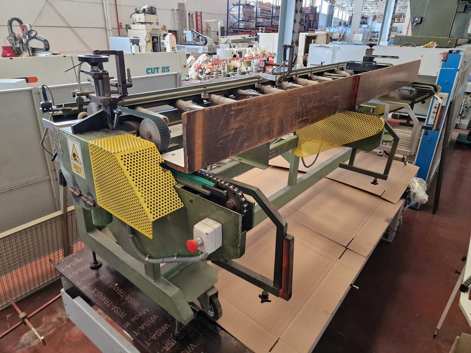 Технические данные: Сделать: Moehringer Длина: 1900 мм Ширина: 60 мм - Хорошее состояние - Используется для транспортировки паркетных фризов - Чаевые стул и регулируемый держатель стебля Фотографии и дополнительная информация по запросу
