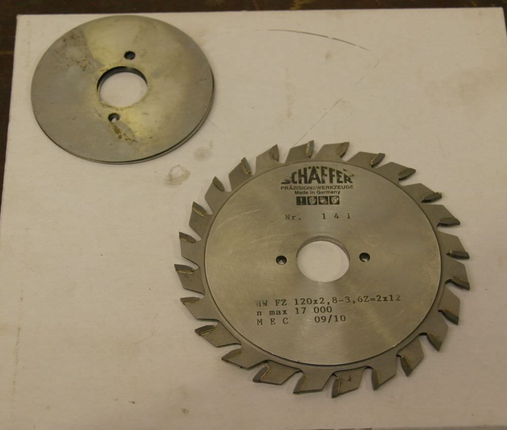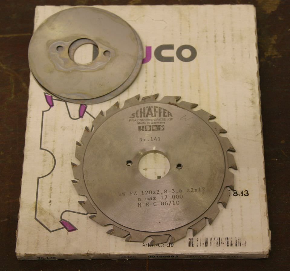 Scoring circular saw blade, scoring circular saw blades -two-part, adjustable: 120 x 2.8-3.6 mm -for: Scoring sheet materials, laminates, ... -carbide-tipped -Weight: 0.3 kg