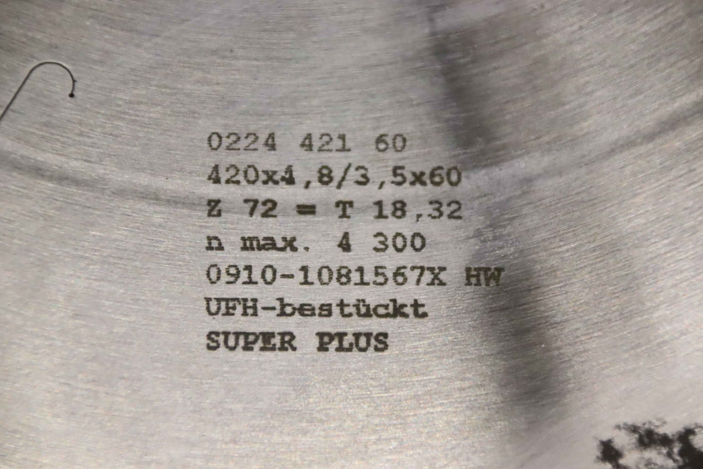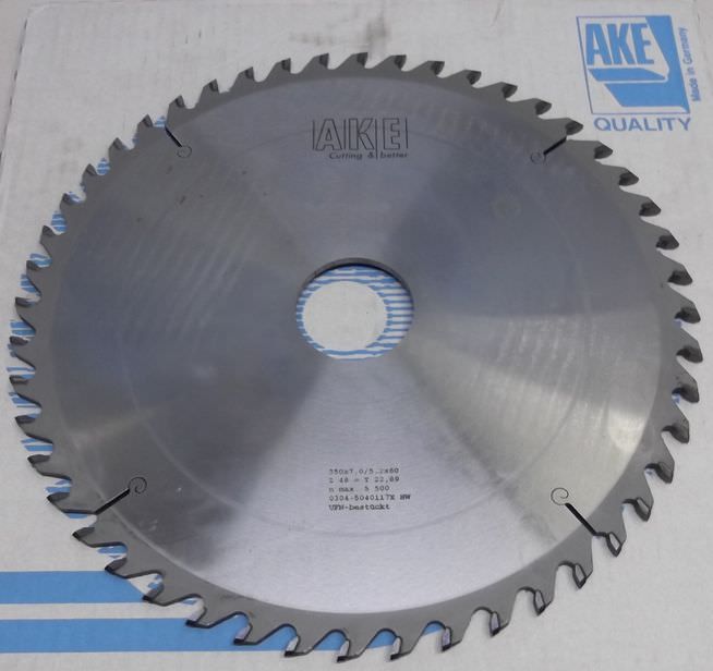 saw blade, wood saw blade, circular saw blade-Manufacturer: AKE, saw blade 902-38 SUPER PLUS-Type: Ø 420x4.8/3.5x60 Z 72 = T 18.32-Order No.: 0224 421 60--Art. No.: 0910-10815670X HW-Speed: n max. 4300 rpm-Number: 7x saw blade available-Price: per piece-Dimensions box: 490/490/H10 mm-Weight: 3.9 kg/piece