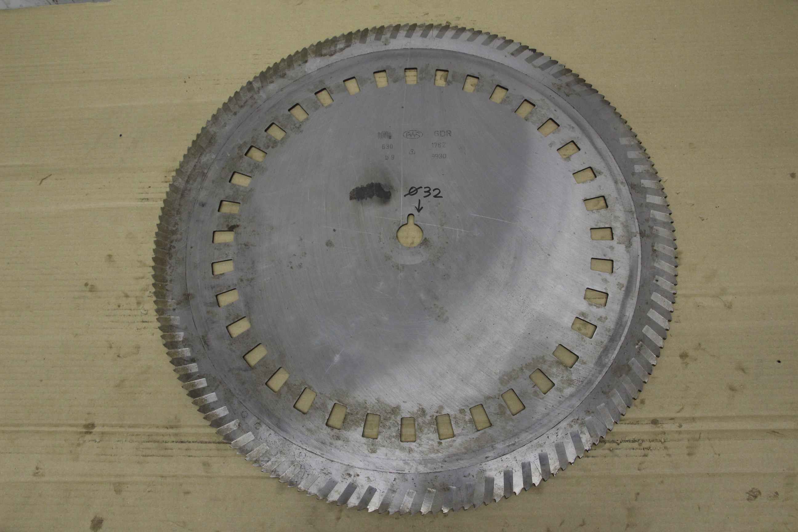 Saw blade, wood saw blade, circular saw blade, metal circular saw blade, hard metal saw blade-Manufacturer: WMW PWS, saw blade Ø 630 x 6 mm-Inside: Ø 32 mm-Number of teeth: 176 teeth-Number: 20x saw blades available-Price: per piece-Weight: 10 kg/piece