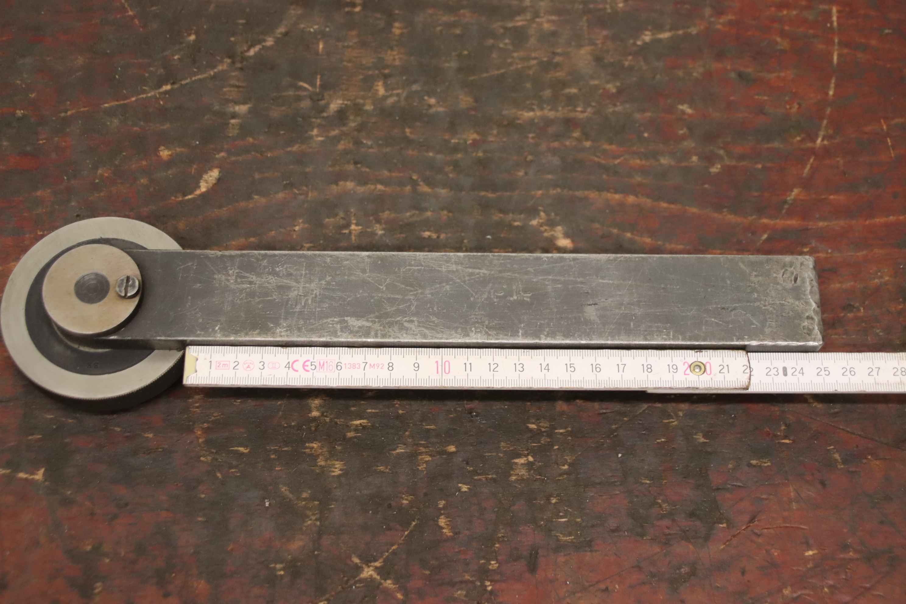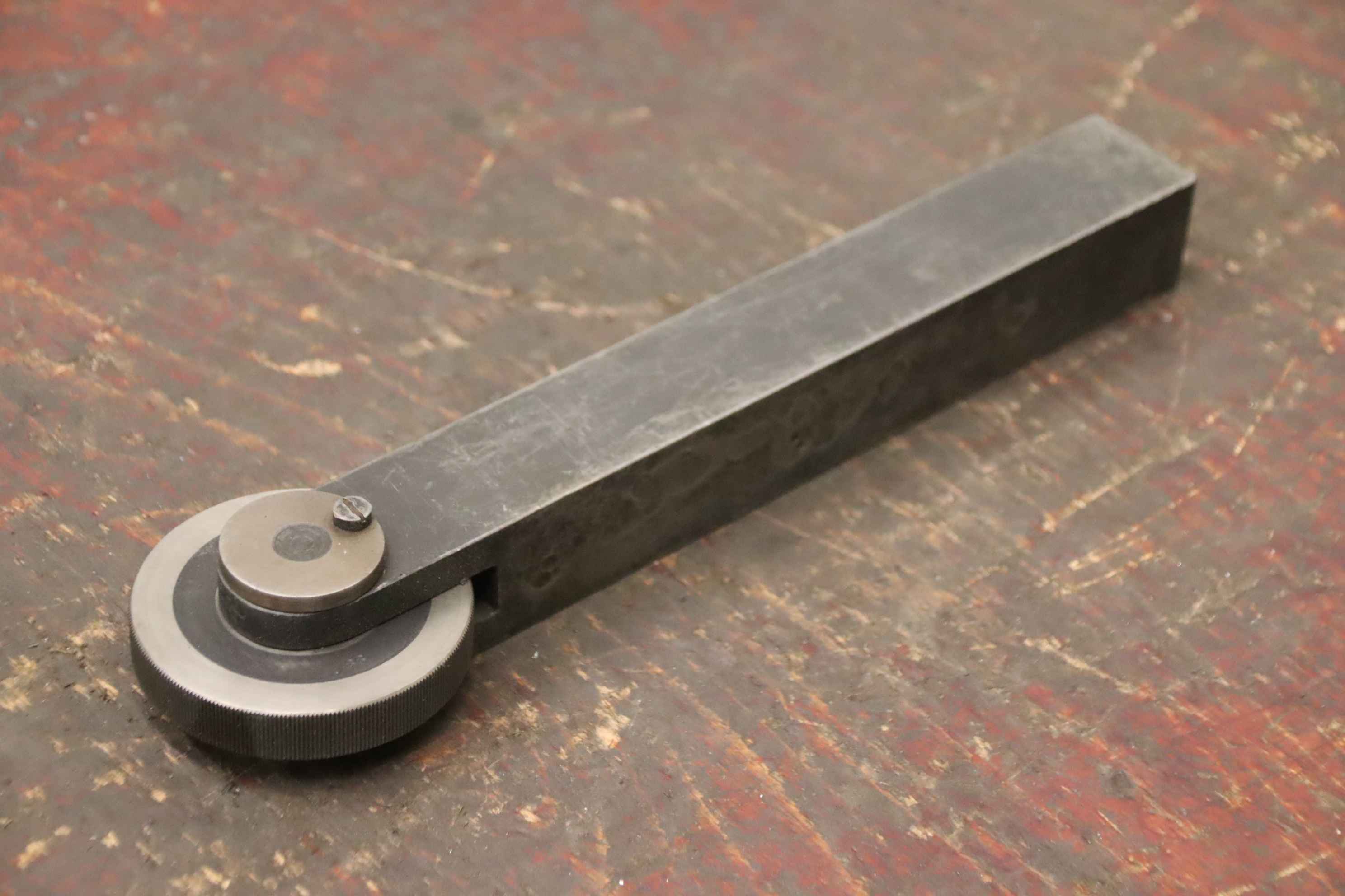 Lathe spinning tool, roller block, support roller-Support roller: solid design-Roll: Ø 80 x 15 mm-Square: 38 x 37 mm, clamping length 250 mm-Dimensions: 325/80/H43 mm-Weight: 3.8 kg