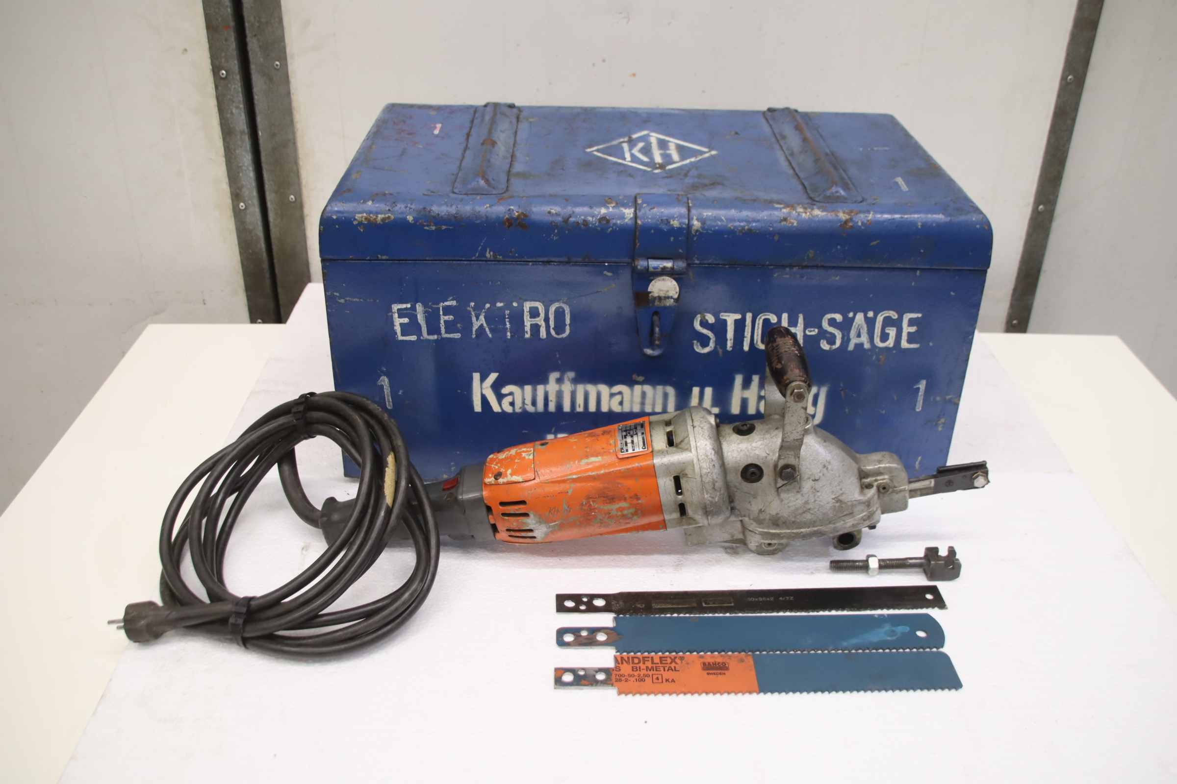 Pipe saw, pipe jigsaw, support jigsaw, reciprocating saw, handsaw, jigsaw -Manufacturer: Fein, pipe reciprocating saw type AST 663 with accessories -Power: 750 W -Stroke rate: 300 /min -Accessories: Transport case, saw blades (see photos) -Box dimensions: 680/400/H350 mm -Total weight: 27 kg
