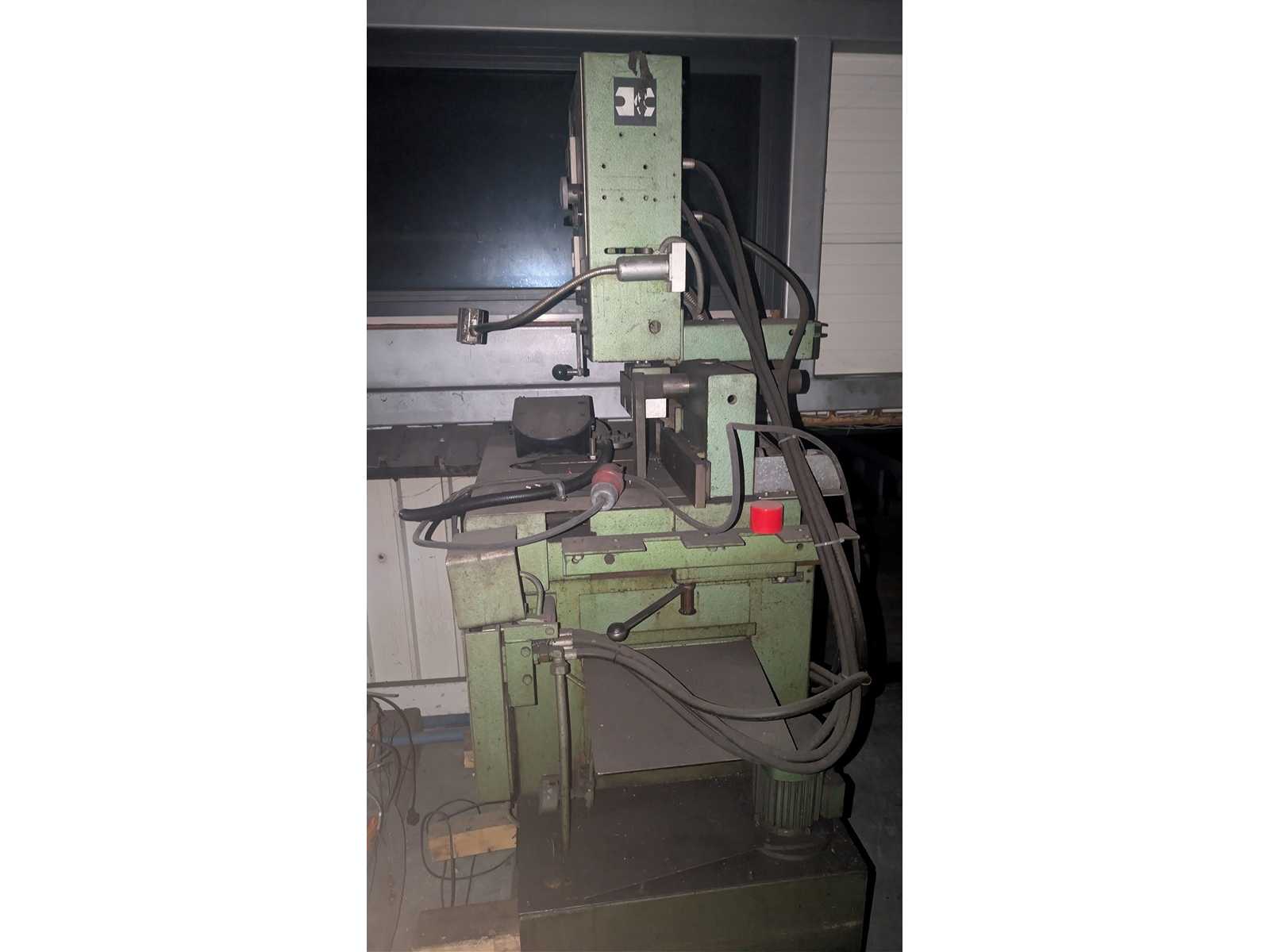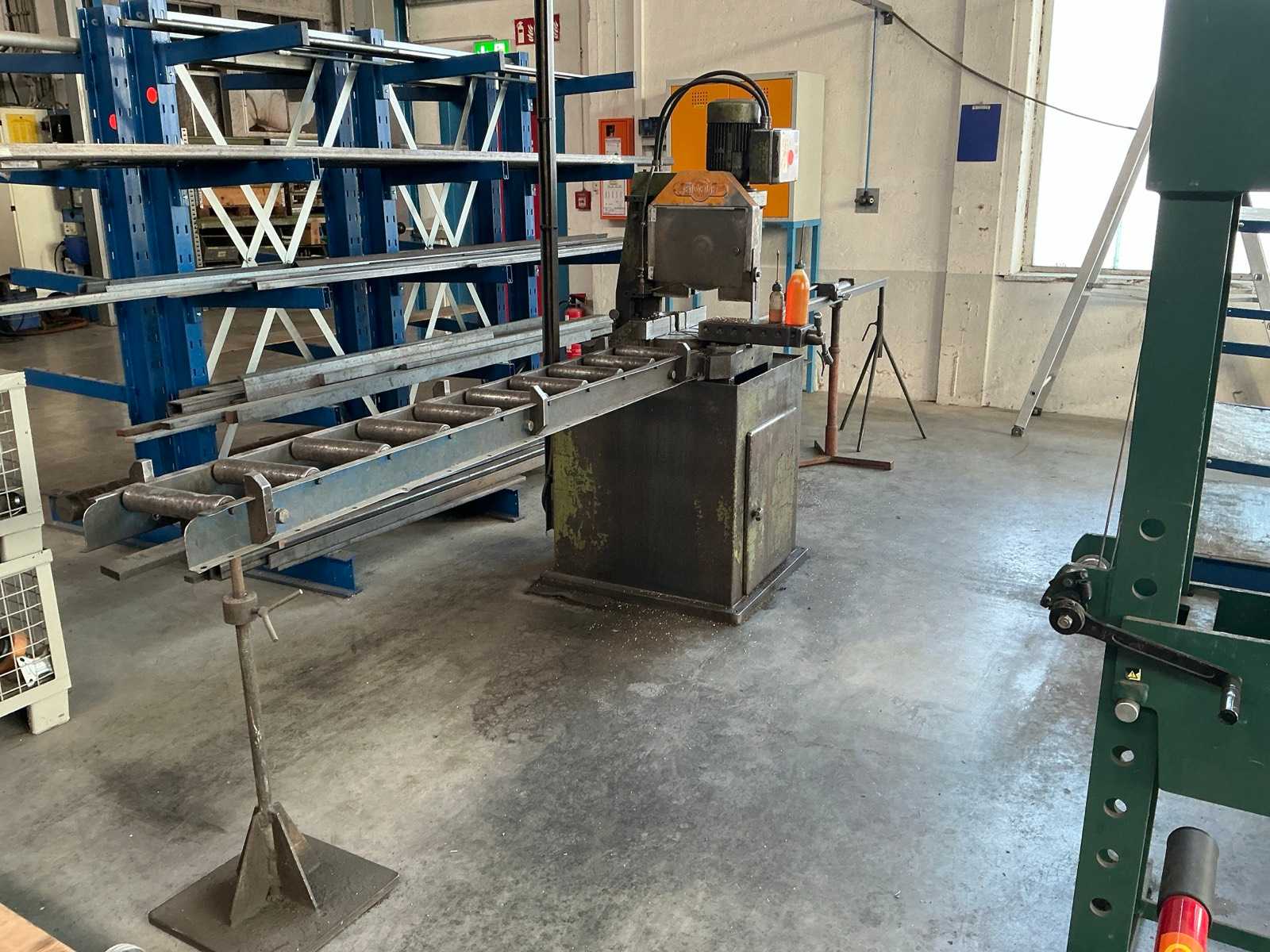 CEG M. 100-2/FPC – Band Saw General data: Manufacturer: CEG S.r.l., San Mauro Pascoli, Italy Model: M. 100-2/FPC Machine type: Band saw Weight: approx. 500 kg Dimensions (L x W x H): approx. 1550 x 850 x 2100 mm Technical details: Motor type: Three-phase asynchronous (MOT. 3~) Power: 4 kW (approx. 5.5 HP) Rotation speed: 2913 rpm (2-pole motor) Voltage: 380 V (star connection) Current: 8.1 A Description: Industrial band saw manufactured by CEG, designed for high-speed cutting applications. The machine is suitable for processing metal or wood materials and offers reliable performance thanks to its robust construction and high-speed motor. Auction-ID: A7-45351-9